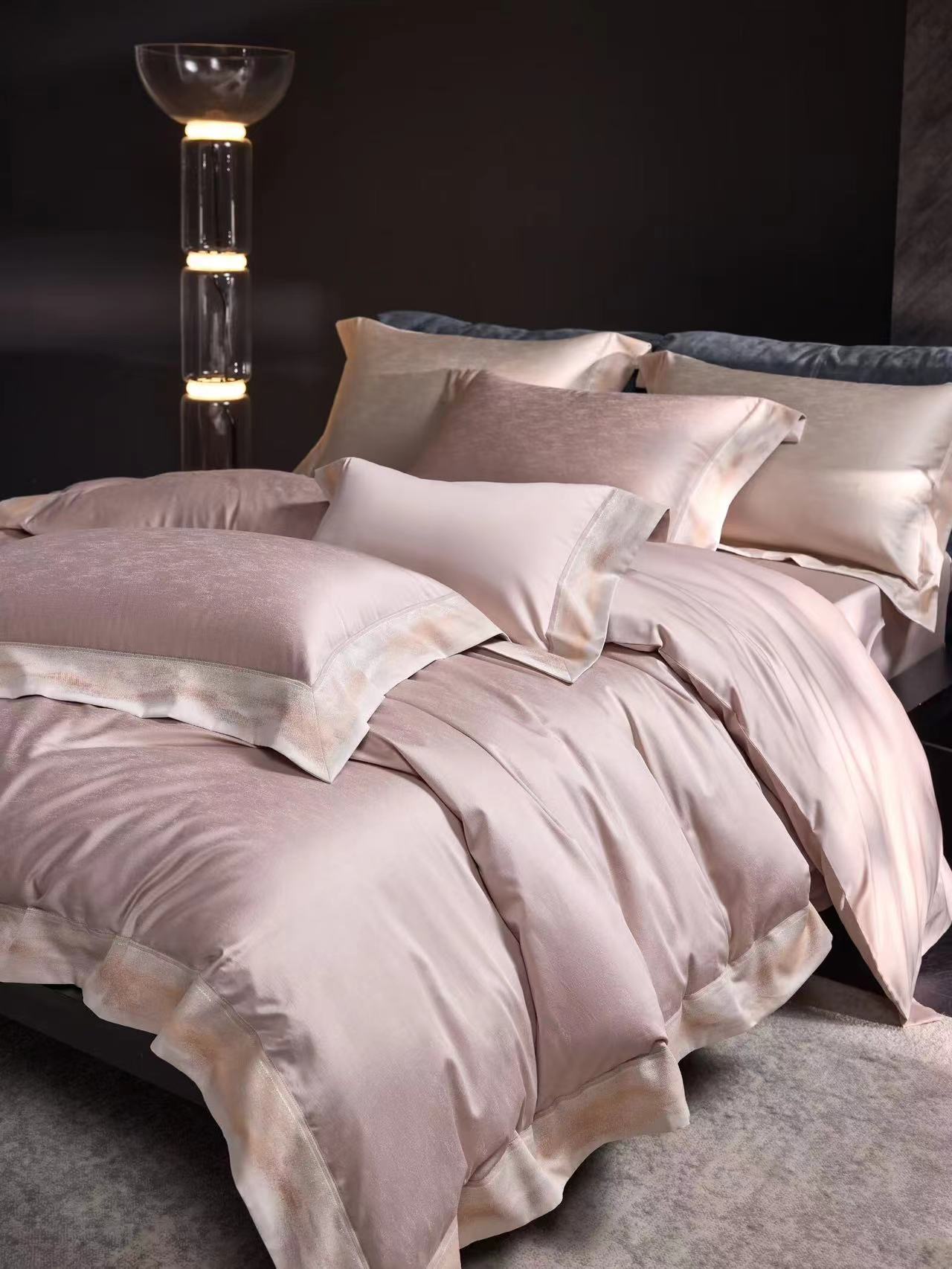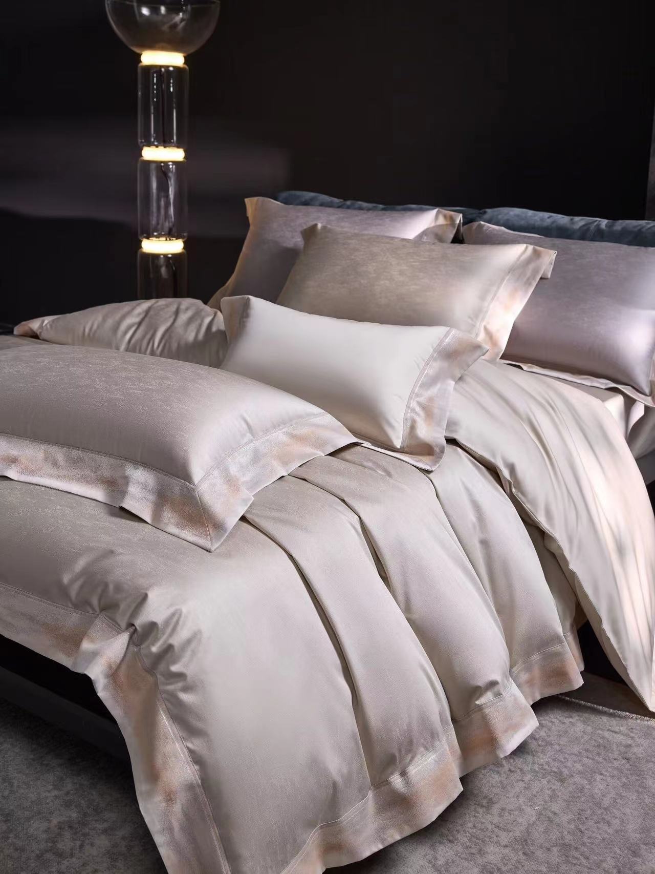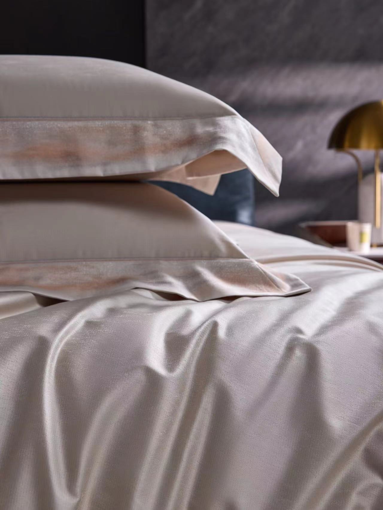 优选顶级精妙的色织提花工艺!长绒棉与古典的金银丝相结合!面料细腻柔软,还原棉种的本身特性,肉眼可见的细闪及光泽感!高雅与轻奢的融合,回归自然的美感,演绎复古的奢华!