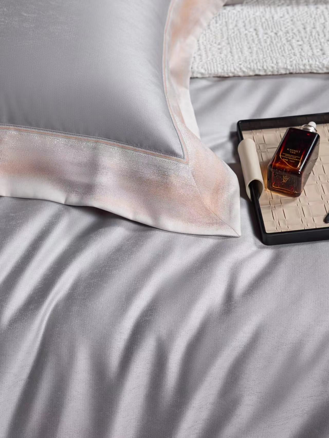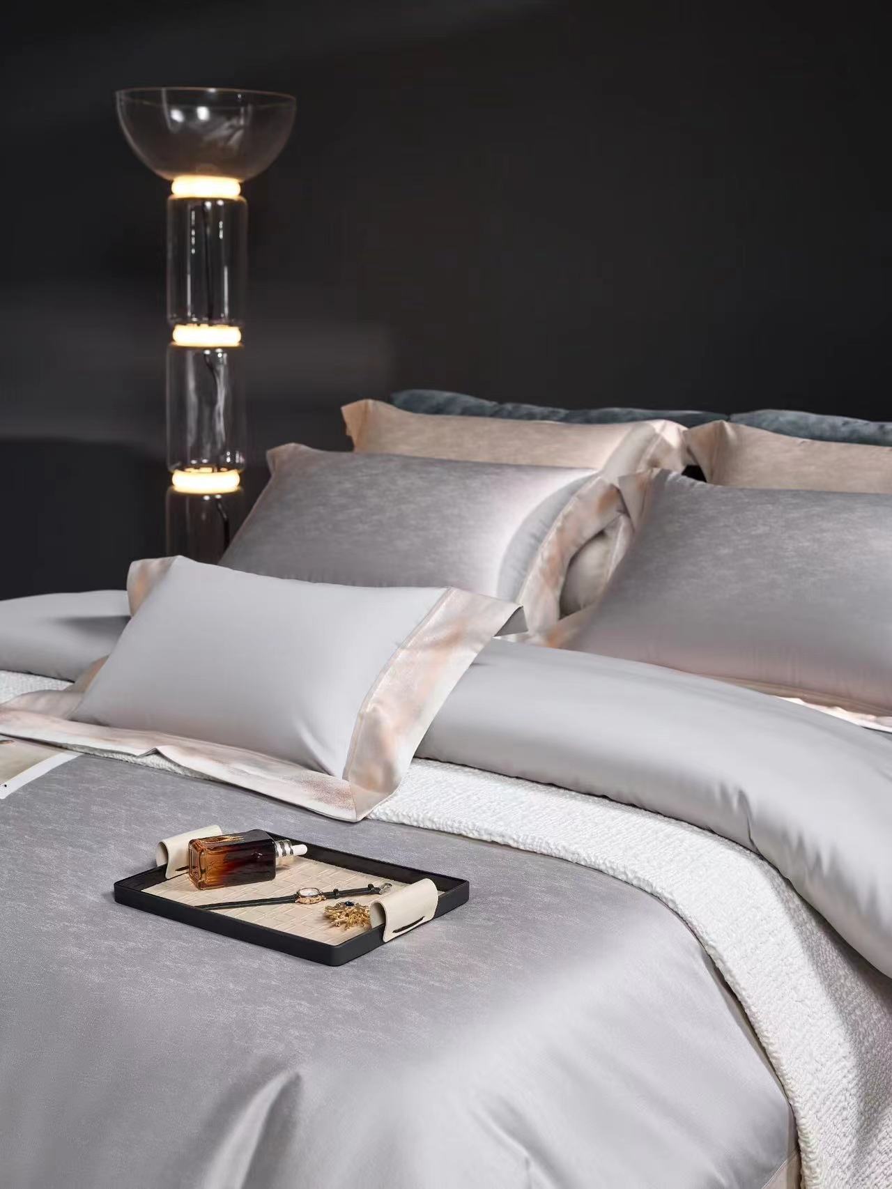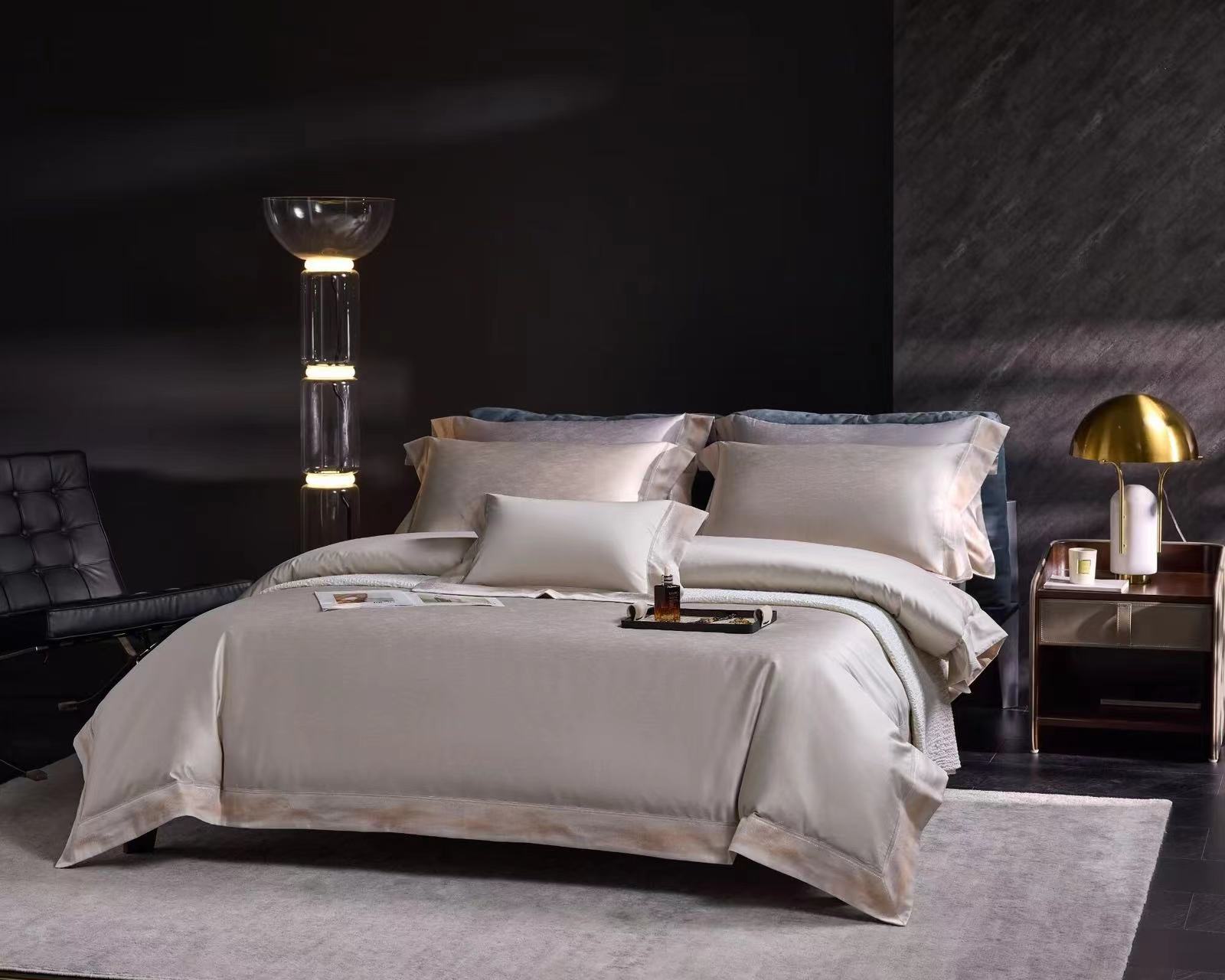 优选顶级精妙的色织提花工艺!长绒棉与古典的金银丝相结合!面料细腻柔软,还原棉种的本身特性,肉眼可见的细闪及光泽感!高雅与轻奢的融合,回归自然的美感,演绎复古的奢华!