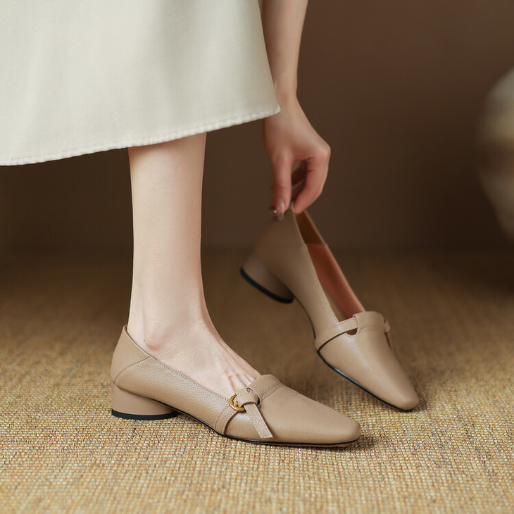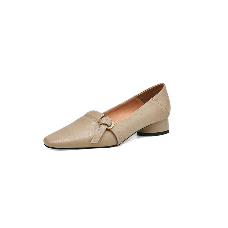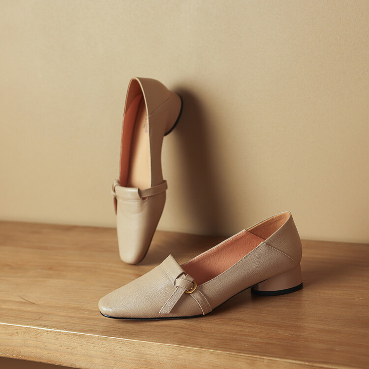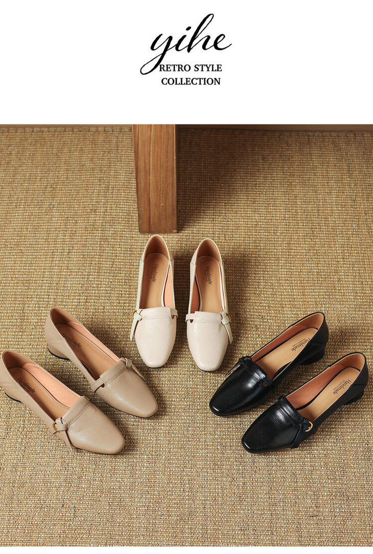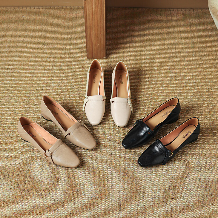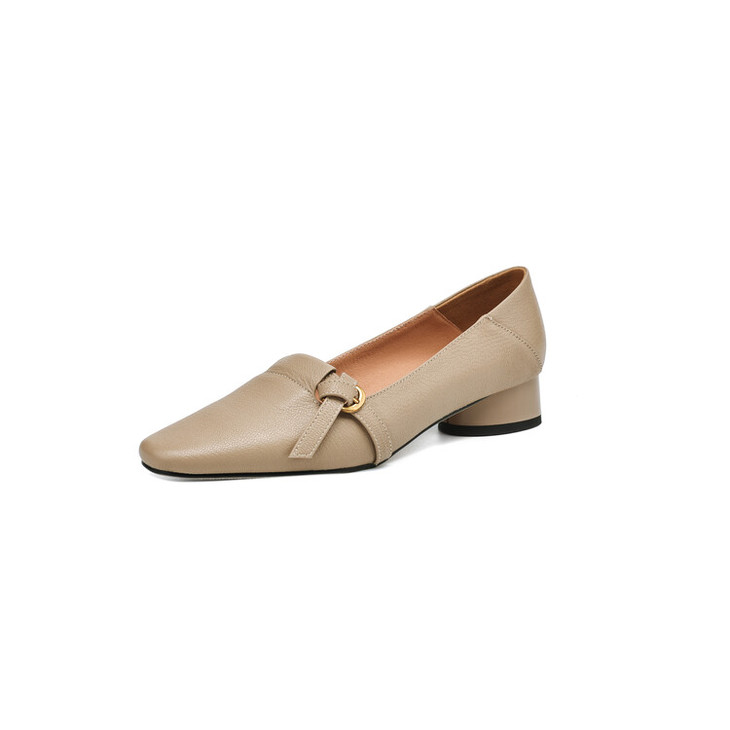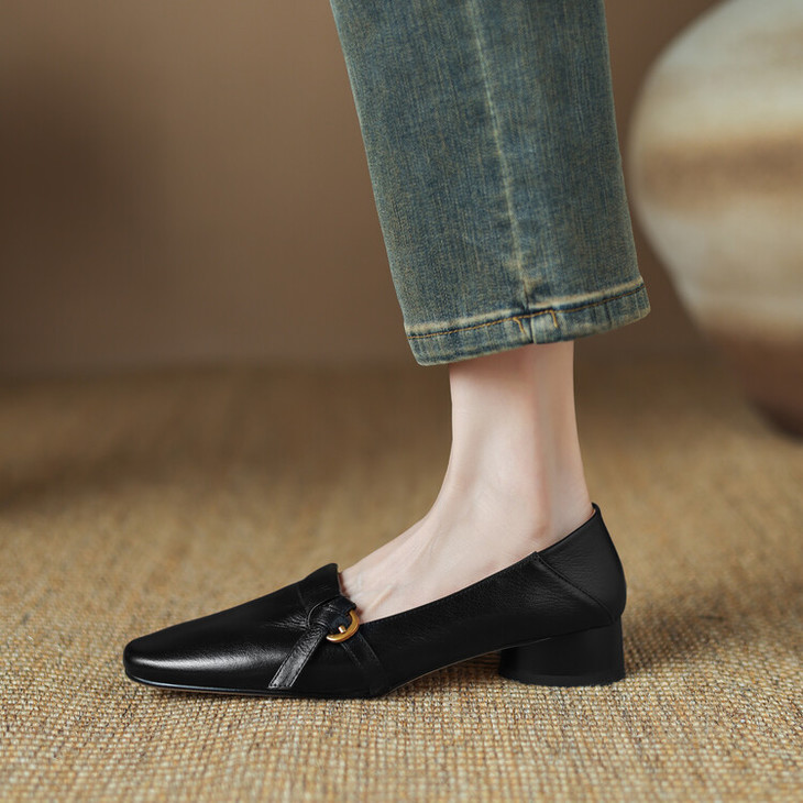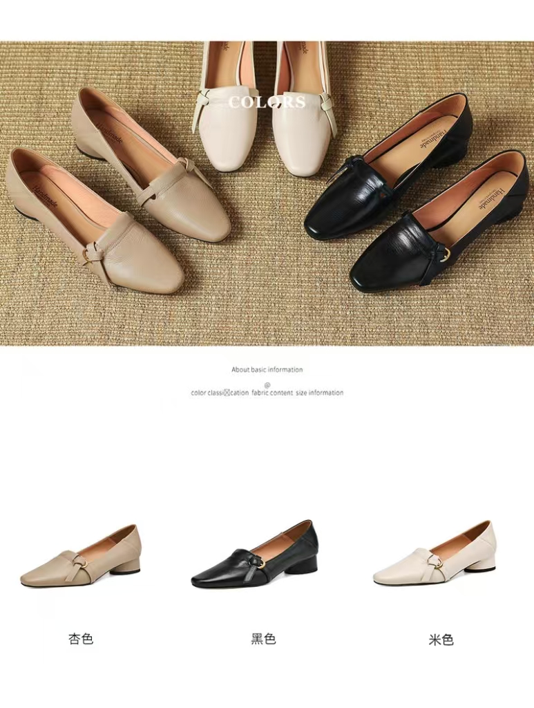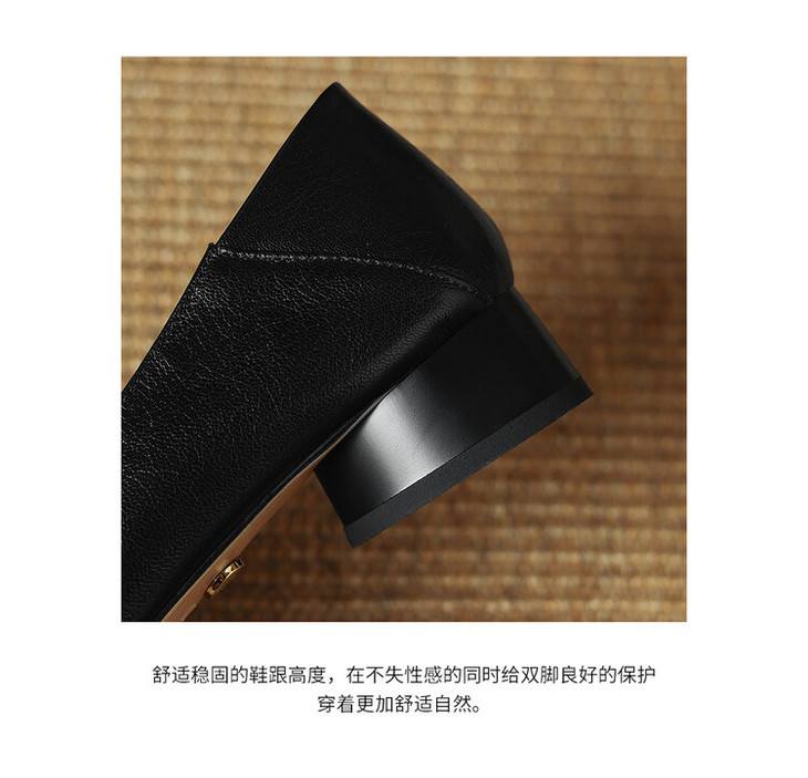 【预售5天】羊皮粗跟单鞋女秋季新款简约方头浅口低跟女鞋LD&6902