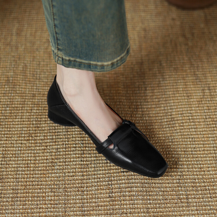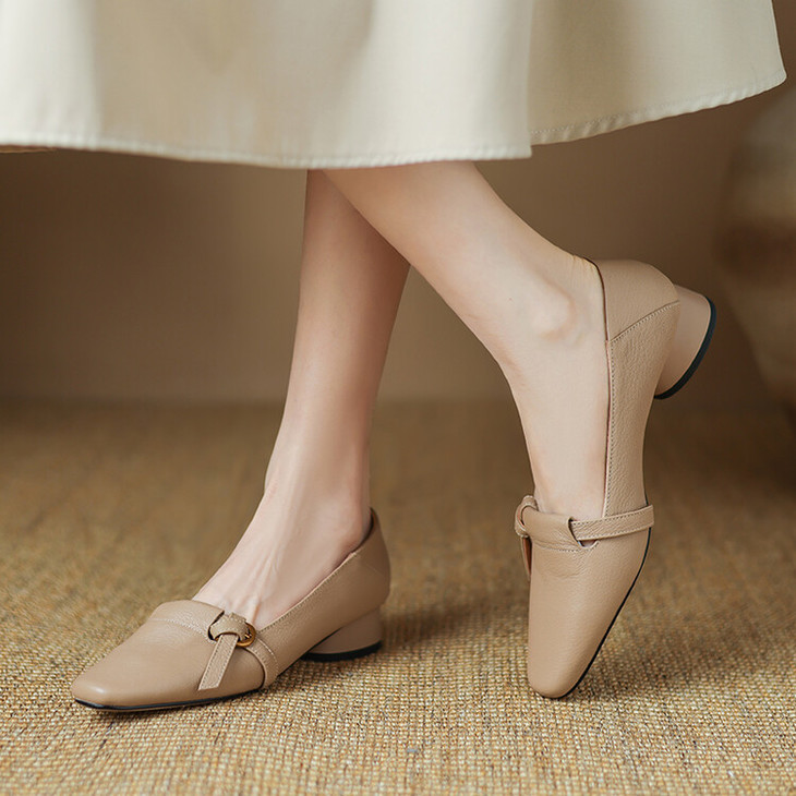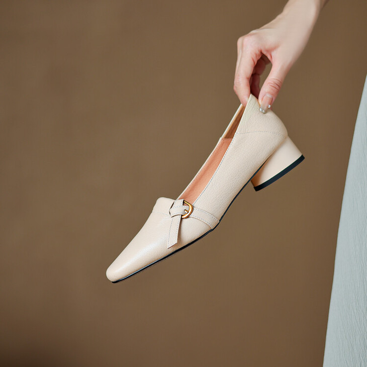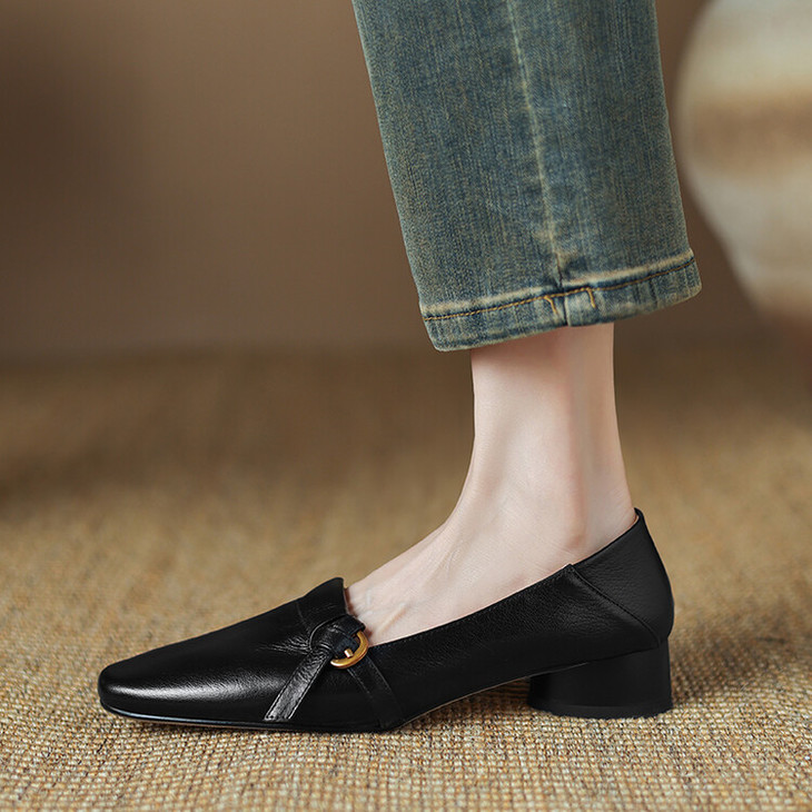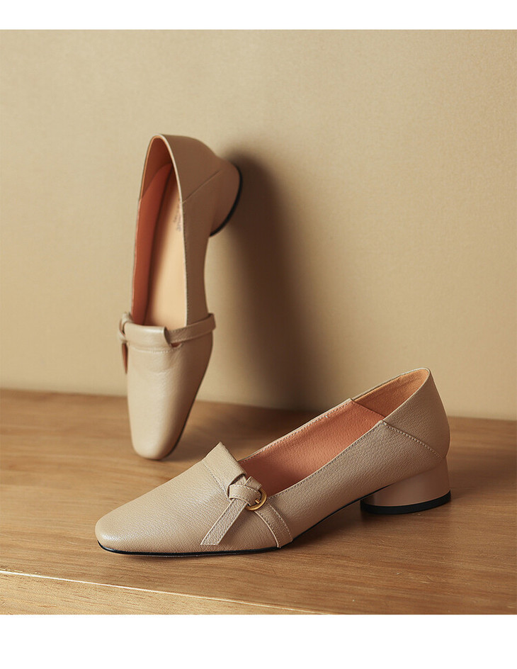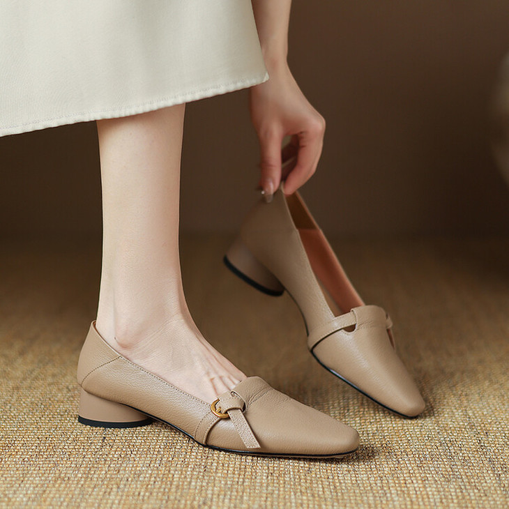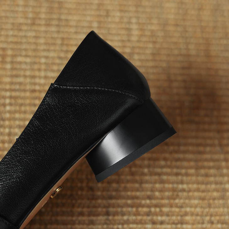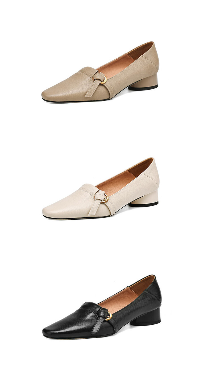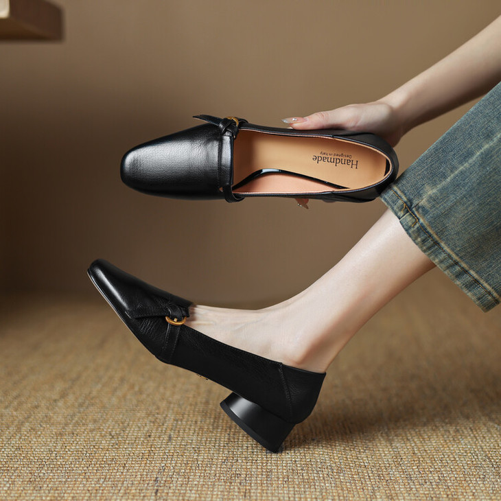 【预售5天】羊皮粗跟单鞋女秋季新款简约方头浅口低跟女鞋LD&6902