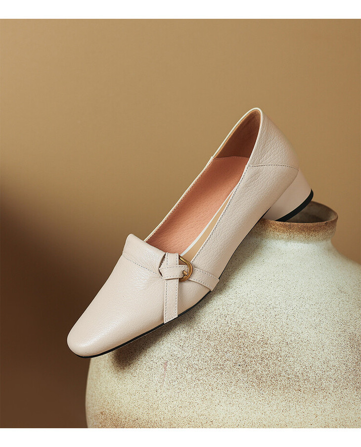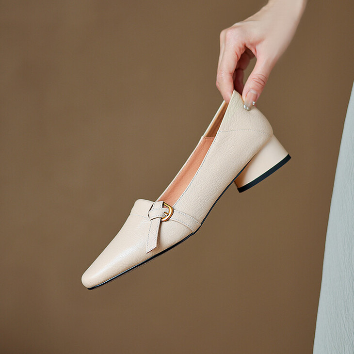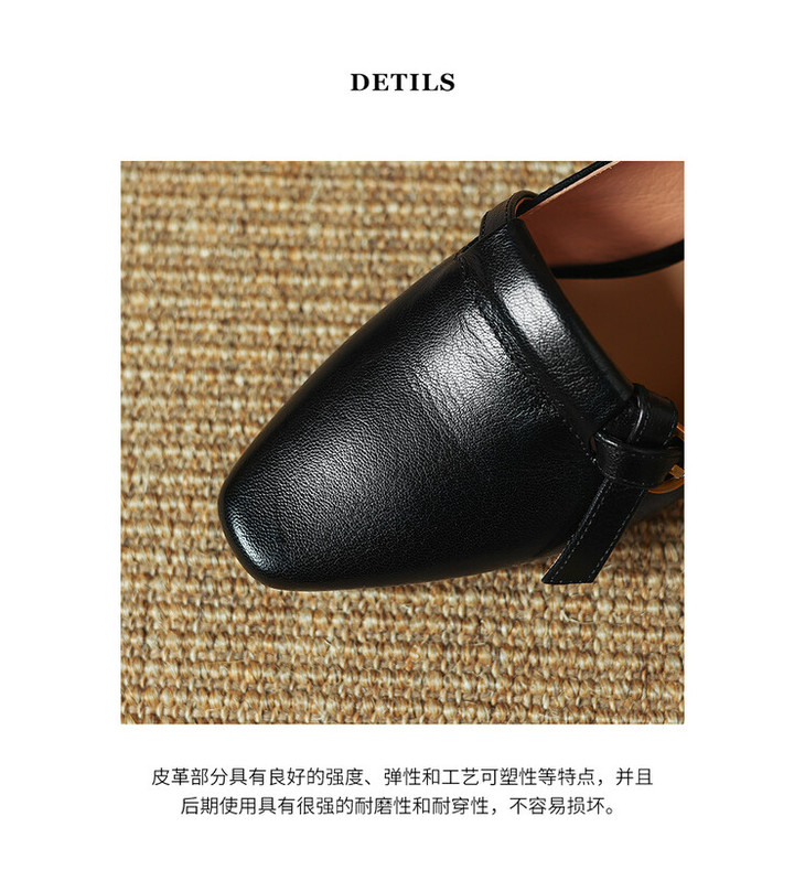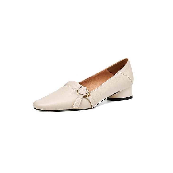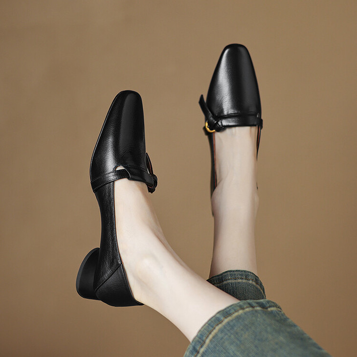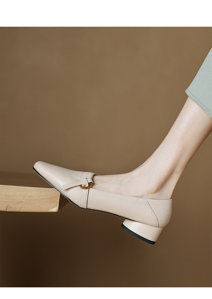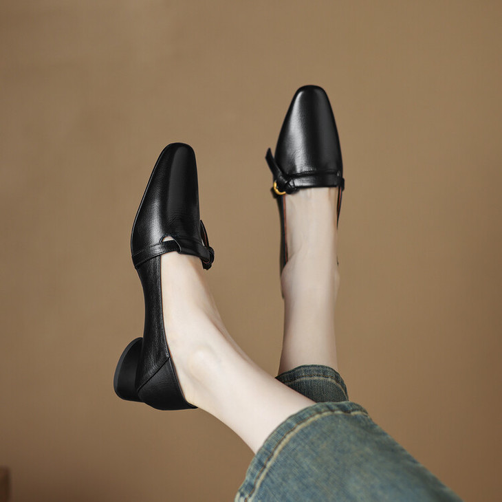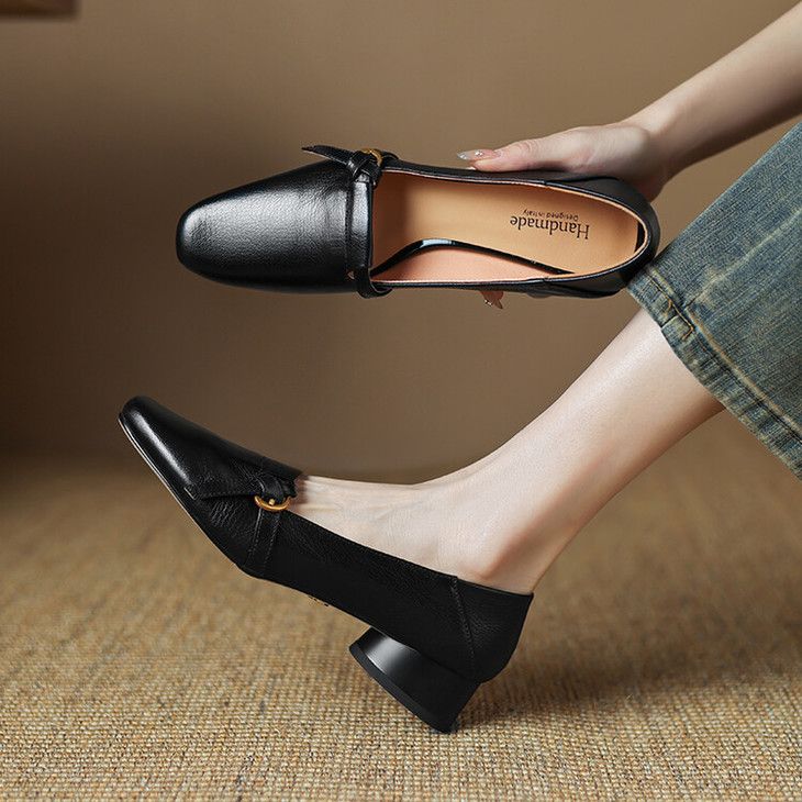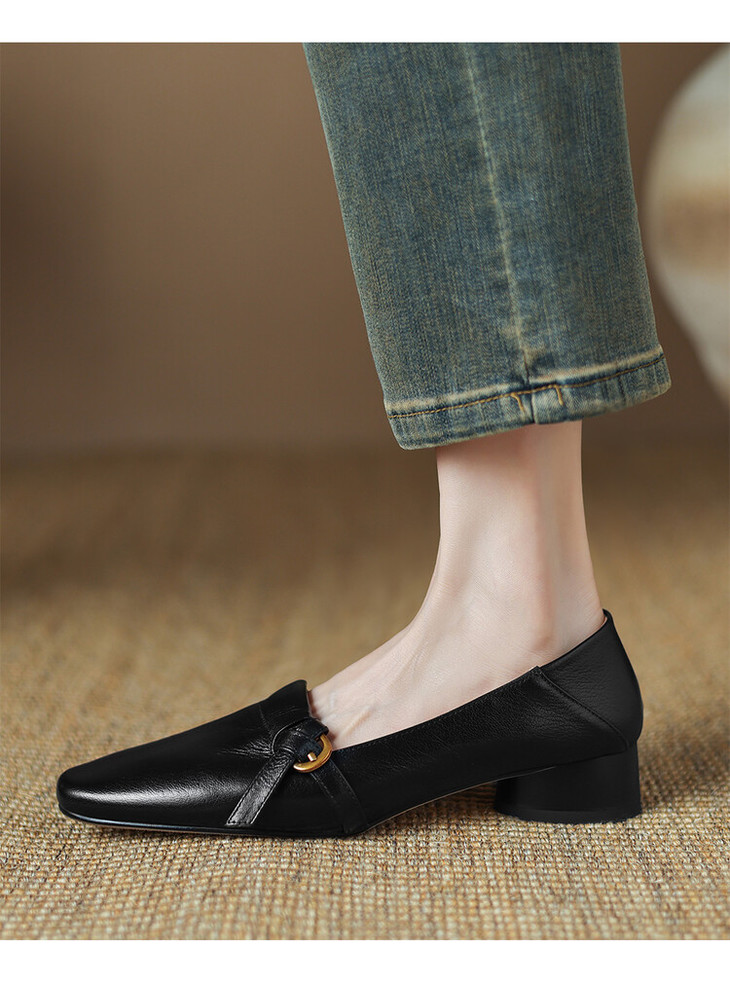 【预售5天】羊皮粗跟单鞋女秋季新款简约方头浅口低跟女鞋LD&6902