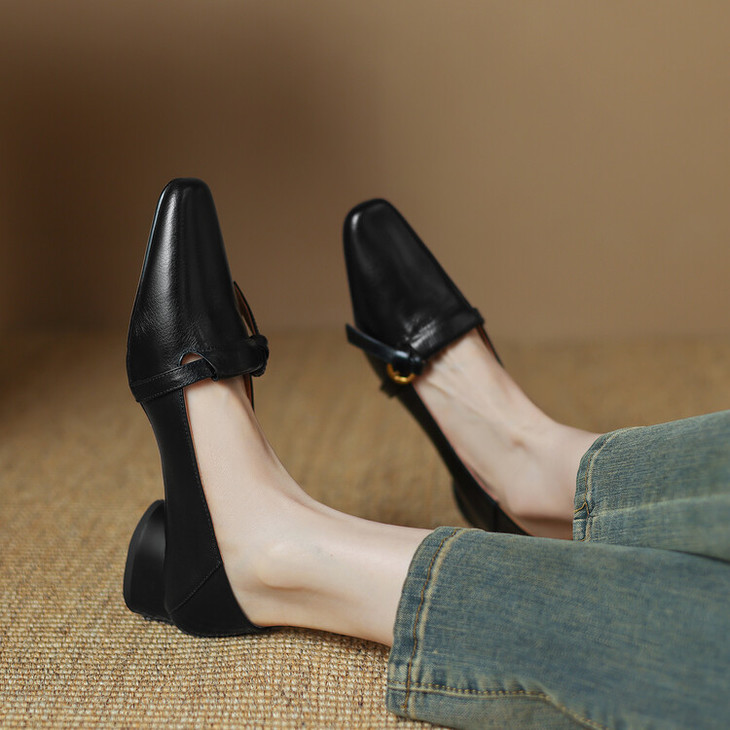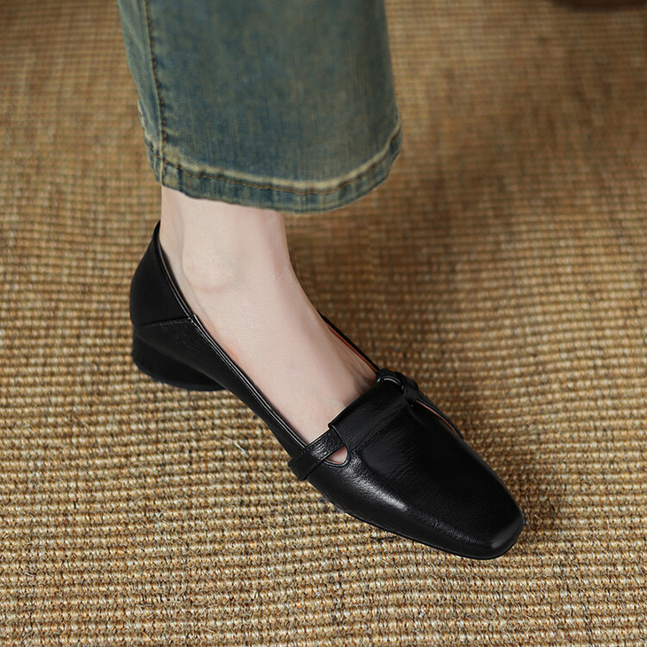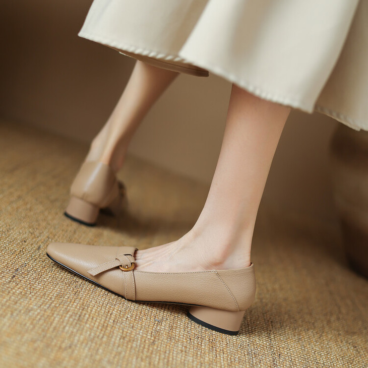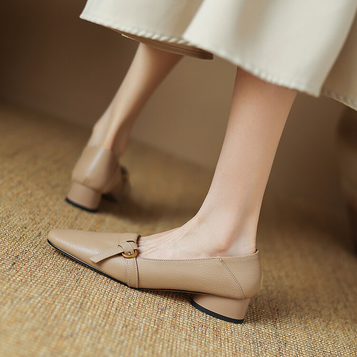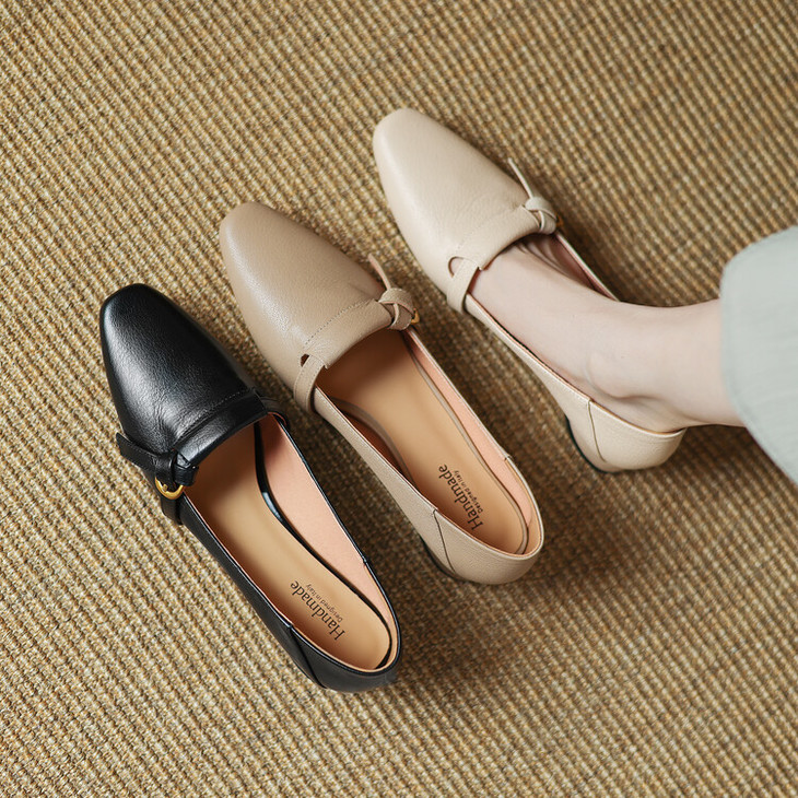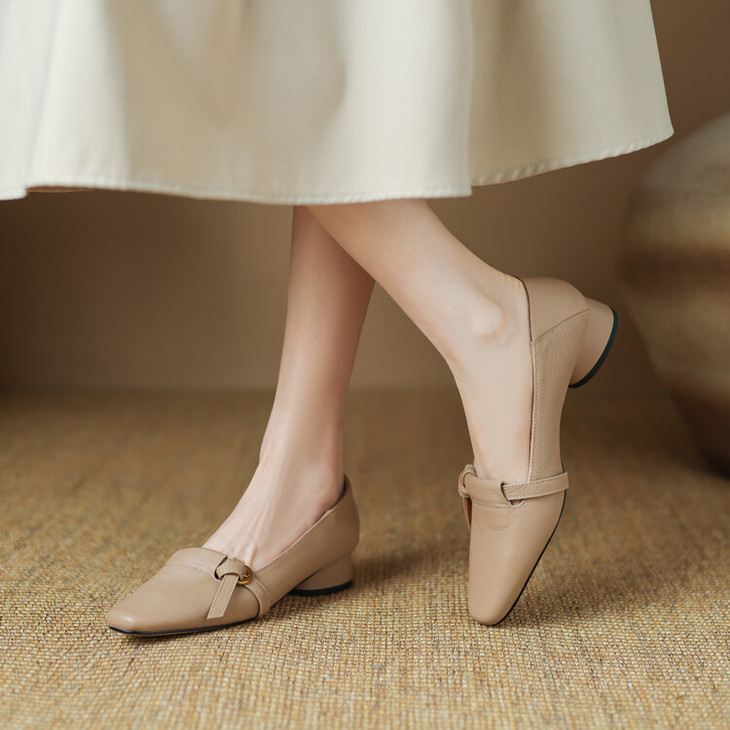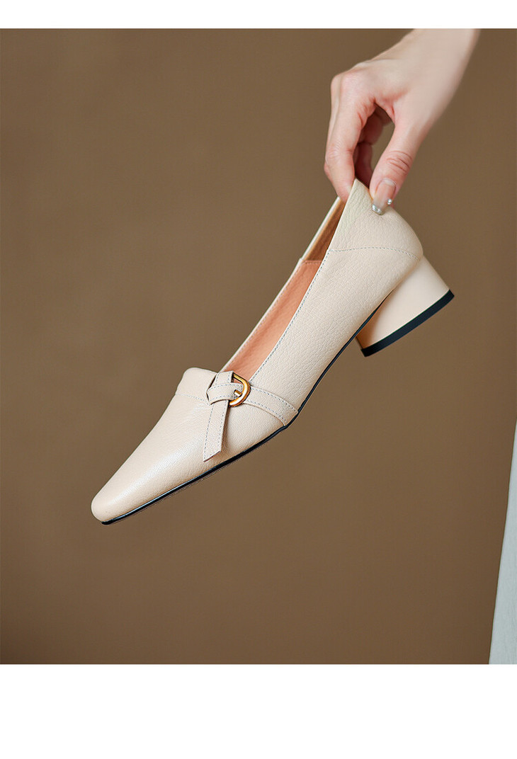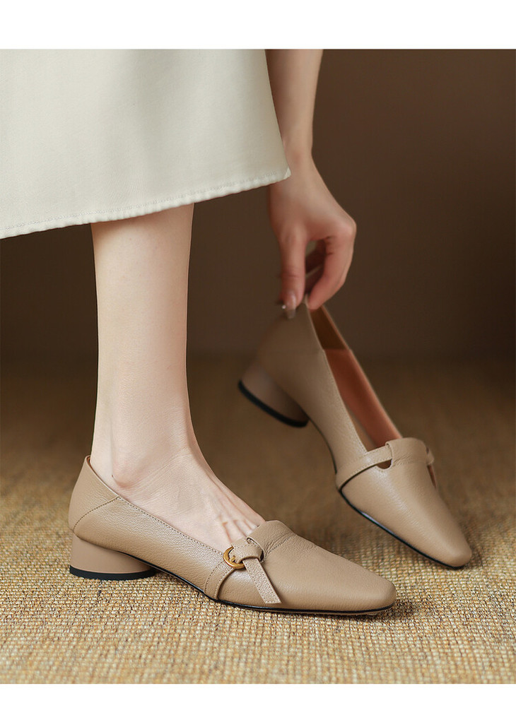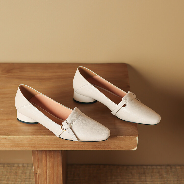 【预售5天】羊皮粗跟单鞋女秋季新款简约方头浅口低跟女鞋LD&6902