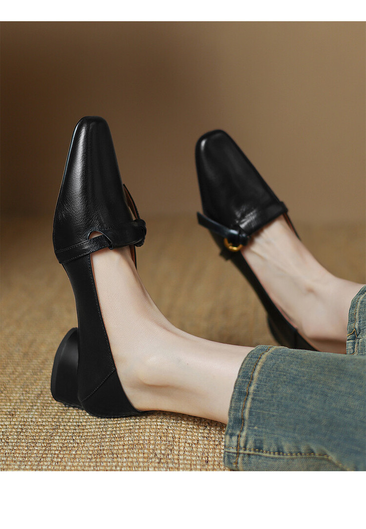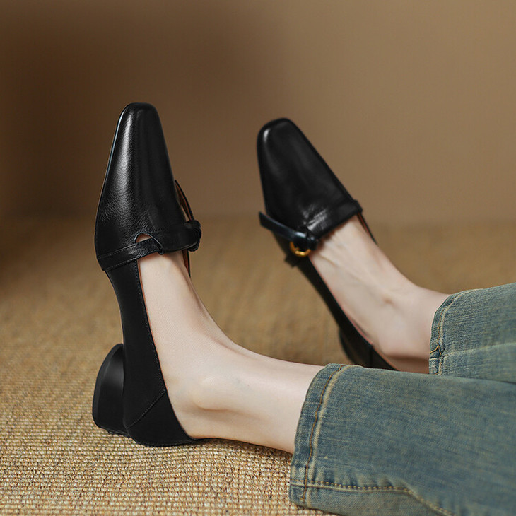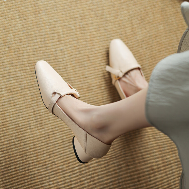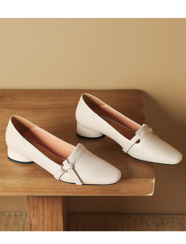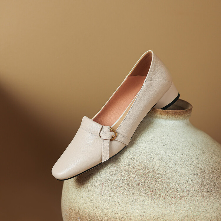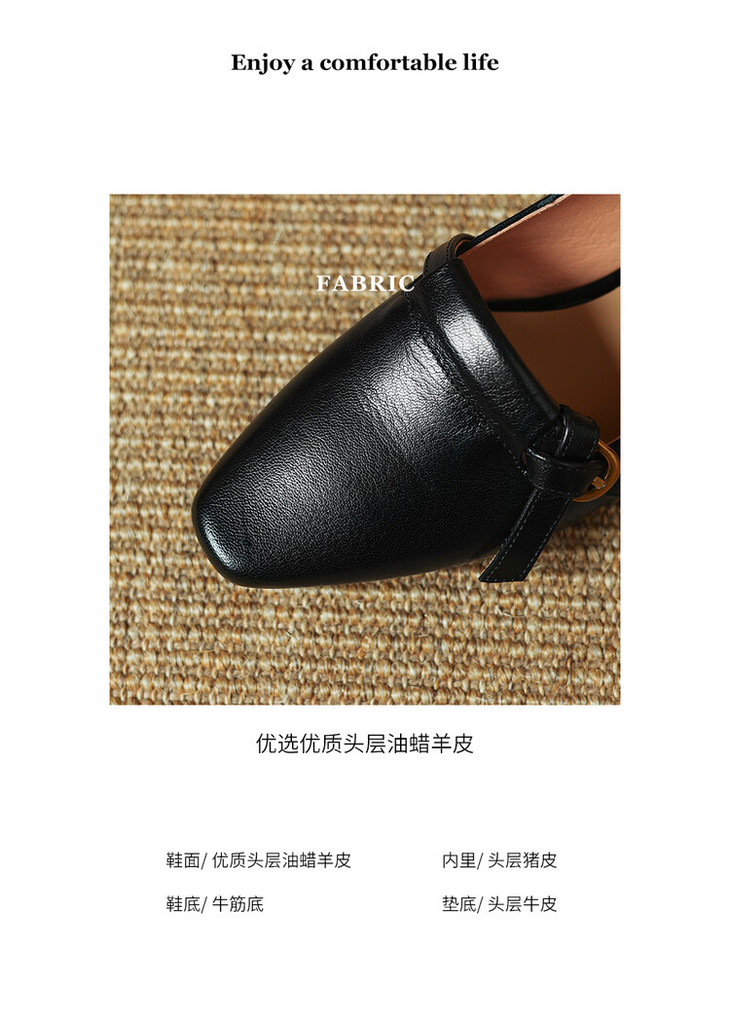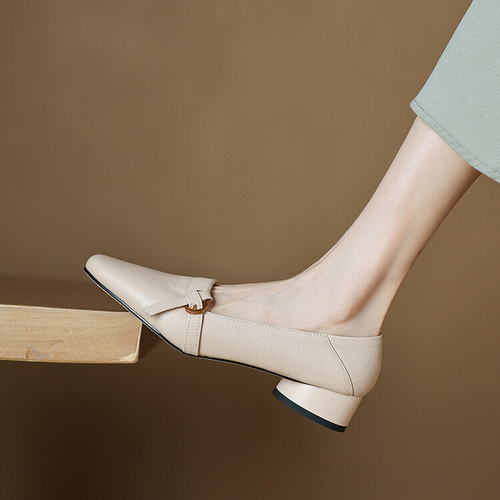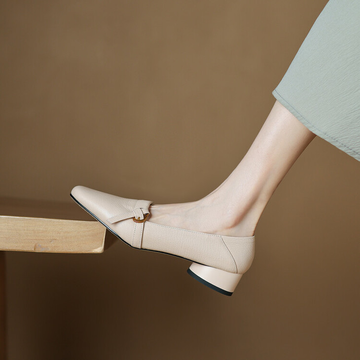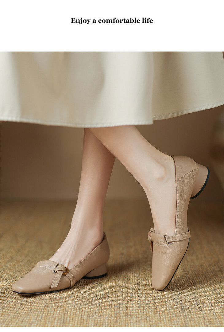 【预售5天】羊皮粗跟单鞋女秋季新款简约方头浅口低跟女鞋LD&6902