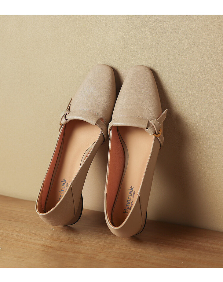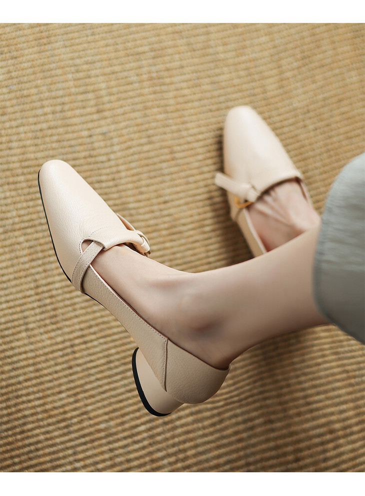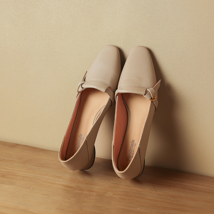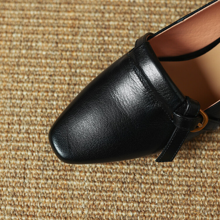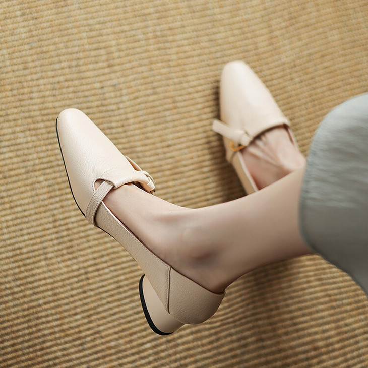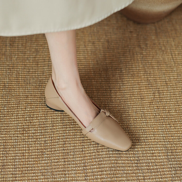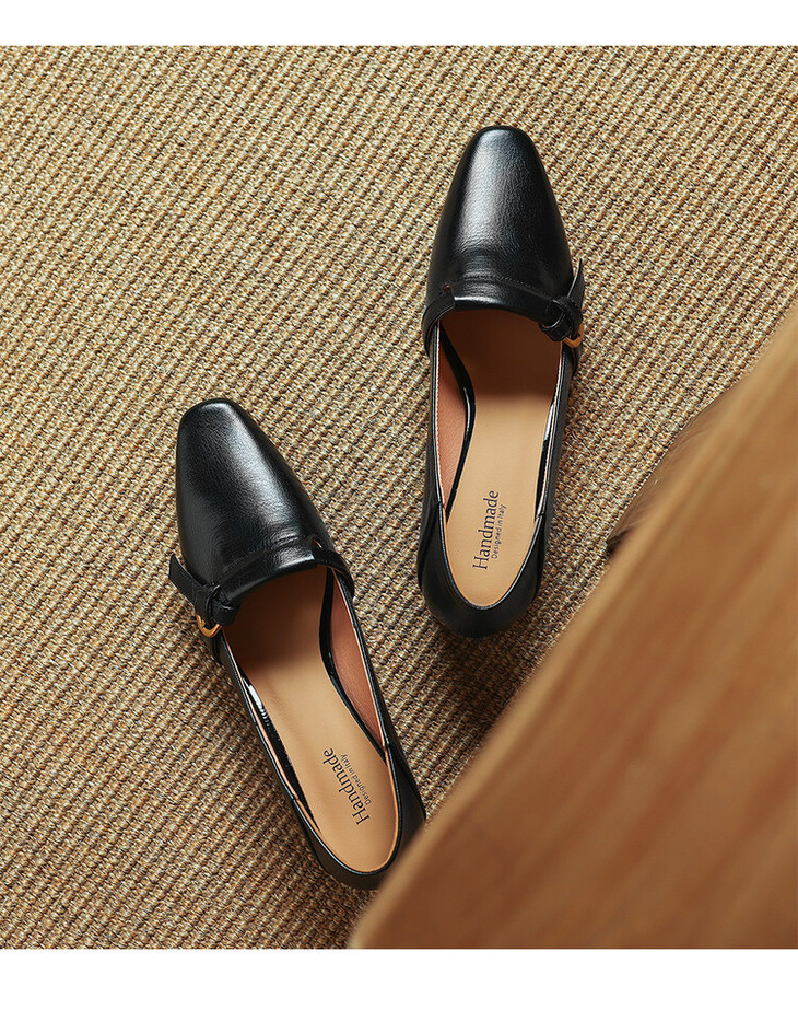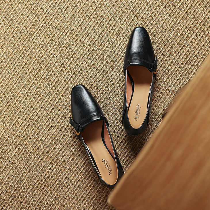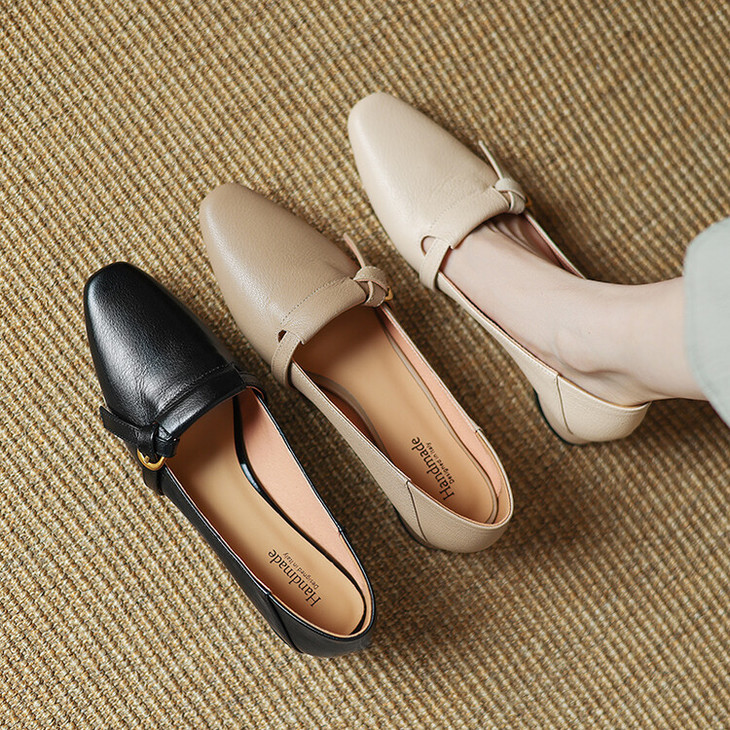 【预售5天】羊皮粗跟单鞋女秋季新款简约方头浅口低跟女鞋LD&6902