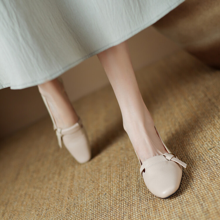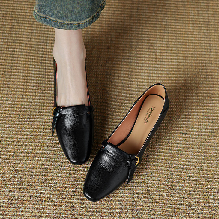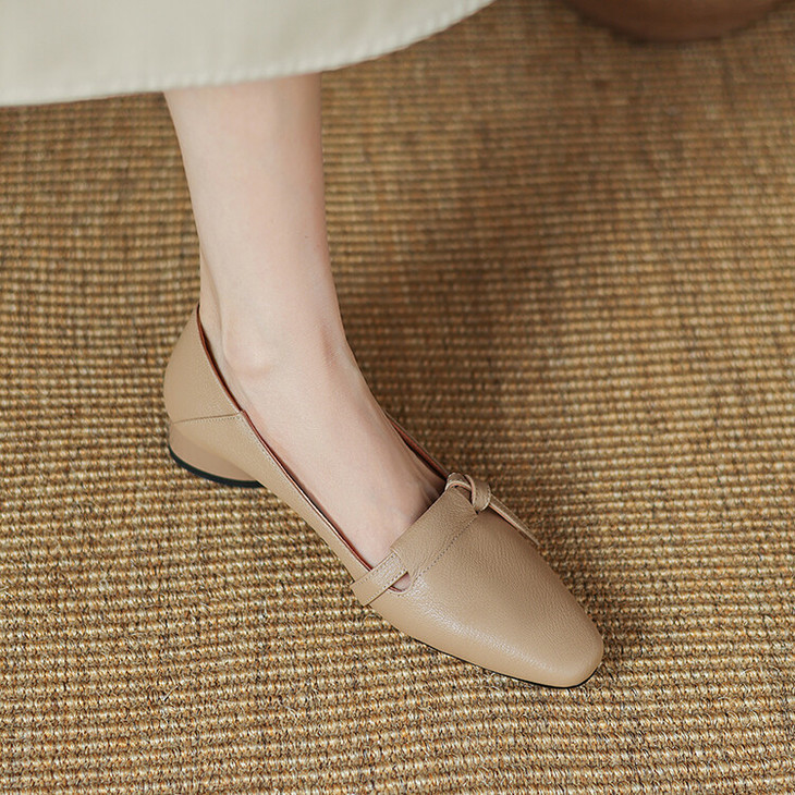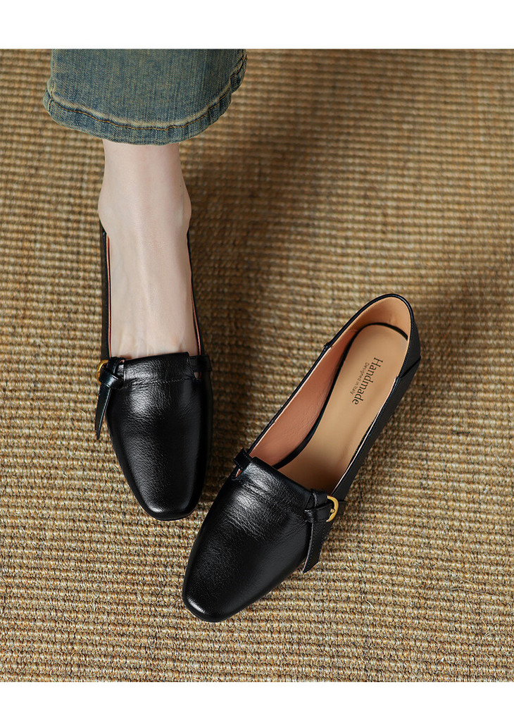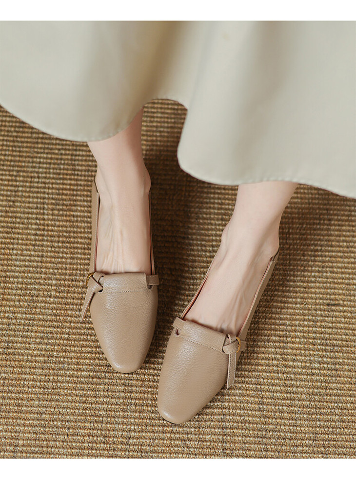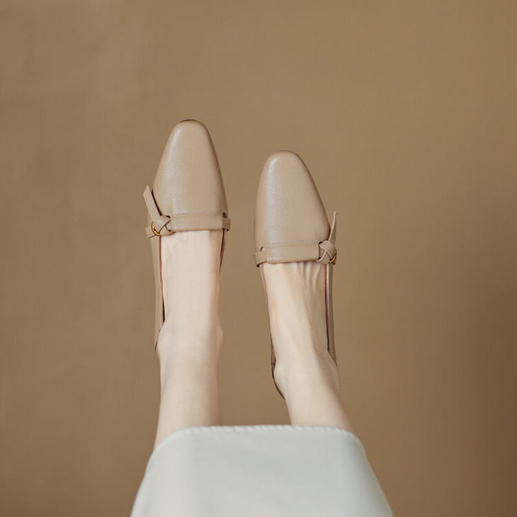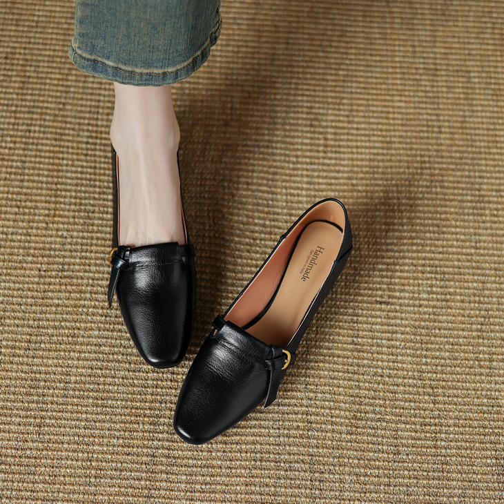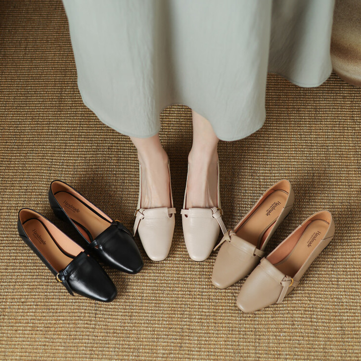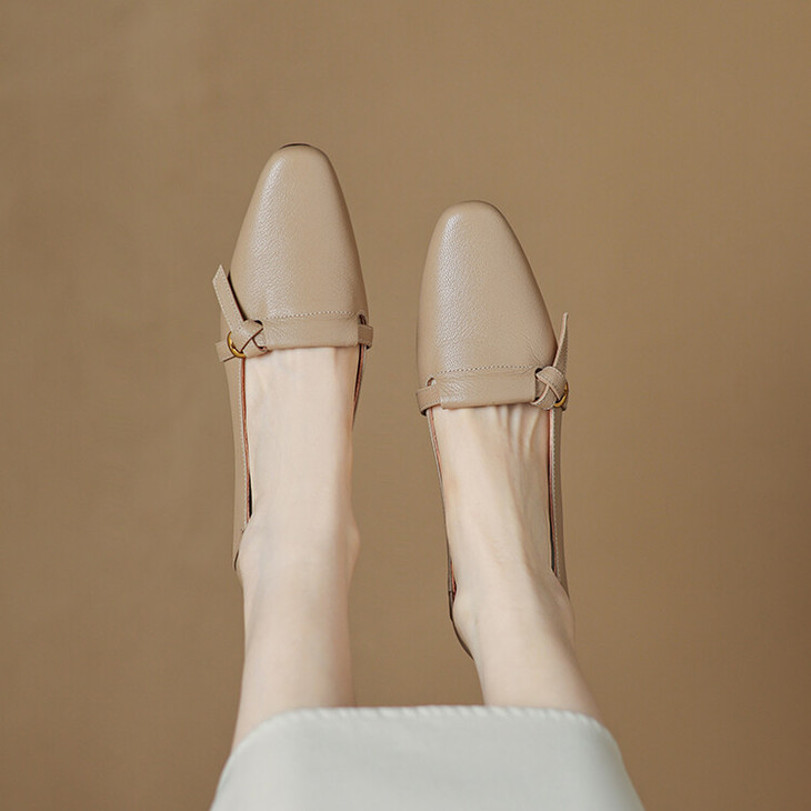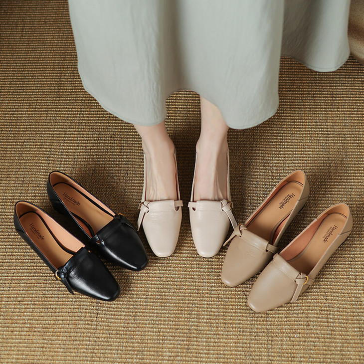 【预售5天】羊皮粗跟单鞋女秋季新款简约方头浅口低跟女鞋LD&6902