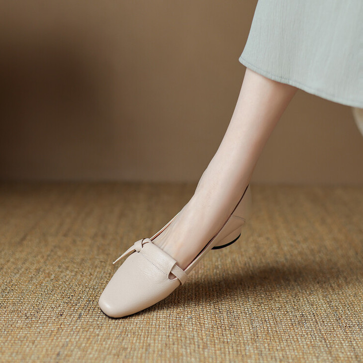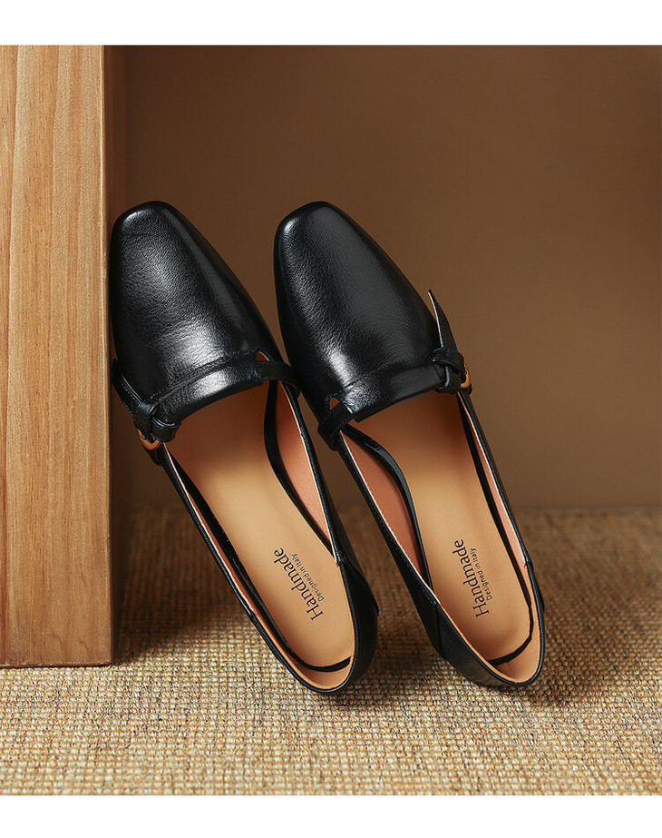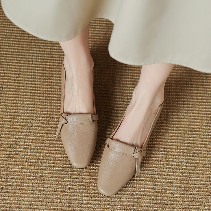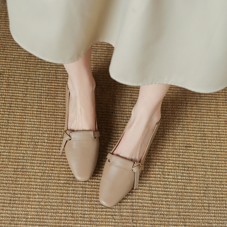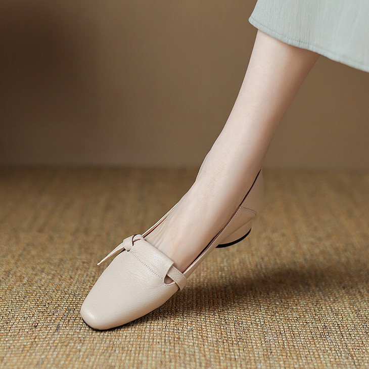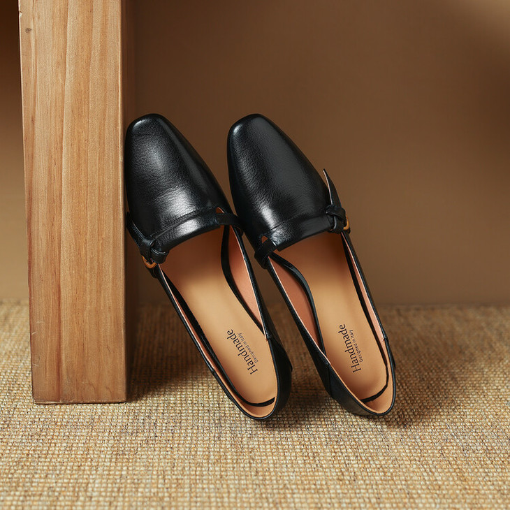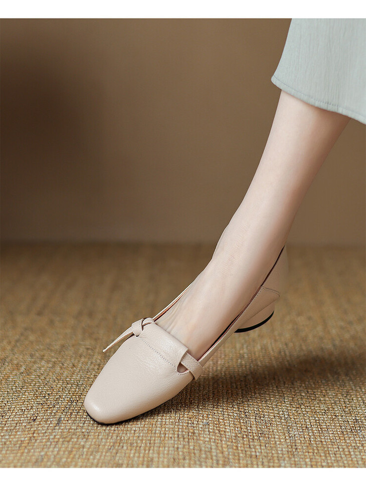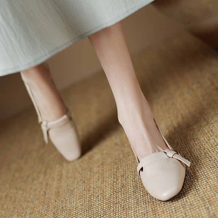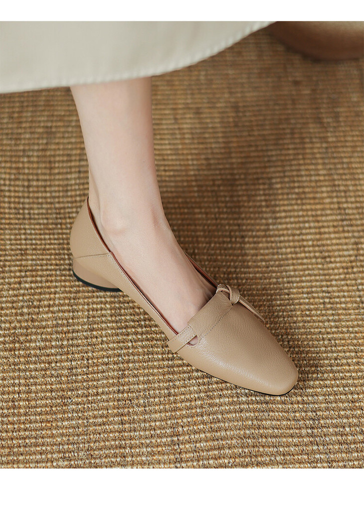 【预售5天】羊皮粗跟单鞋女秋季新款简约方头浅口低跟女鞋LD&6902