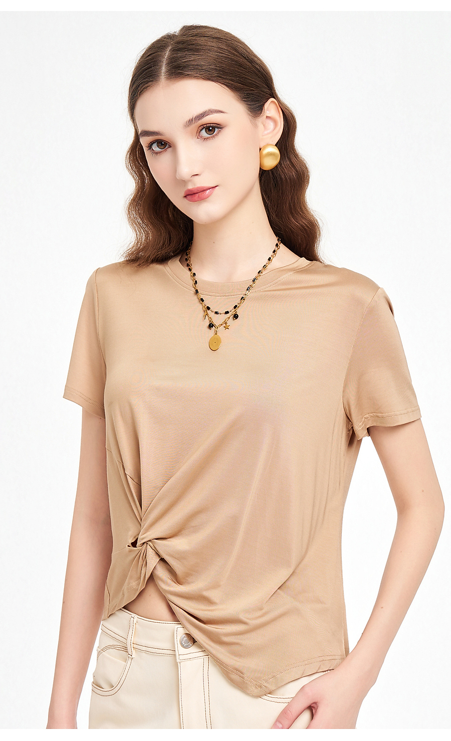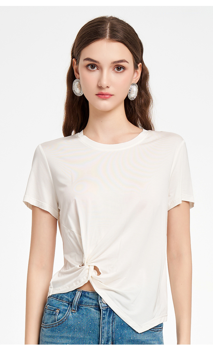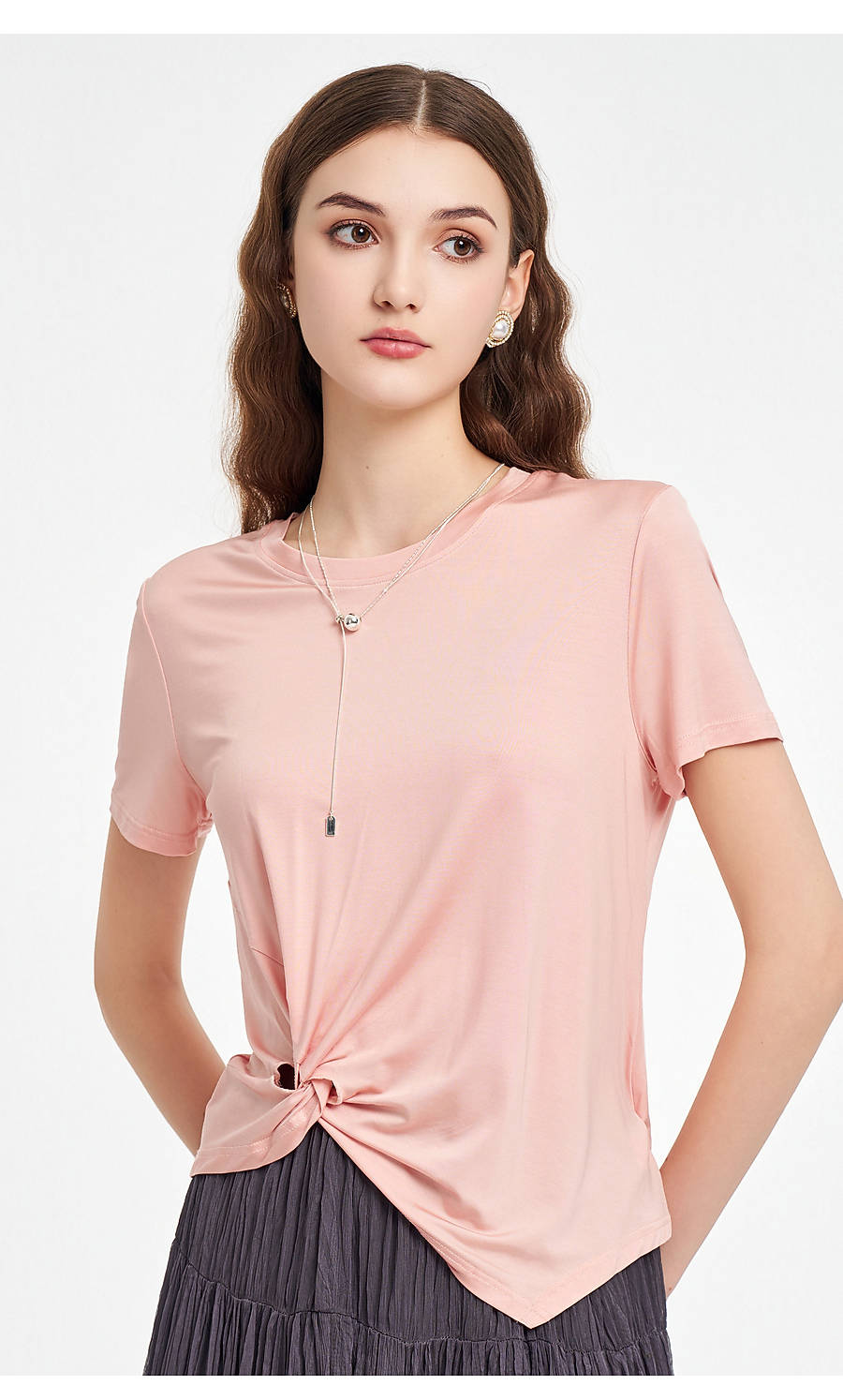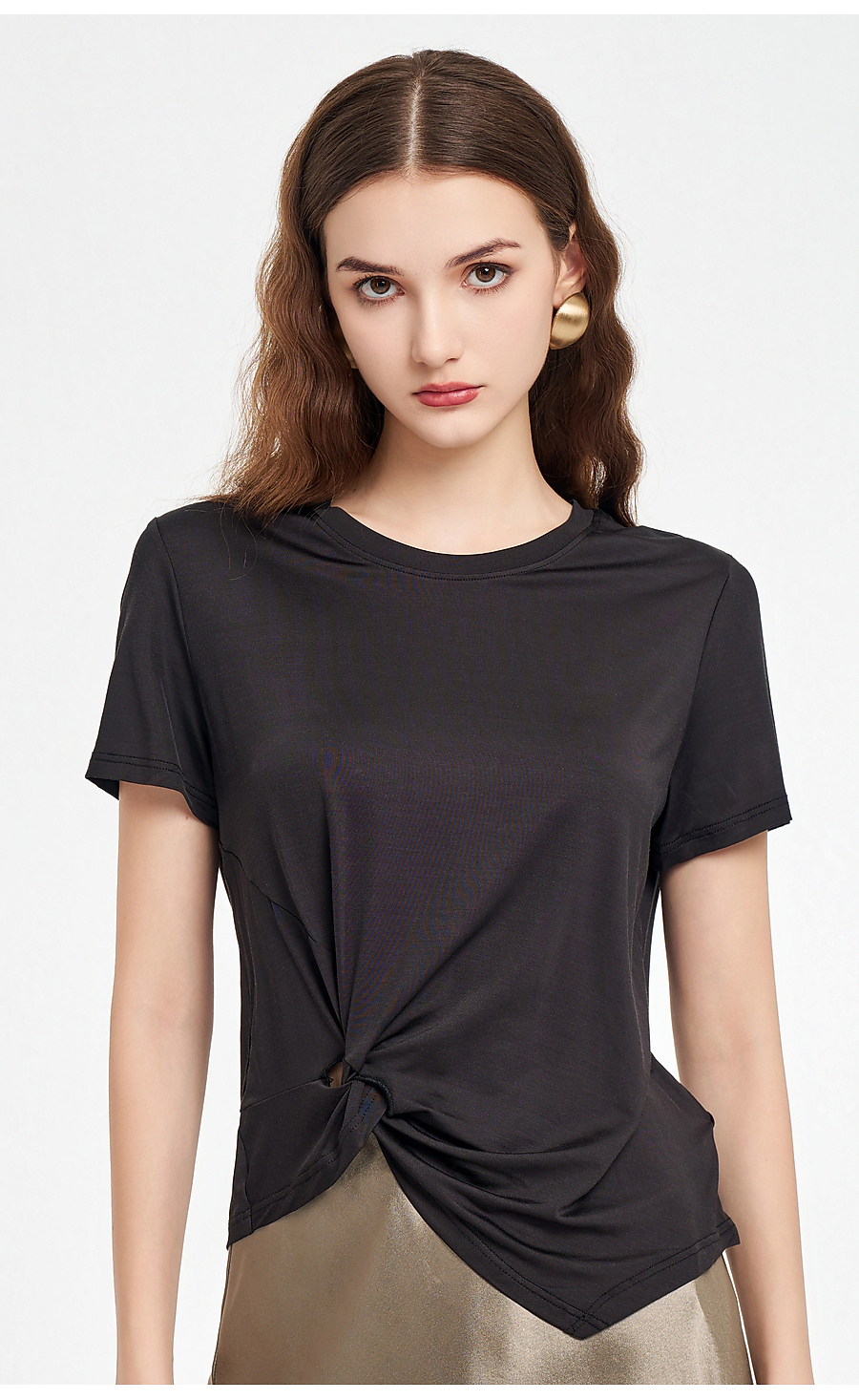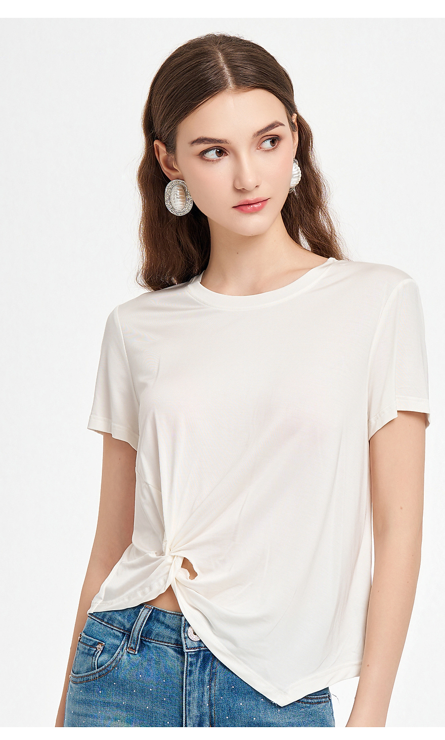 【四色可选】不规则设计感慵懒风亲肤圆领T恤EZ2C131
