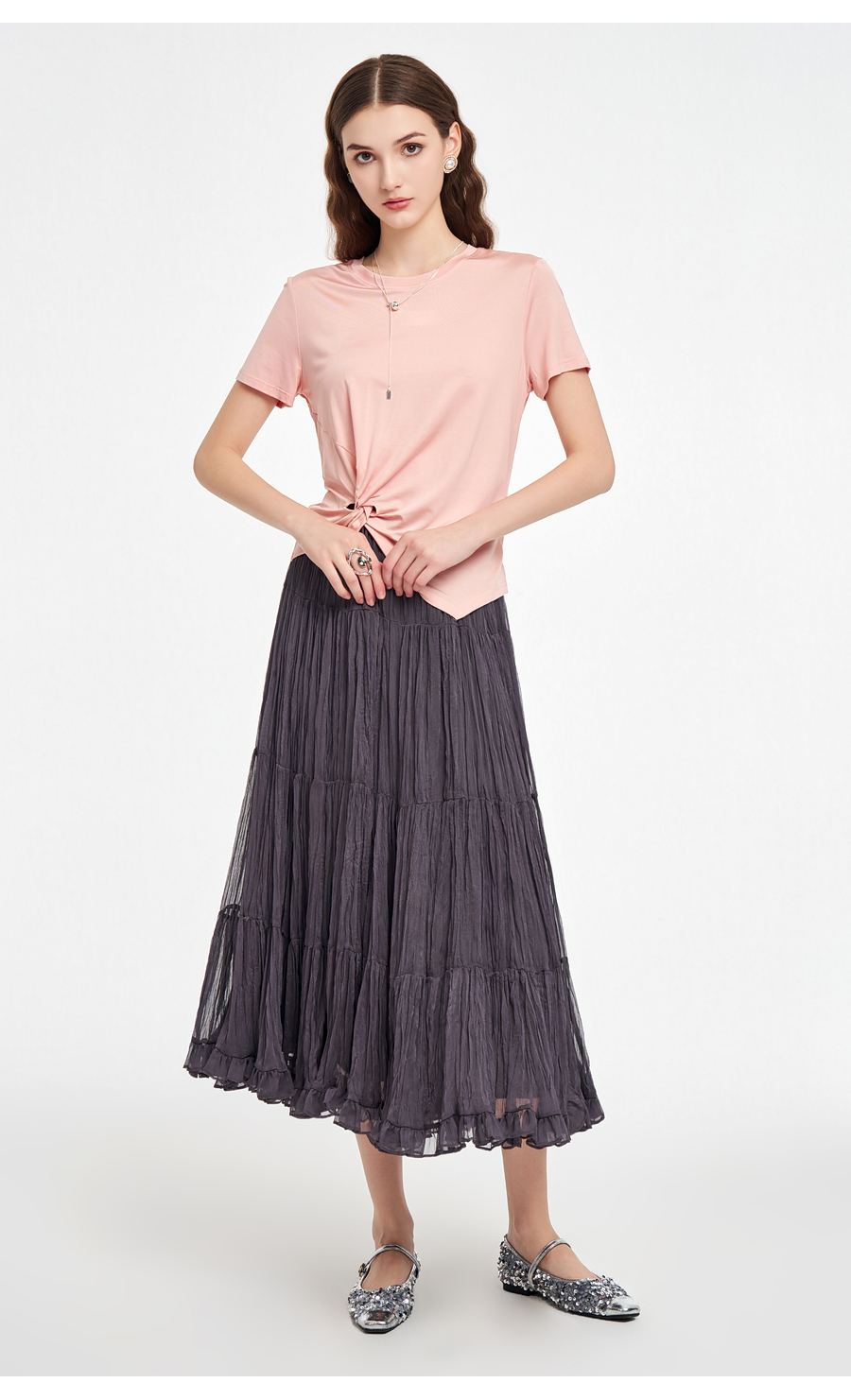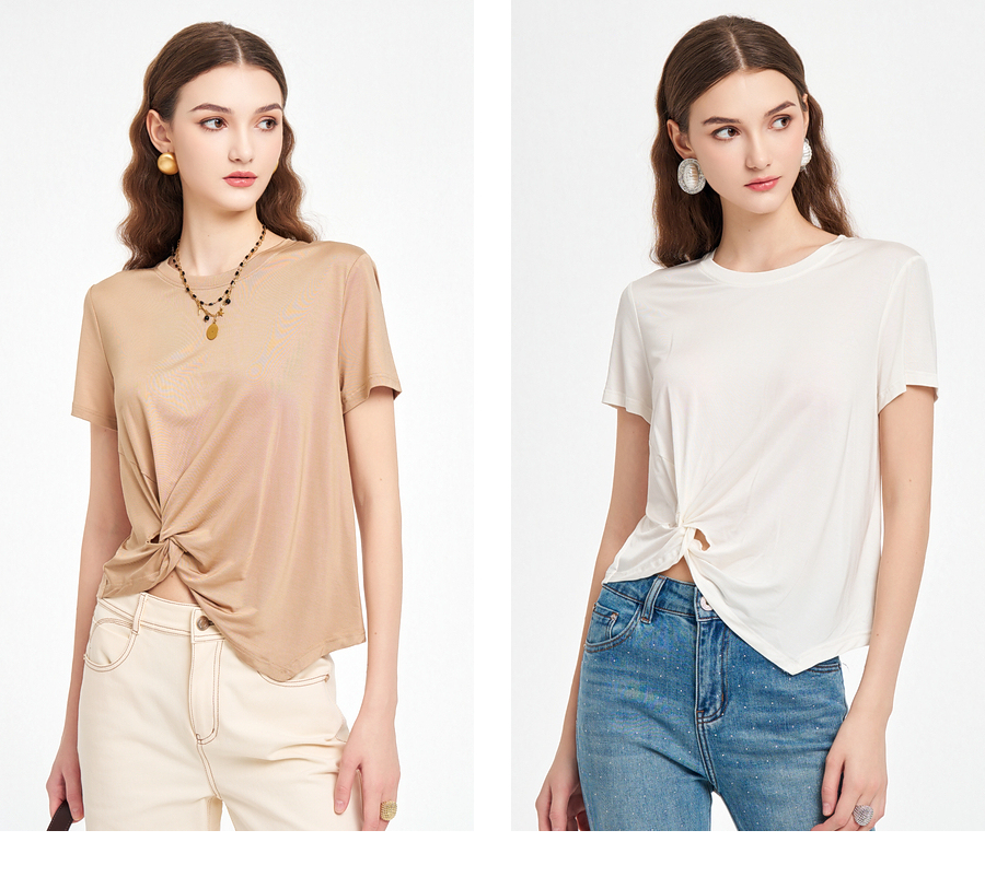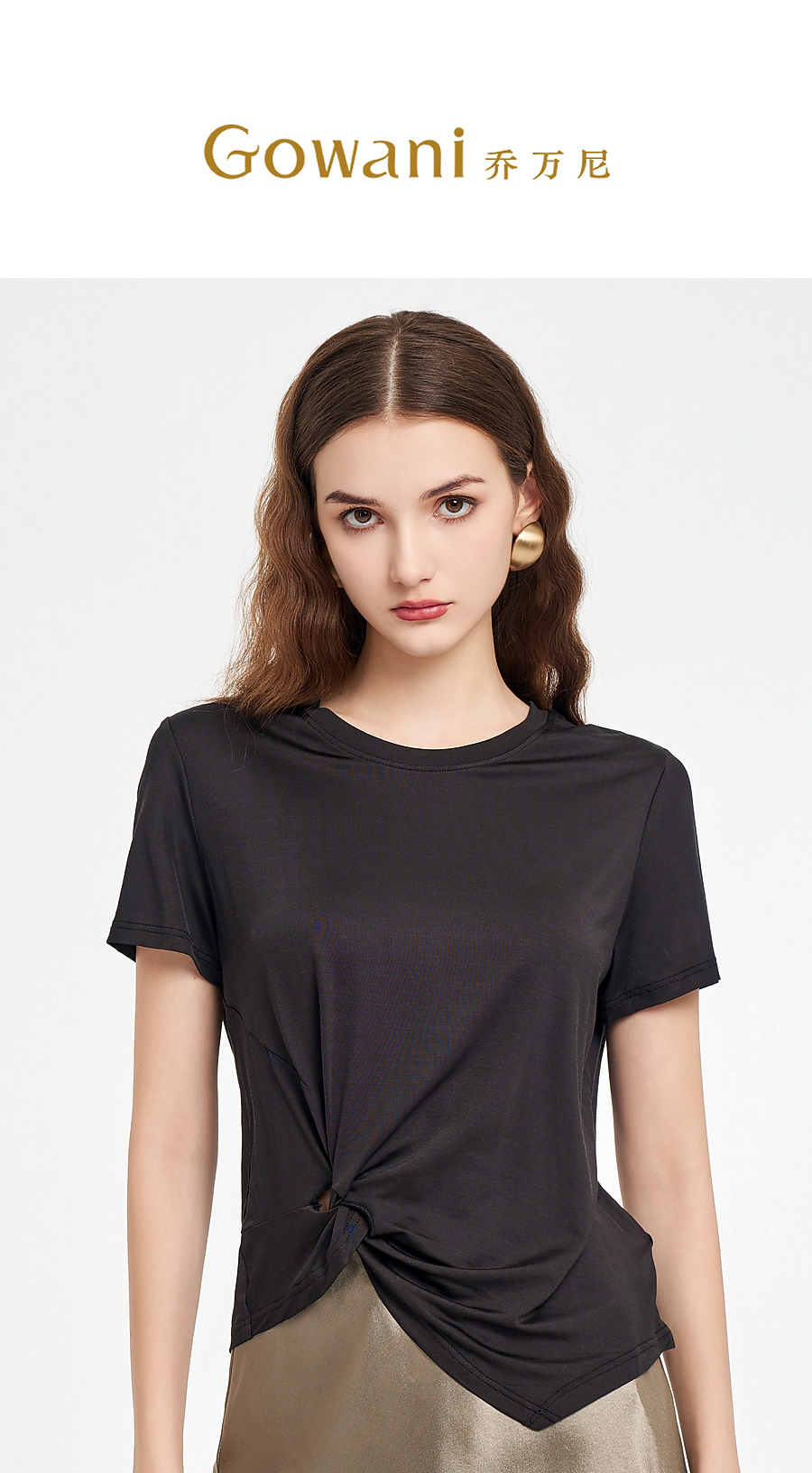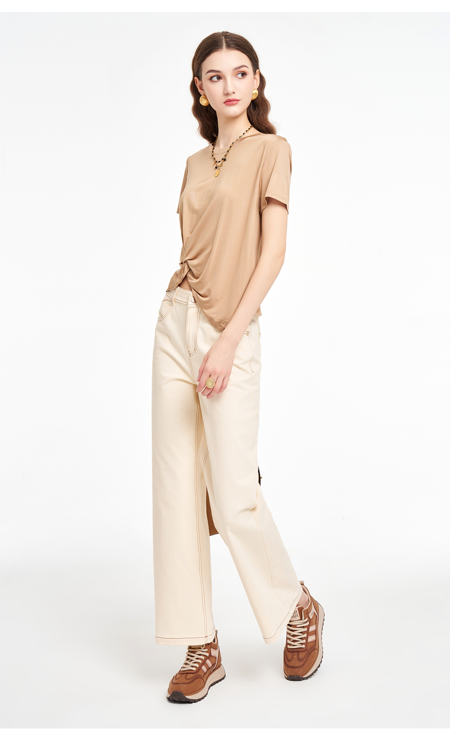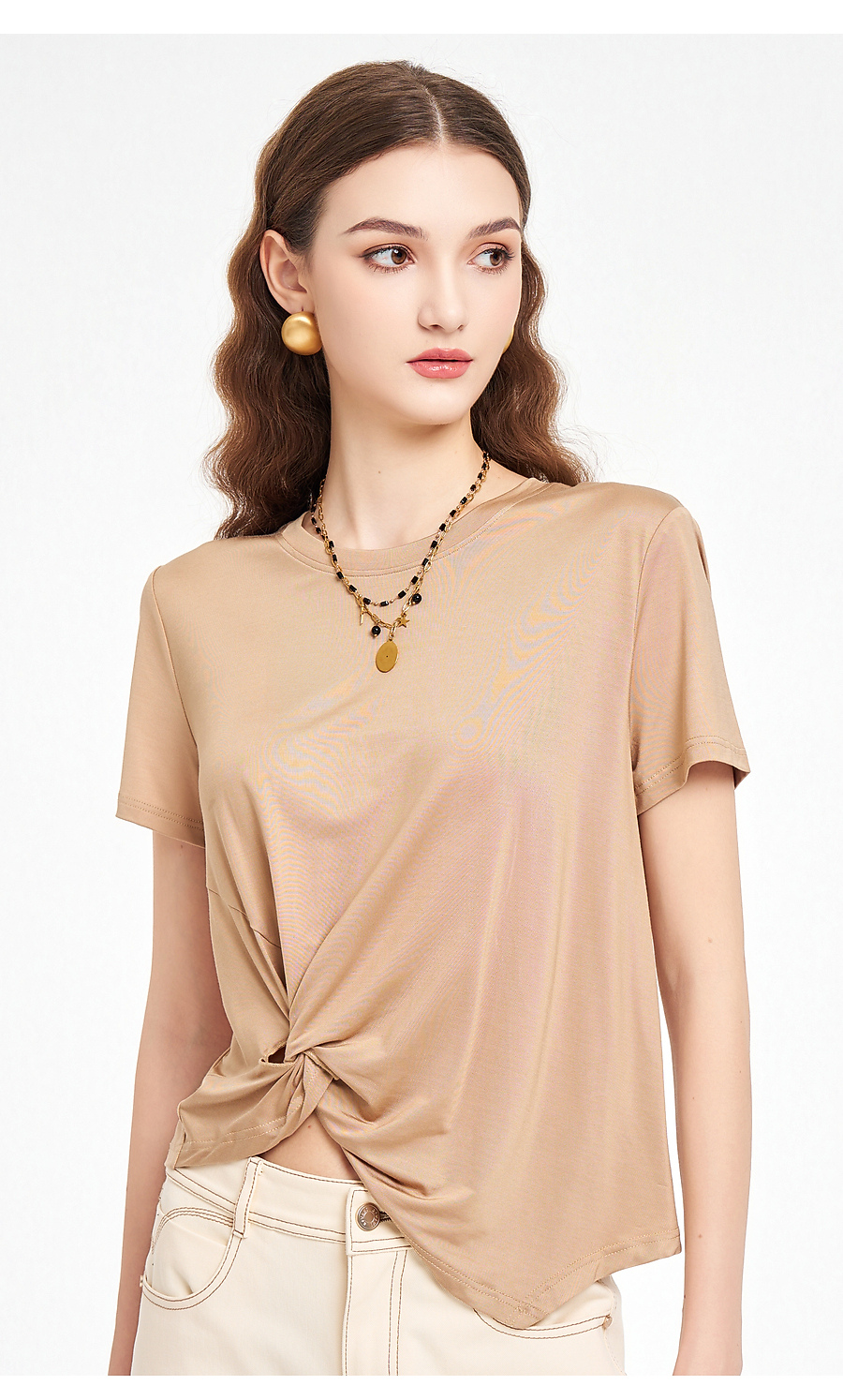 【四色可选】不规则设计感慵懒风亲肤圆领T恤EZ2C131