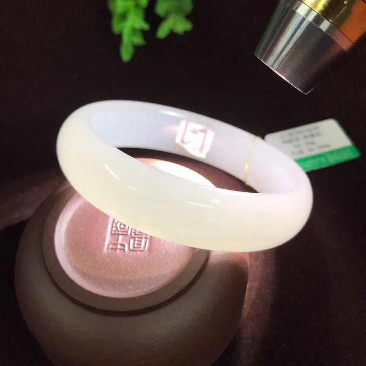 【羊脂玉手镯】圈口56.5 条宽15.6 厚度8.2 重量:63.36g,色泽温润柔和 质地细腻,水润淡雅,简洁时尚,图6可见天然水线,不影响佩戴效果。