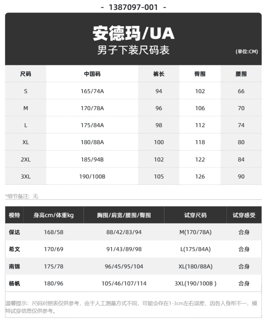 安德玛UA运动裤男士时尚Splash篮球运动长裤1387097-001