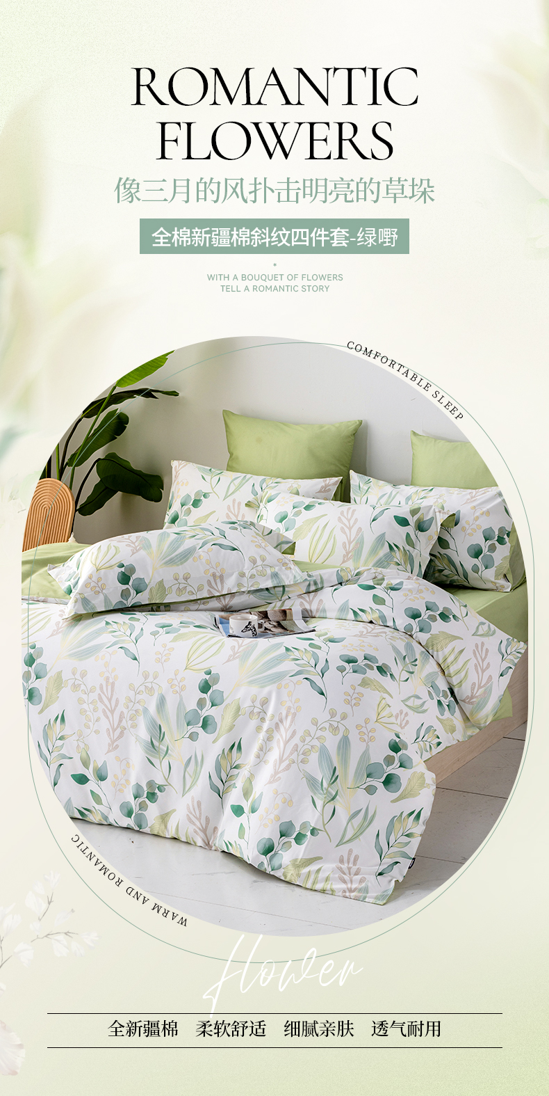 多喜爱 全棉新疆棉清新花卉四件套 绿嘢/柠熙/春日狂想曲hlcs