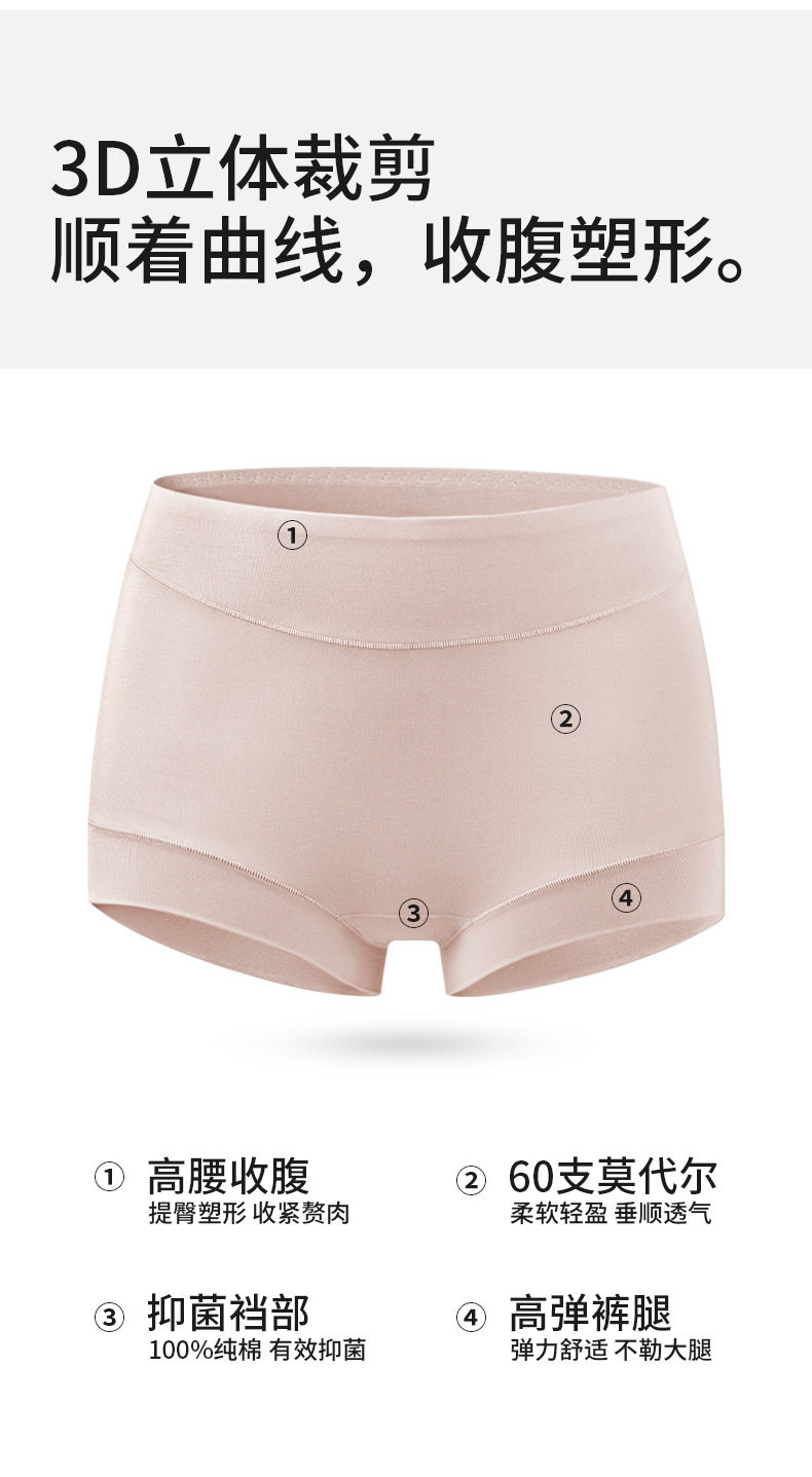 XY-1262  【1条】60支兰精莫代尔女士平角裤高腰透气收腹纯棉抗菌女士内裤 商品图4