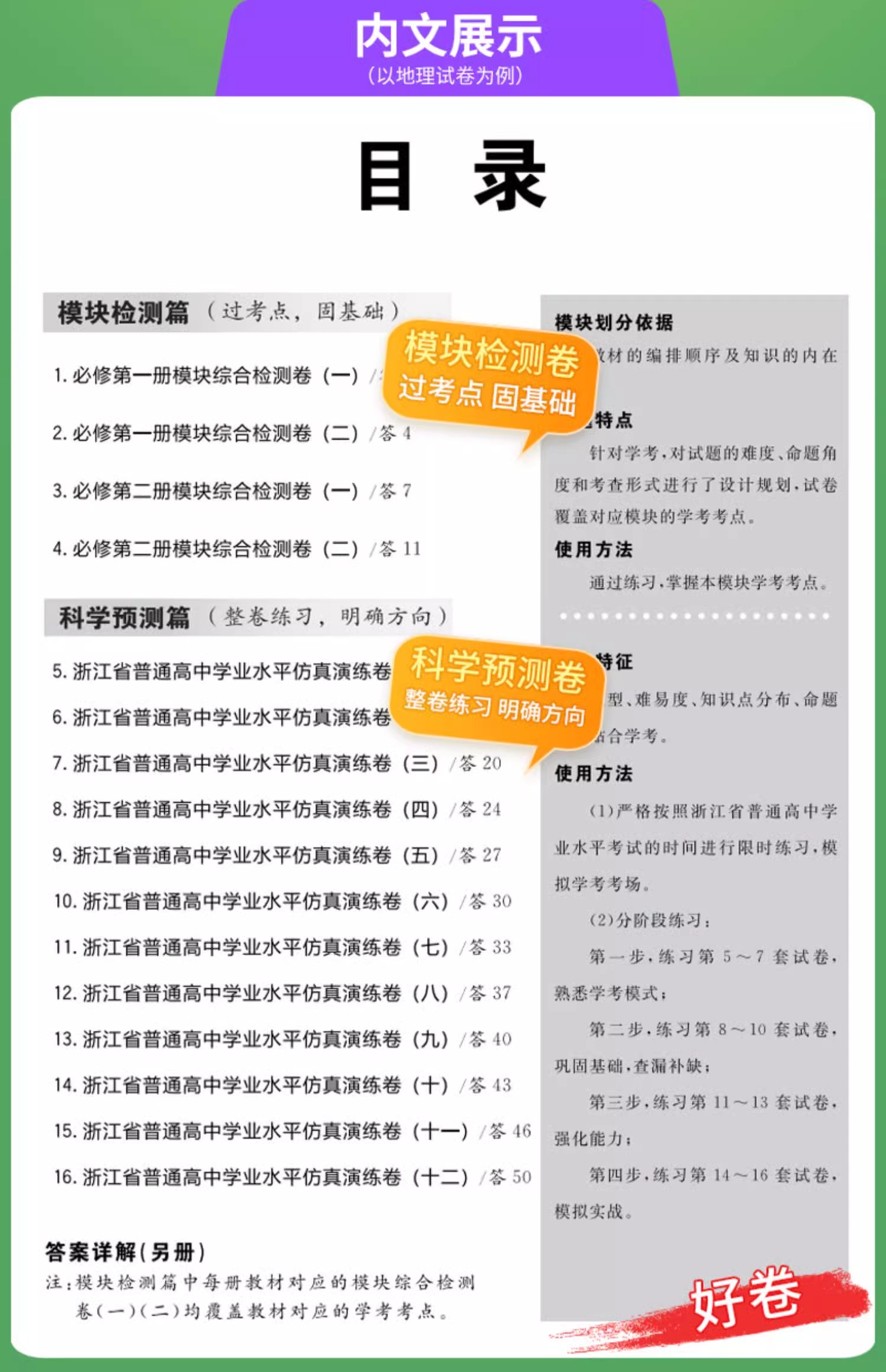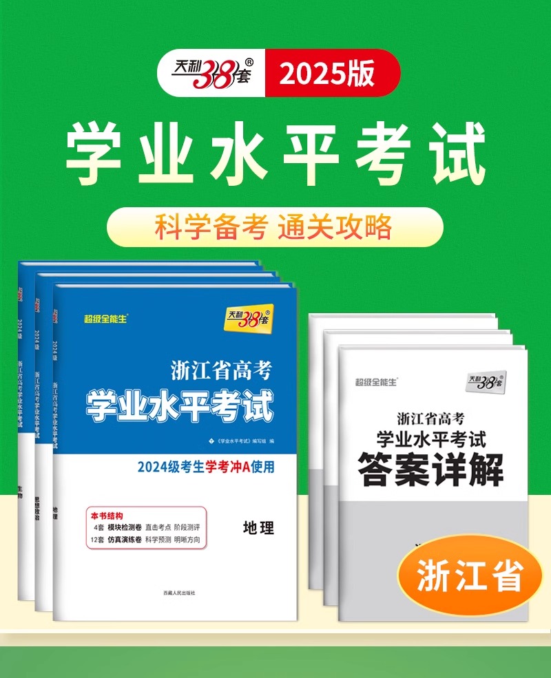 浙江省高考学业水平考试2025浙江学考复习化学生物地理历史政治物理语文数学技术天利38套高一下册高二真题