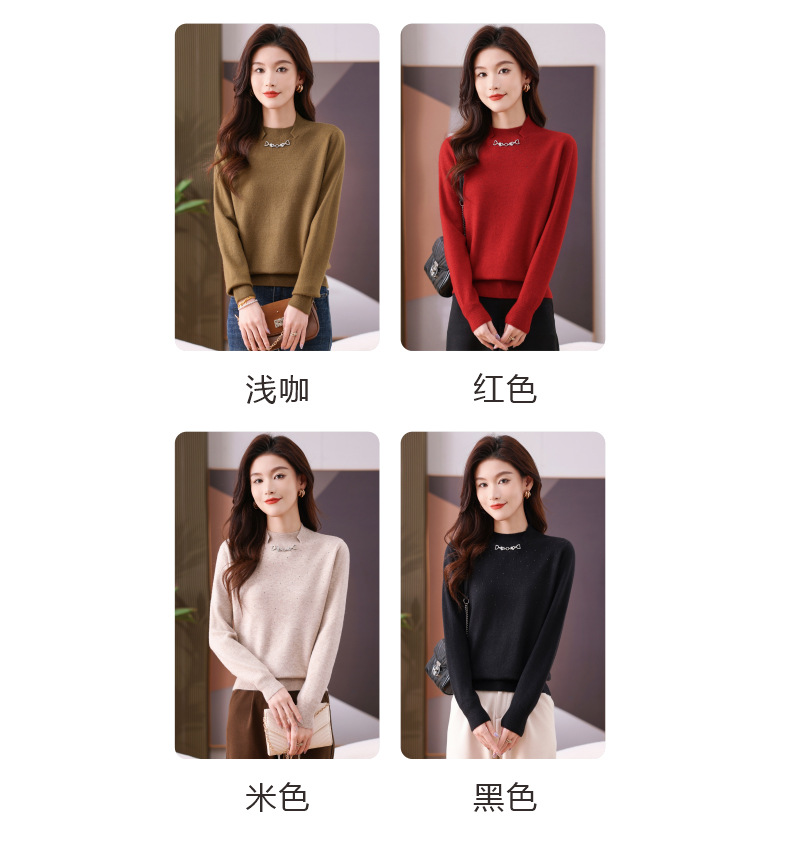 CC-101-56728设计感半高领短款毛衣女2024秋冬新款洋气套头针织打底衫