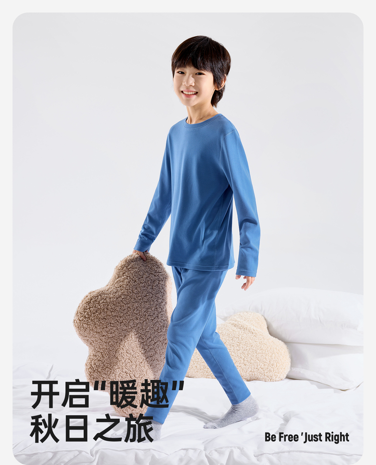【秋冬保暖】BlueM儿童内衣套装 男童秋衣秋裤中大童睡衣家居服 2色 [110-160cm]