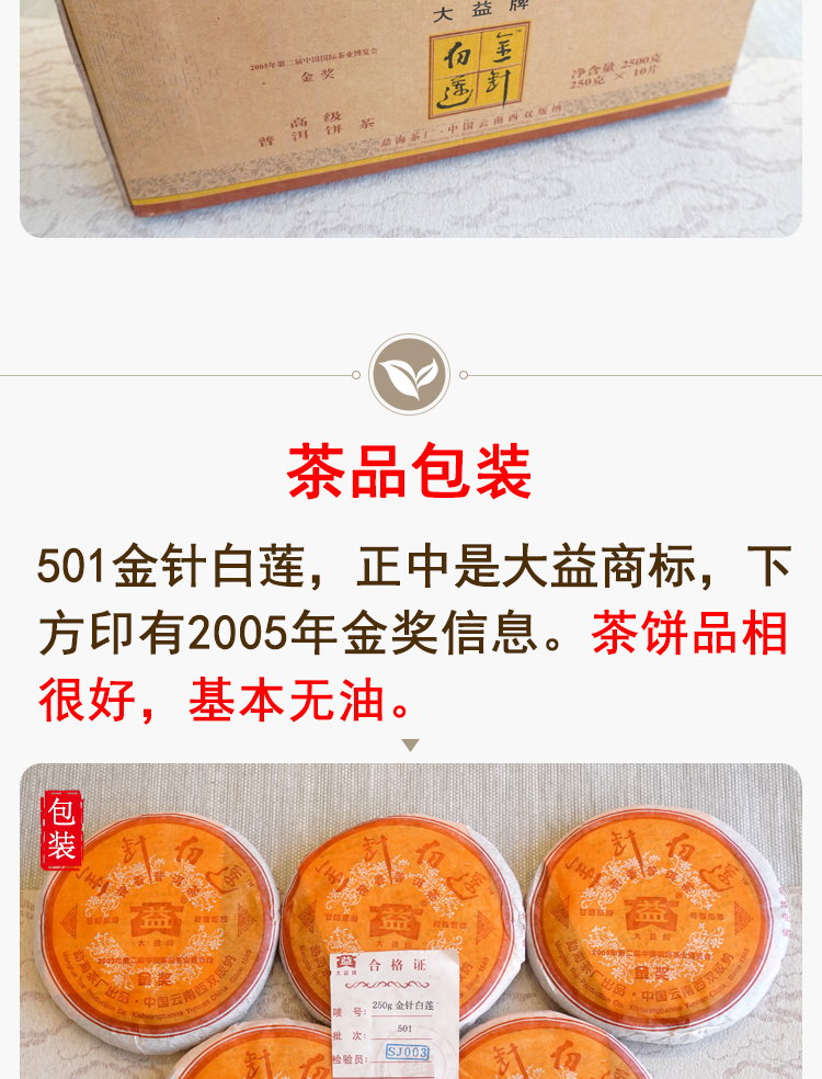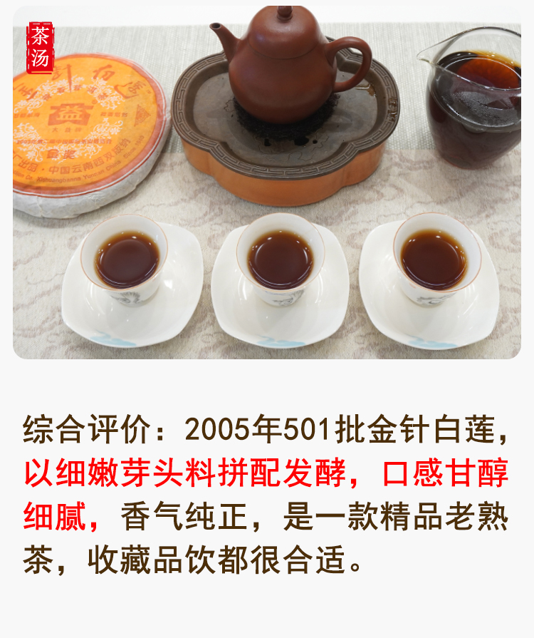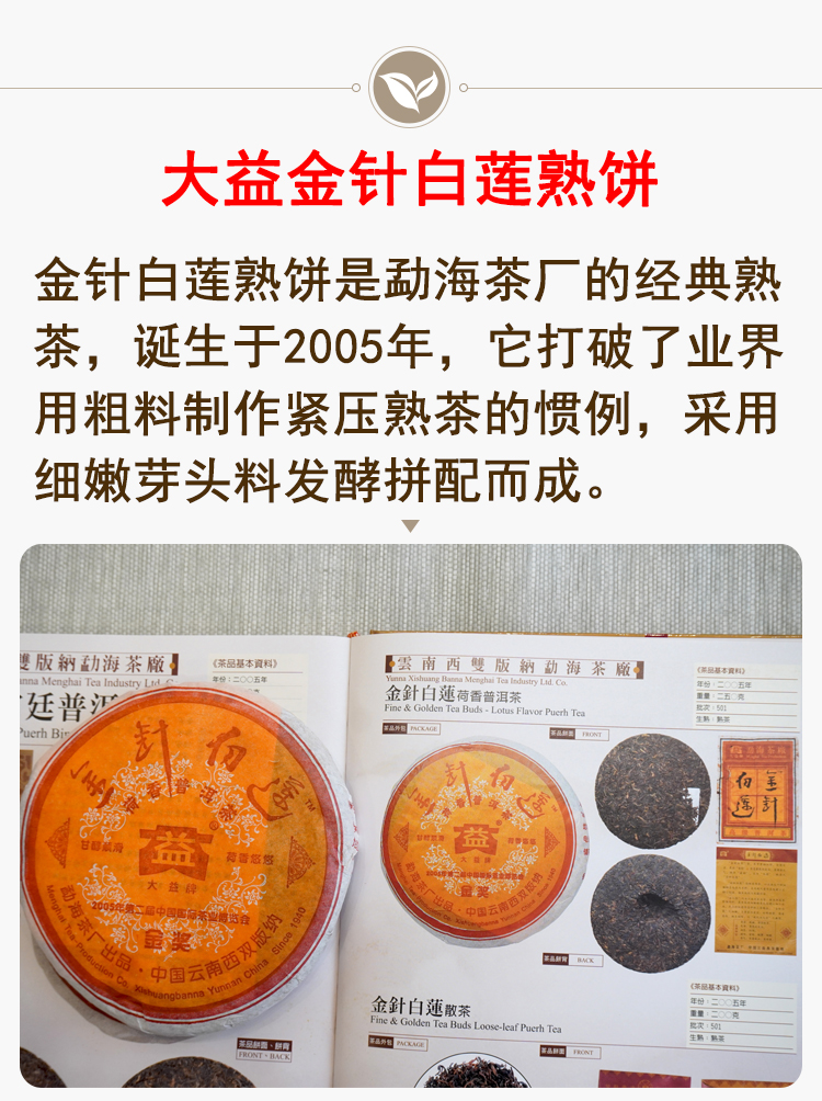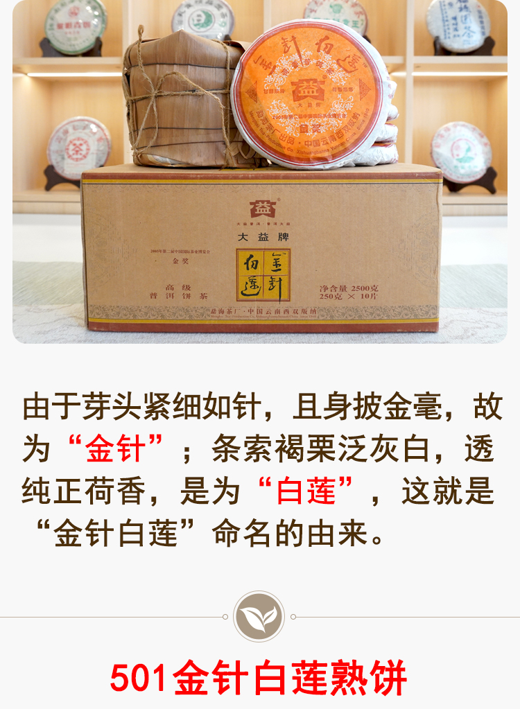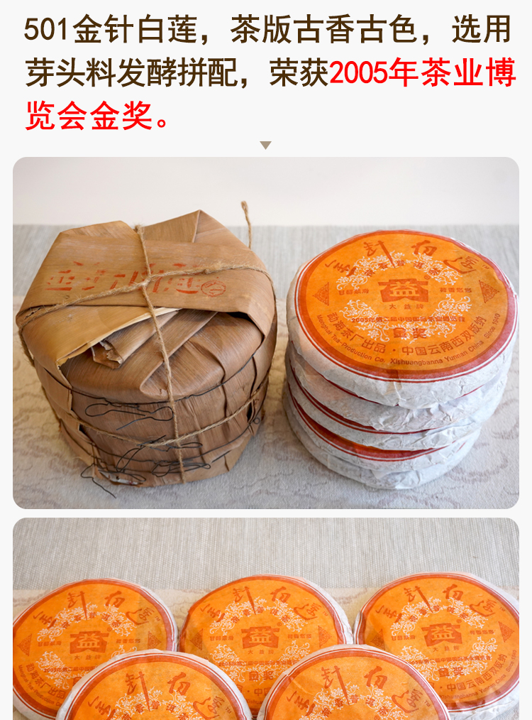 金针白莲2005年501批次大益勐海茶厂标杆老熟茶 高品质干仓真品 一片250克单片标价 一提5片