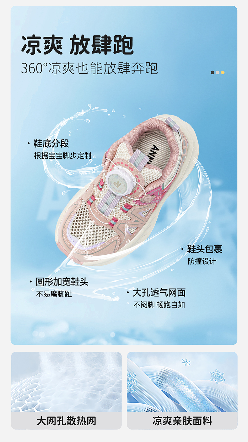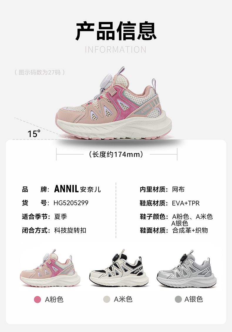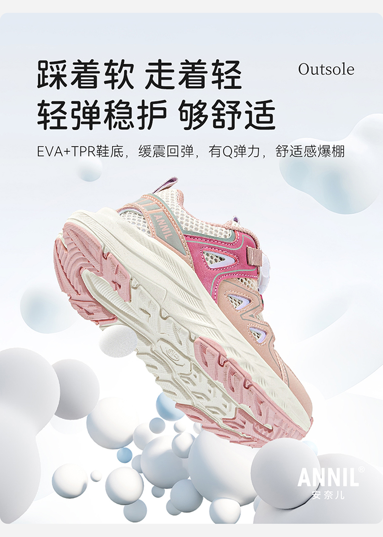 ANNIL/安奈儿儿童运动鞋2025新款夏季男童透气单网软底女童防滑跑步鞋HG5205299