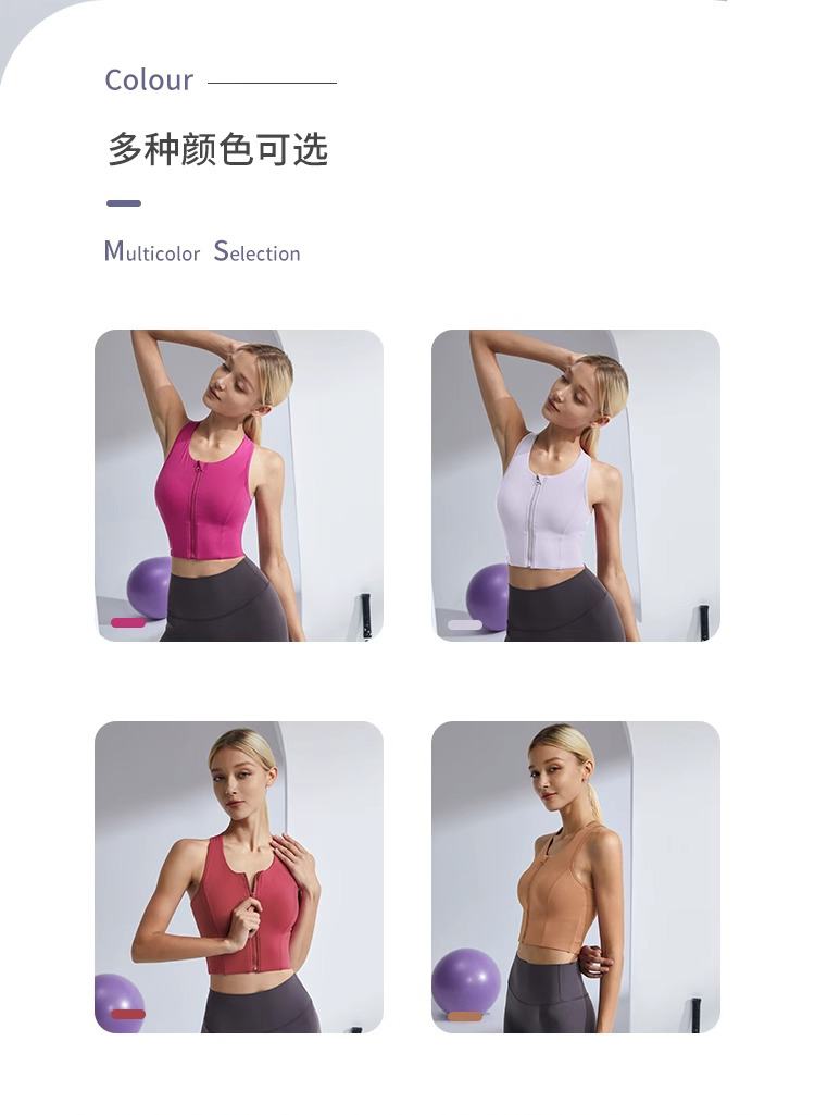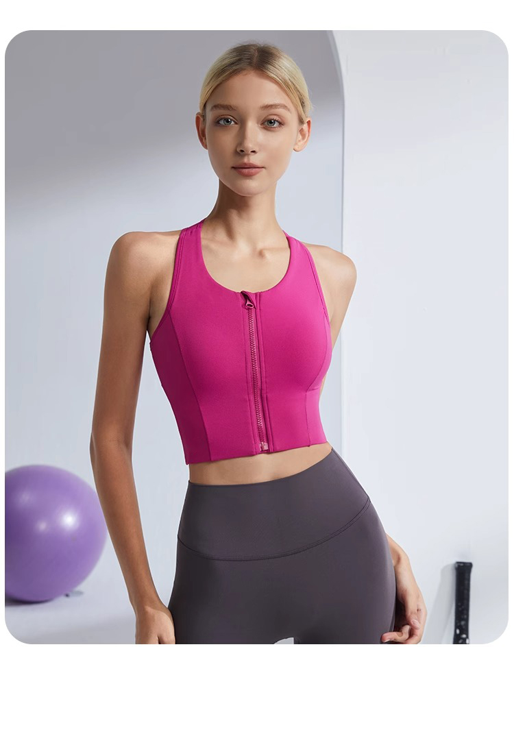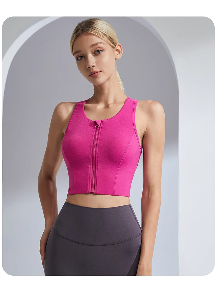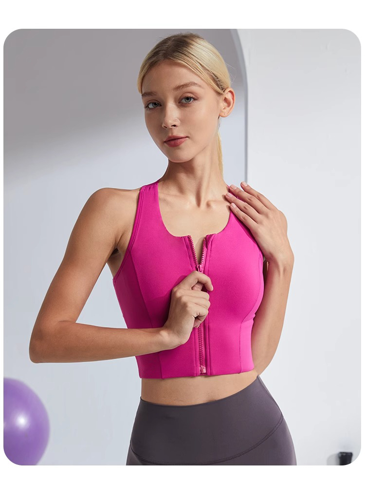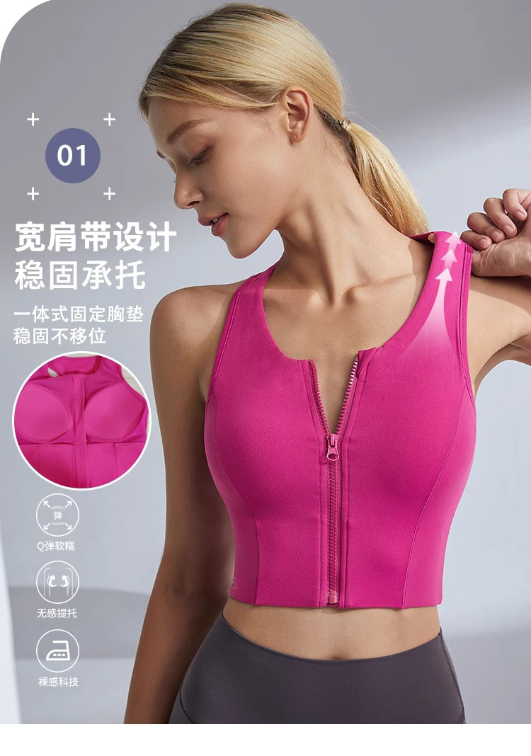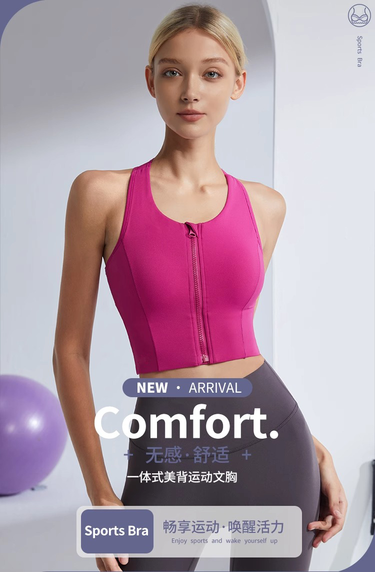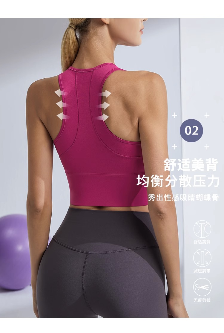 跃牌【倚窗听雨系列】裸感一体式运动内衣前拉链收副乳防震瑜伽跑步普拉提健身背心 WX32-23(带胸垫)