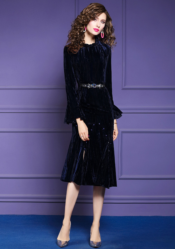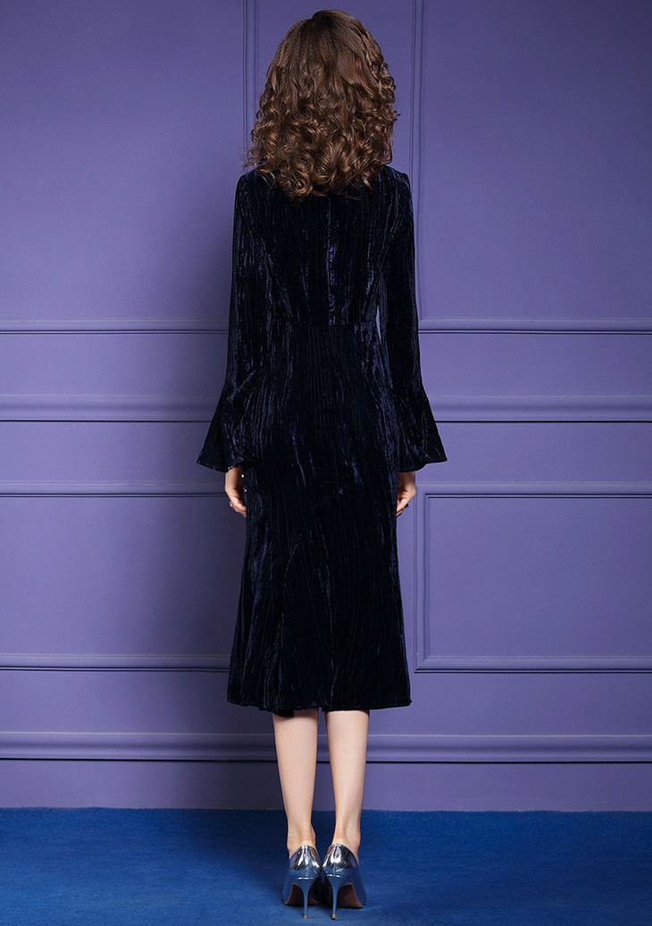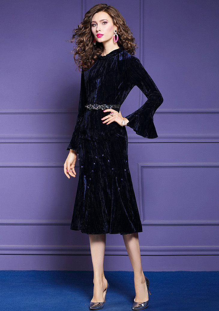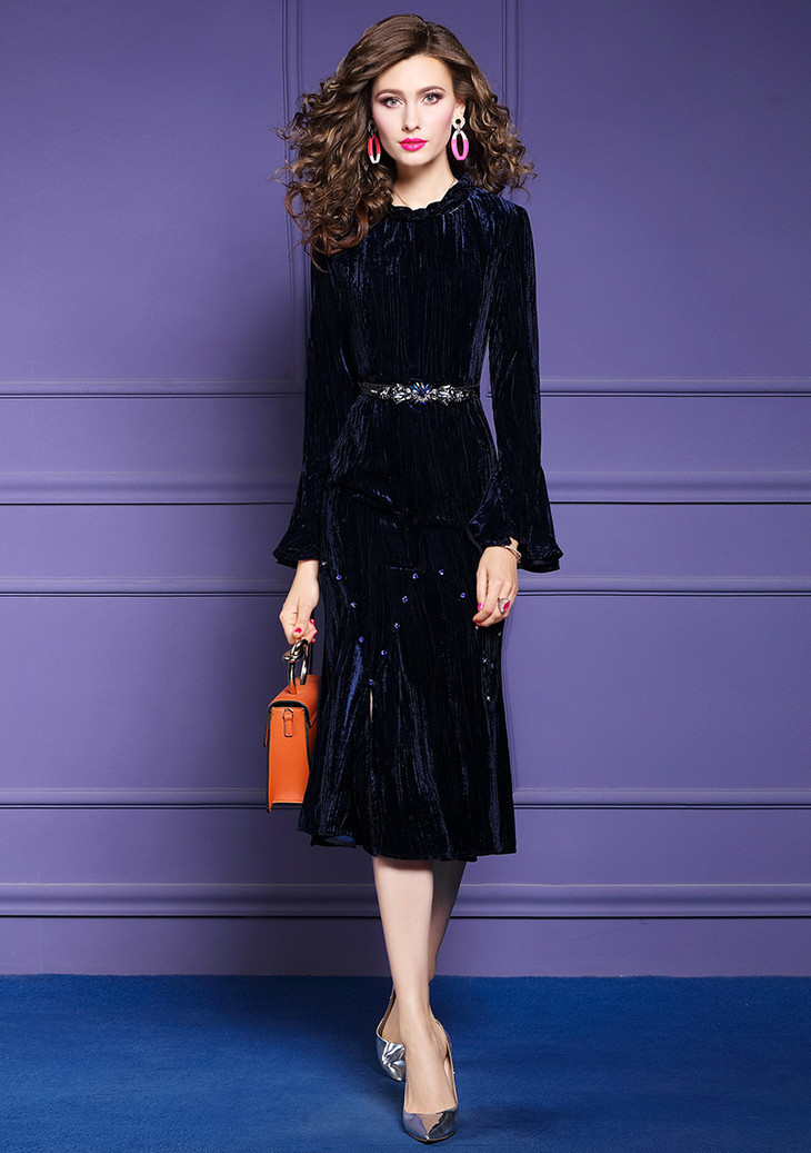 FMY-25722秋冬新款智熏裙法式桔梗裙收腰时尚丝绒连衣裙