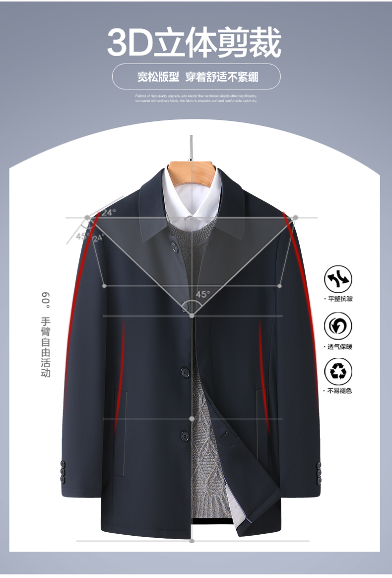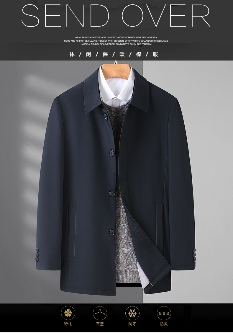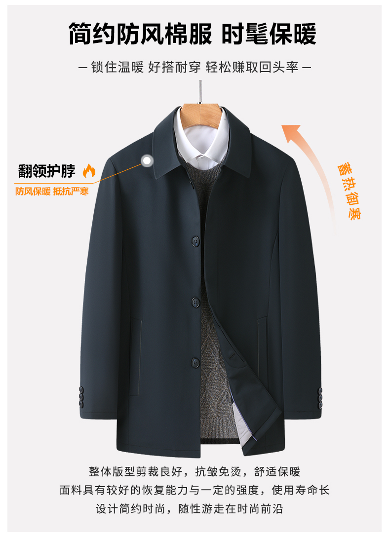 【加棉】【新款DWP】大依优型大码翻领夹克加棉棉衣外套风衣加肥加大肥佬休闲商务上衣男士胖子