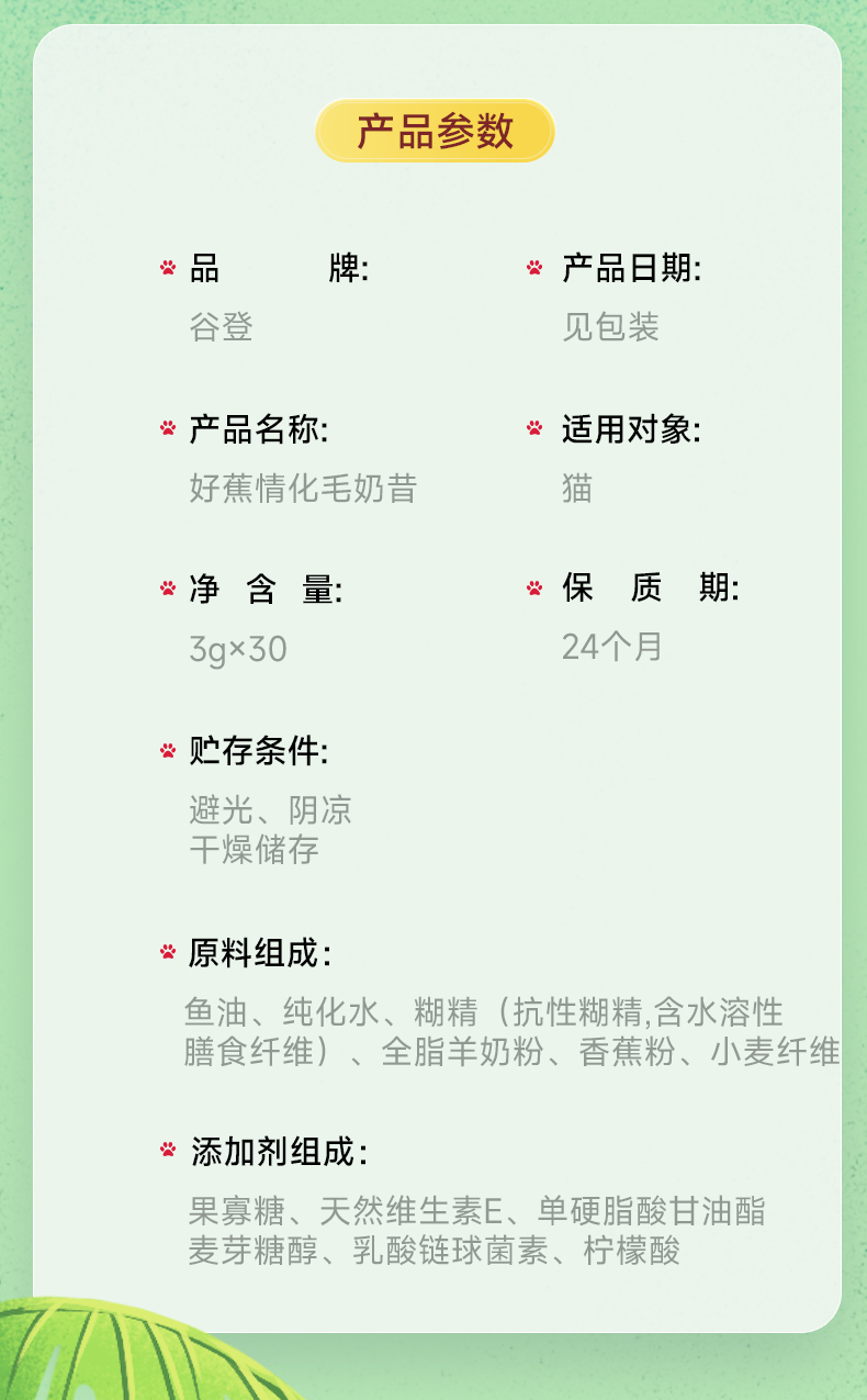 【商城上新 加送羊奶肉包】谷登好蕉情化毛奶昔(猫用)