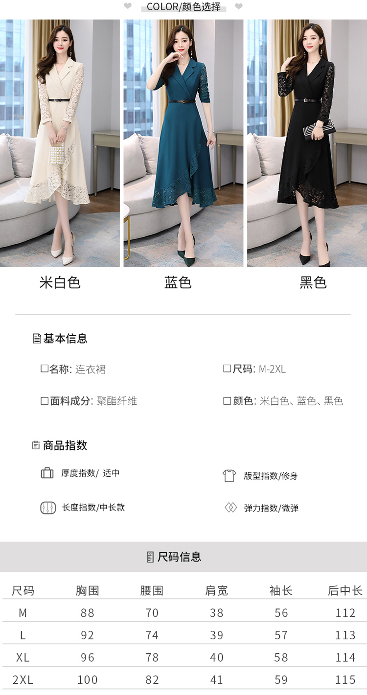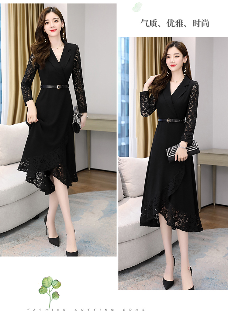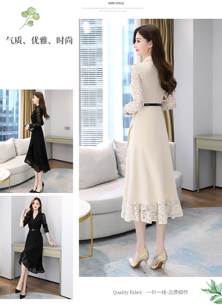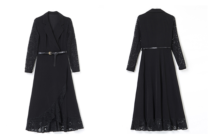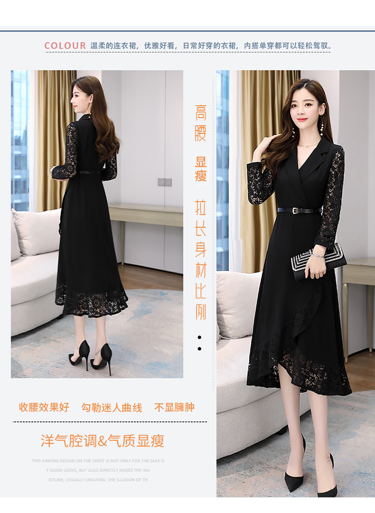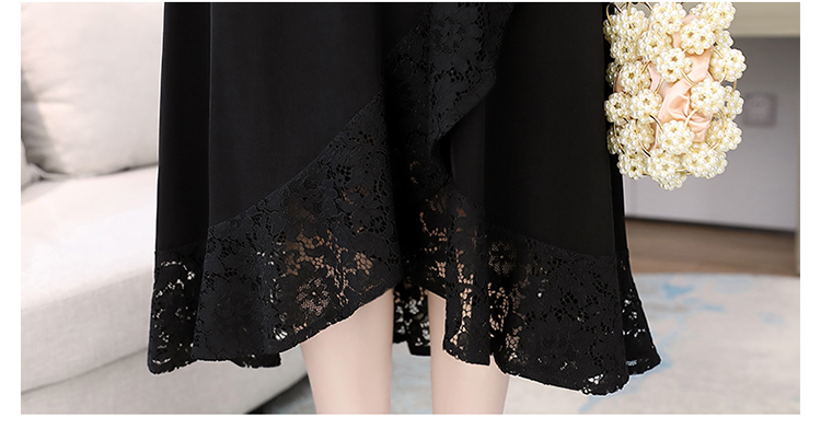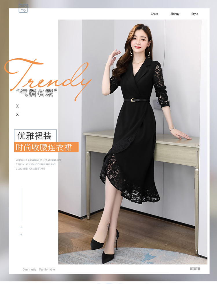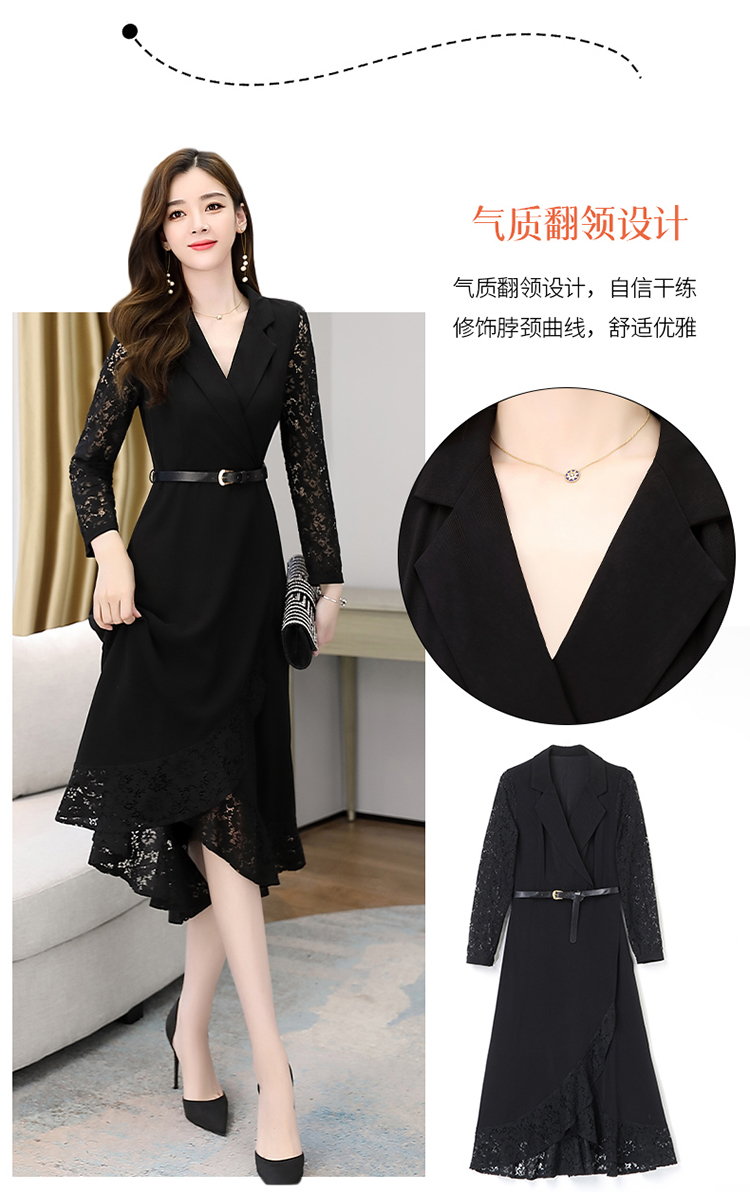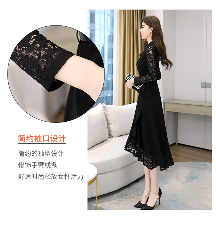 WZNH-GJC2927秋季新款女装时尚气质修身荷叶边蕾丝拼接连衣裙