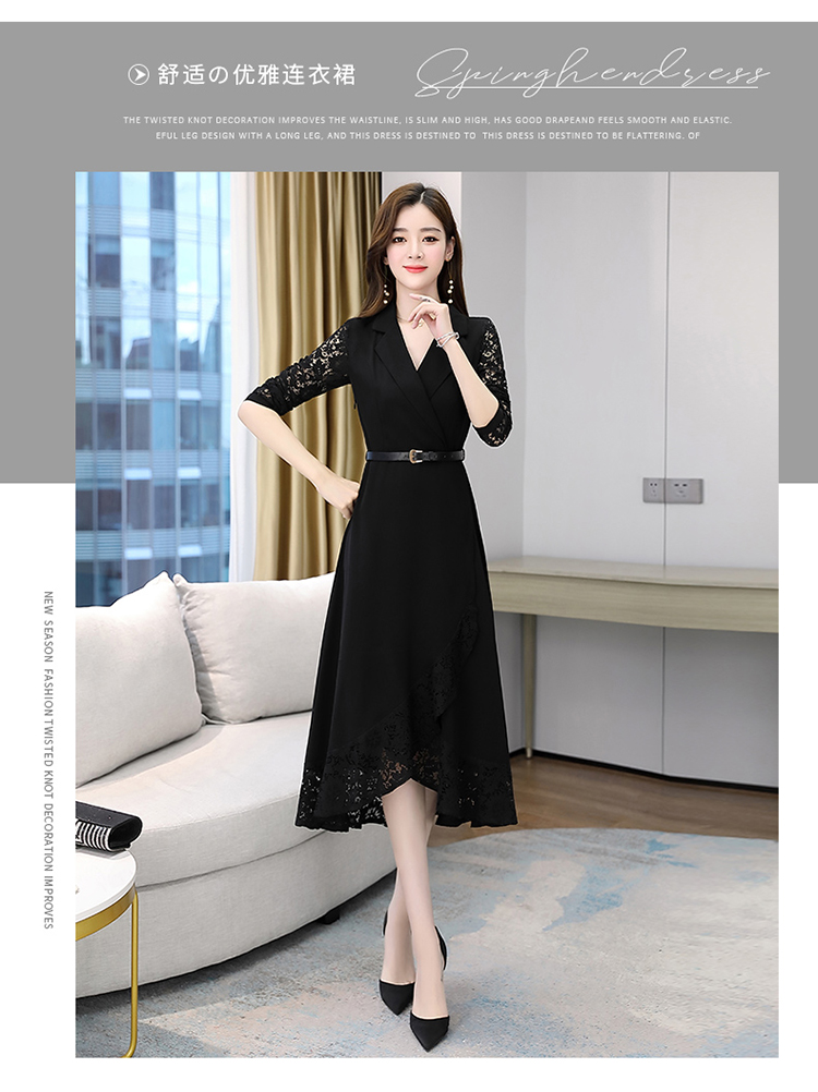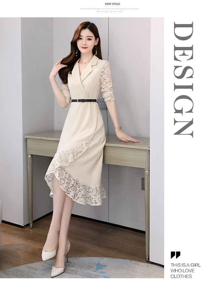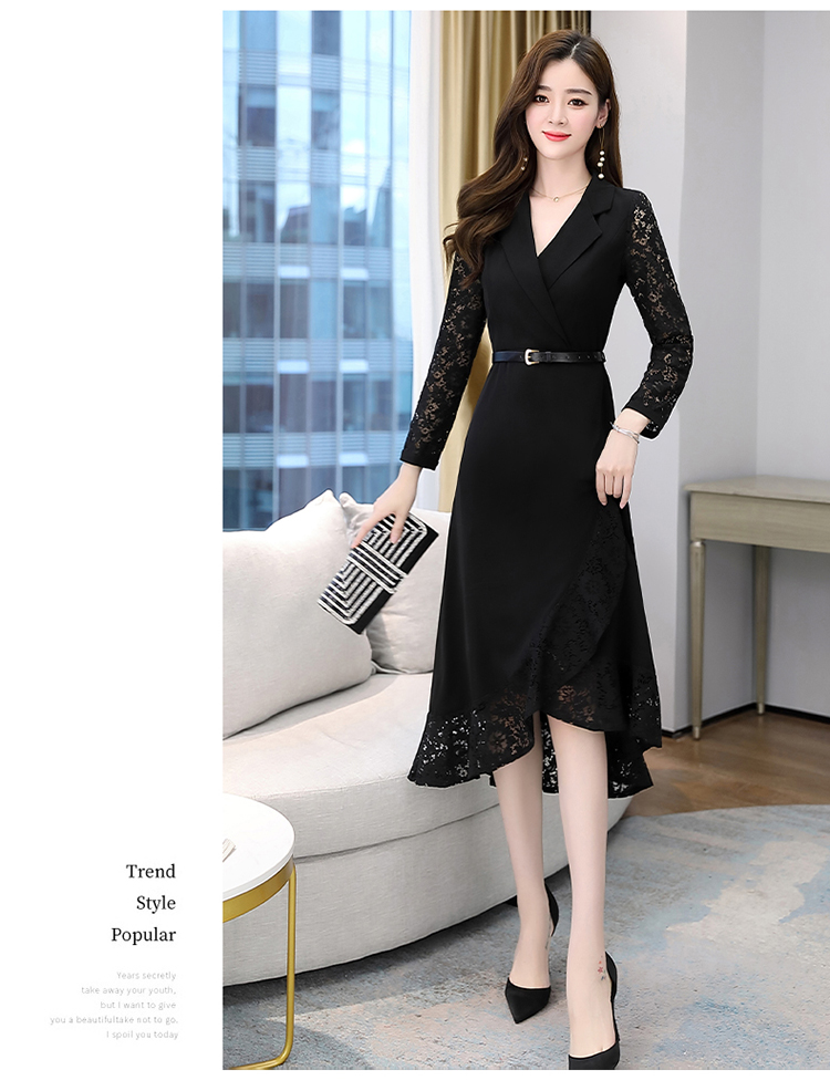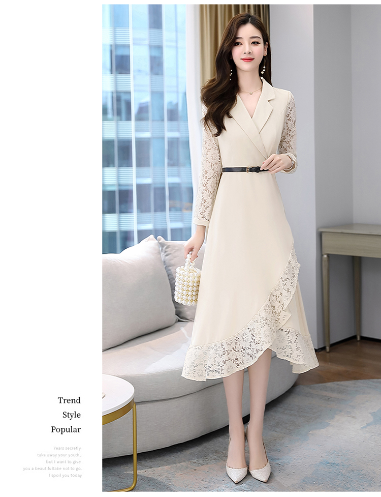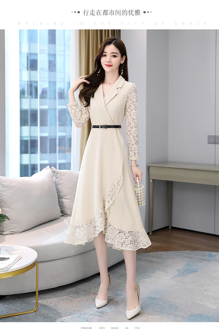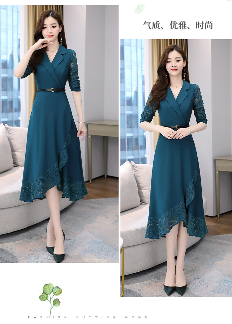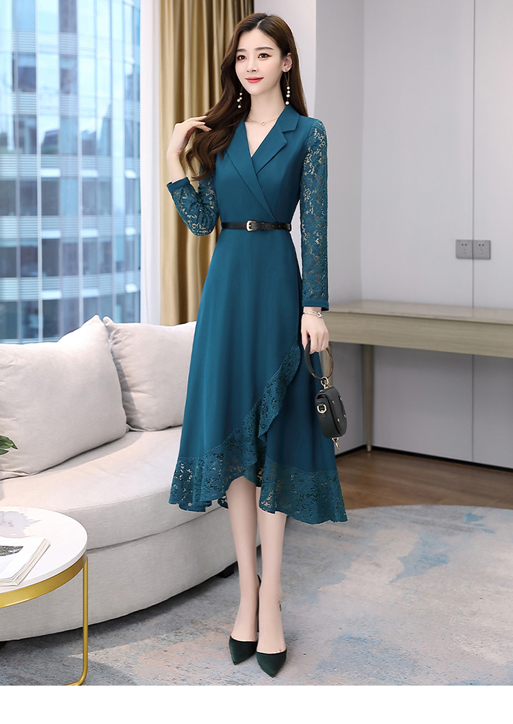 WZNH-GJC2927秋季新款女装时尚气质修身荷叶边蕾丝拼接连衣裙