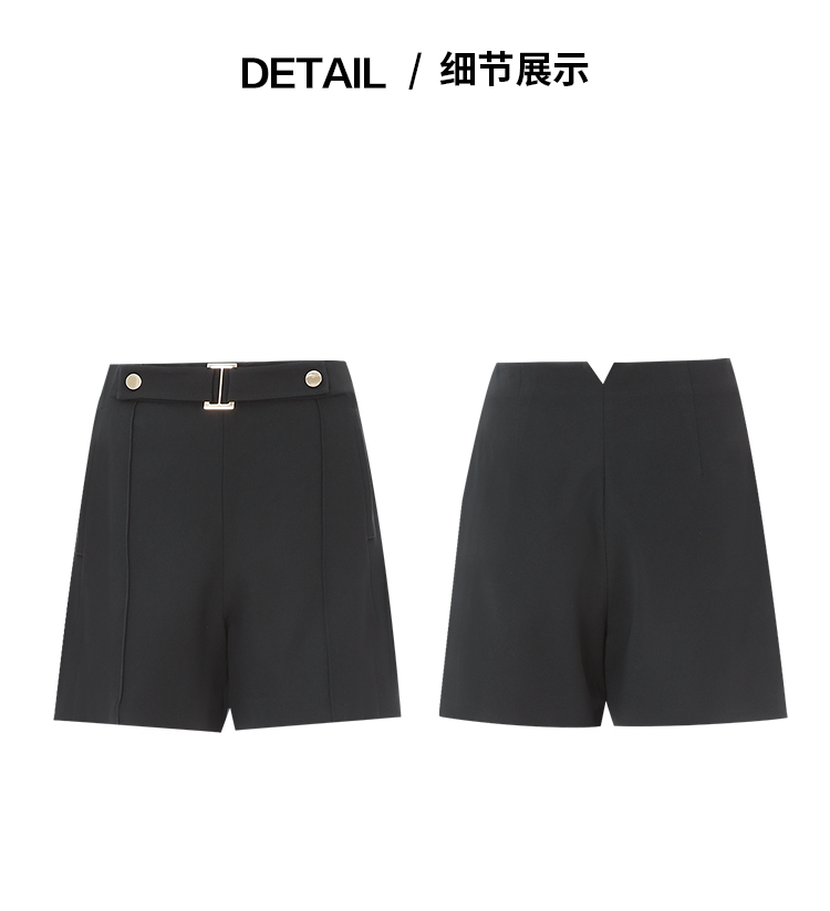 EITIE爱特爱夏季新款简约高腰显瘦黑色直筒休闲舒适短裤7805503