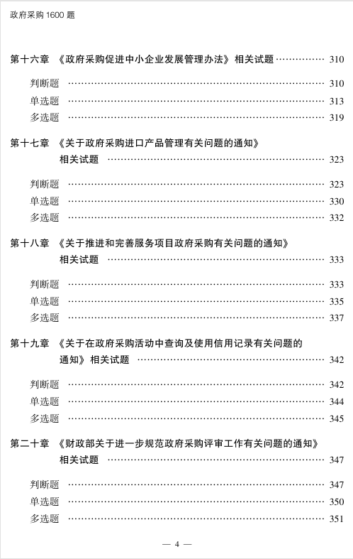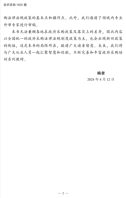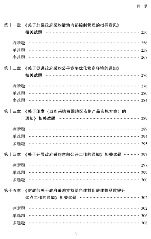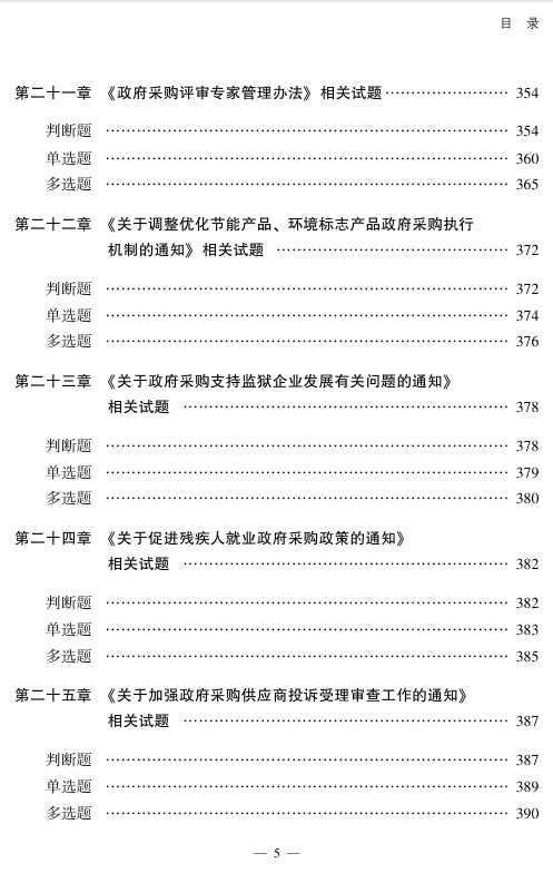 本书是政府采购培训丛书之一。本书所列试题涉及政府采购法律、法规、政策的辨析、实施等方面,由政府采购专业部门或业内专家进行权威解答以及分析阐述。全书以试题答案所依据的政府采购法律、法规、规范性文件划分章节,为每个试题附注难易程度标签,十分方便读者根据实践情况进行针对性练习,提高专业能力。