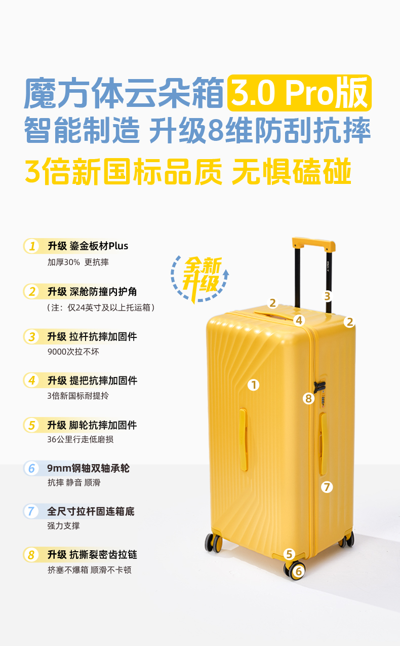 【青少年第一只行李箱】卡拉羊26年新款魔方体云朵箱纯PC拉杆箱CX8138