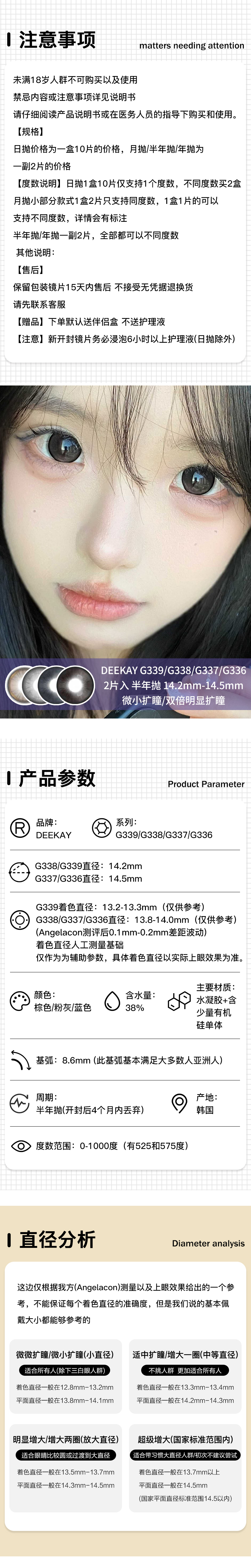 DEEKAY / G339/G338/G337/G336 / 2片入 / 美瞳半年抛 / 14.2mm-14.5mm / 适中扩瞳/双倍明显扩瞳