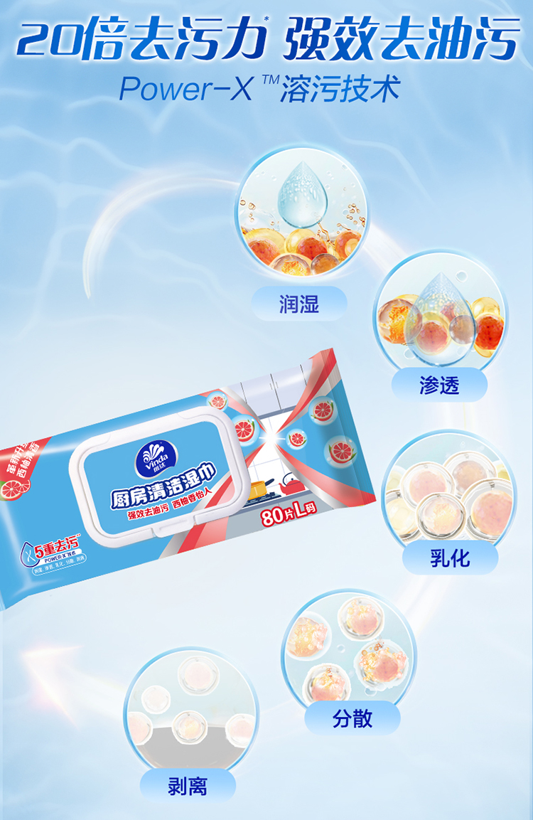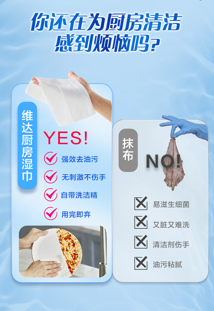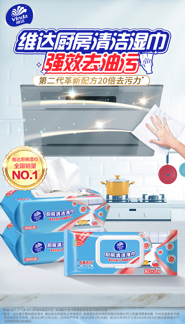 【官方包邮】维达厨房清洁湿巾70克加厚60片单包西柚香