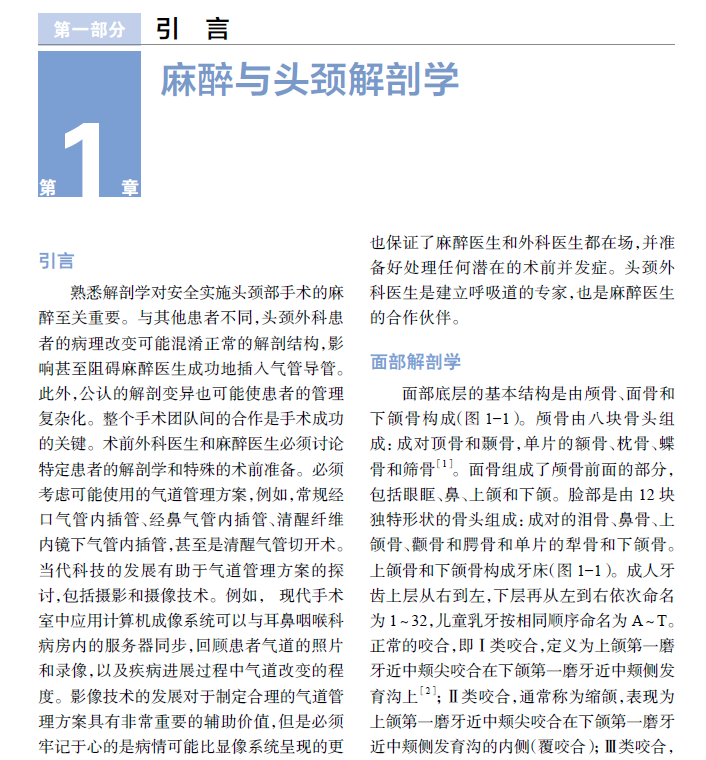 本书旨在提供目前五官科麻醉领域中较为详尽的临床证据。如果缺乏确凿的科学依据(遗憾的是,这种情况在很多医学以及手术领域中十分常见),书中会提供有关处理这些复杂手术操作的专家意见。本书相关章节中也会介绍五官科手术领域中的一些新技术,比如喉成形术、下颌及面部重建术以及面部移植术等。与此同时,书中也略去了一些极其罕见的手术操作,比如喉气管移植术。另外,可以由五官科医师、肺科医师或胸科医师来完成的支气管镜手术,其范畴正在不断扩大,有关这些前沿内容的讨论通常只能在像本书这样专业性很强的专科书籍中才篦查阅到。