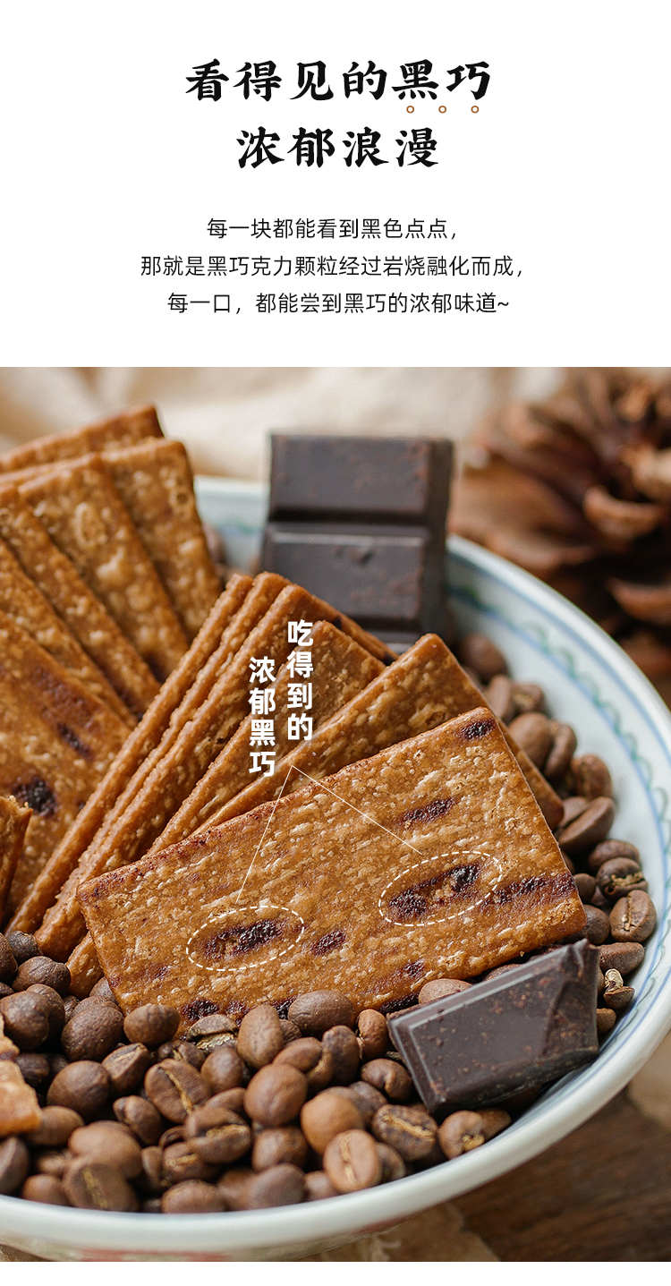 0反式脂肪酸 酥脆可口 | 一方云拾岩烧咖啡黑巧/八黑芝士薄脆饼干 下午茶点心休闲零食 两种口味 120g*3/4/6/8