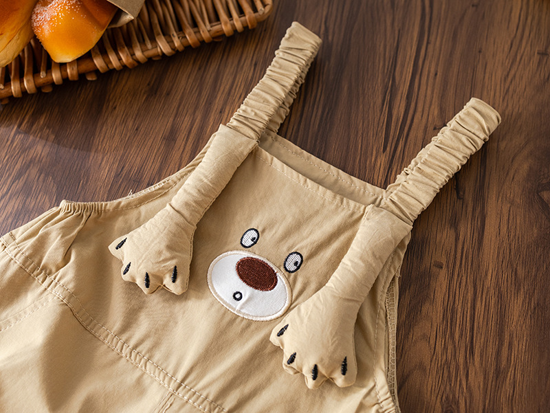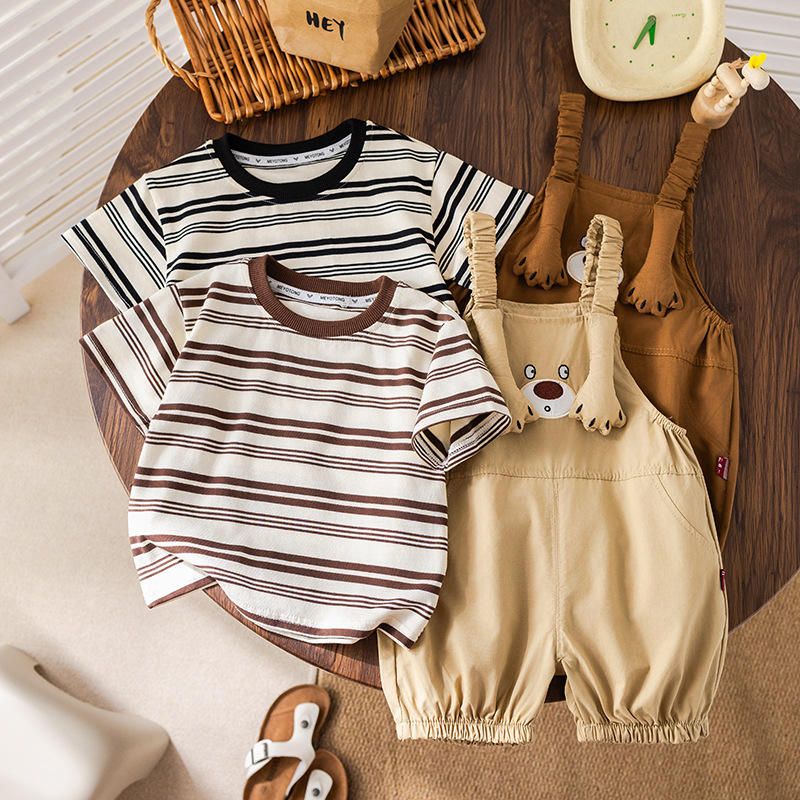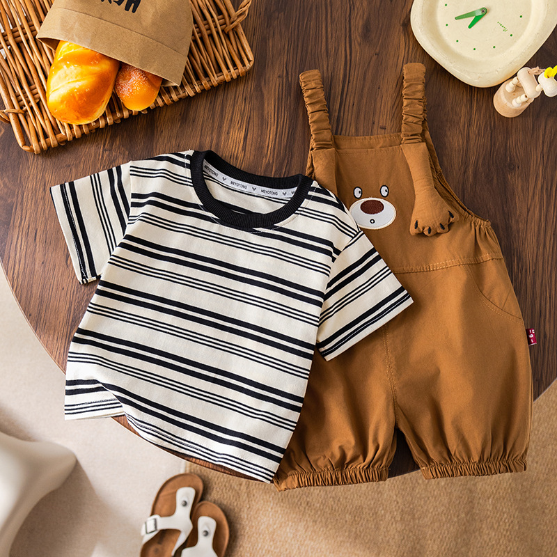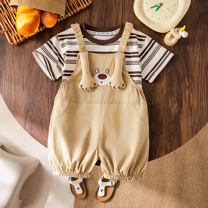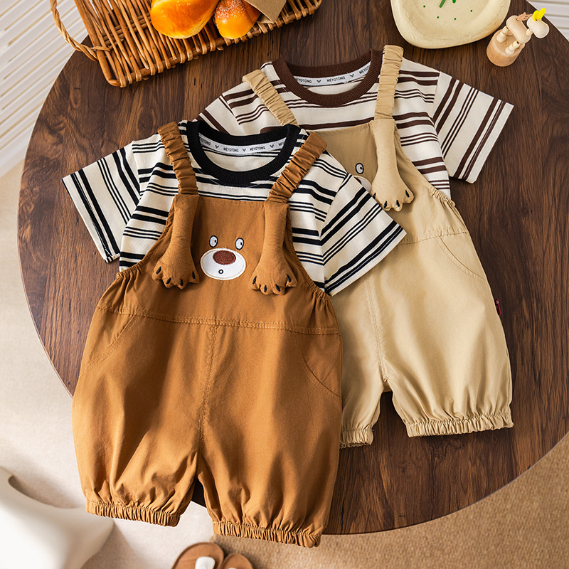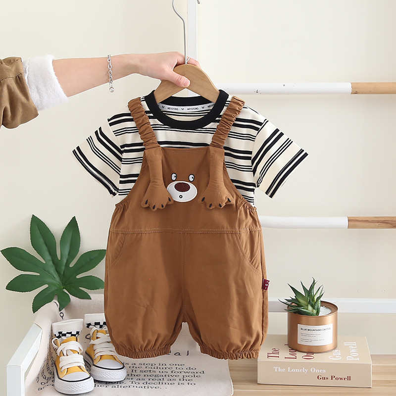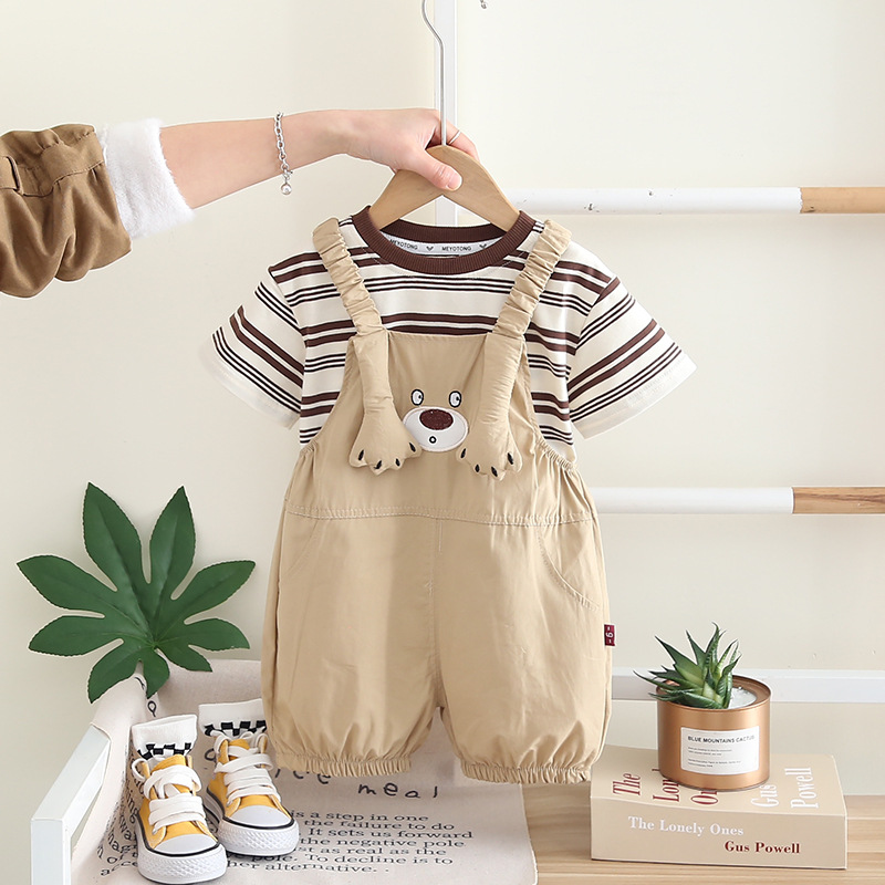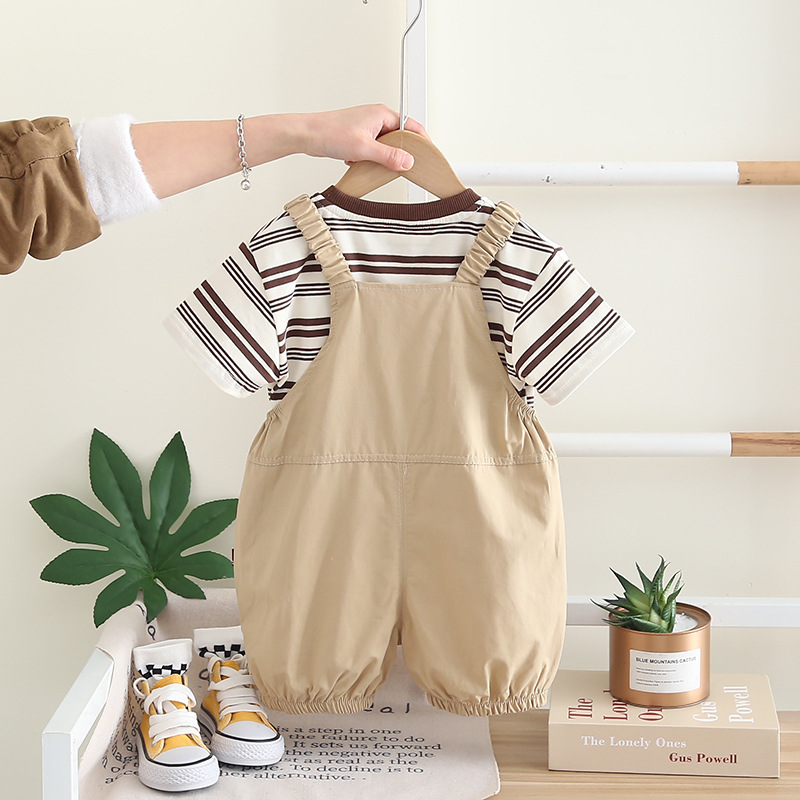【新款宝宝背带裤套装,时尚潮娃必备!】宝宝背带裤套装夏款 男童短袖两件套 1-3岁潮婴儿衣服 儿童洋气童装-QQ