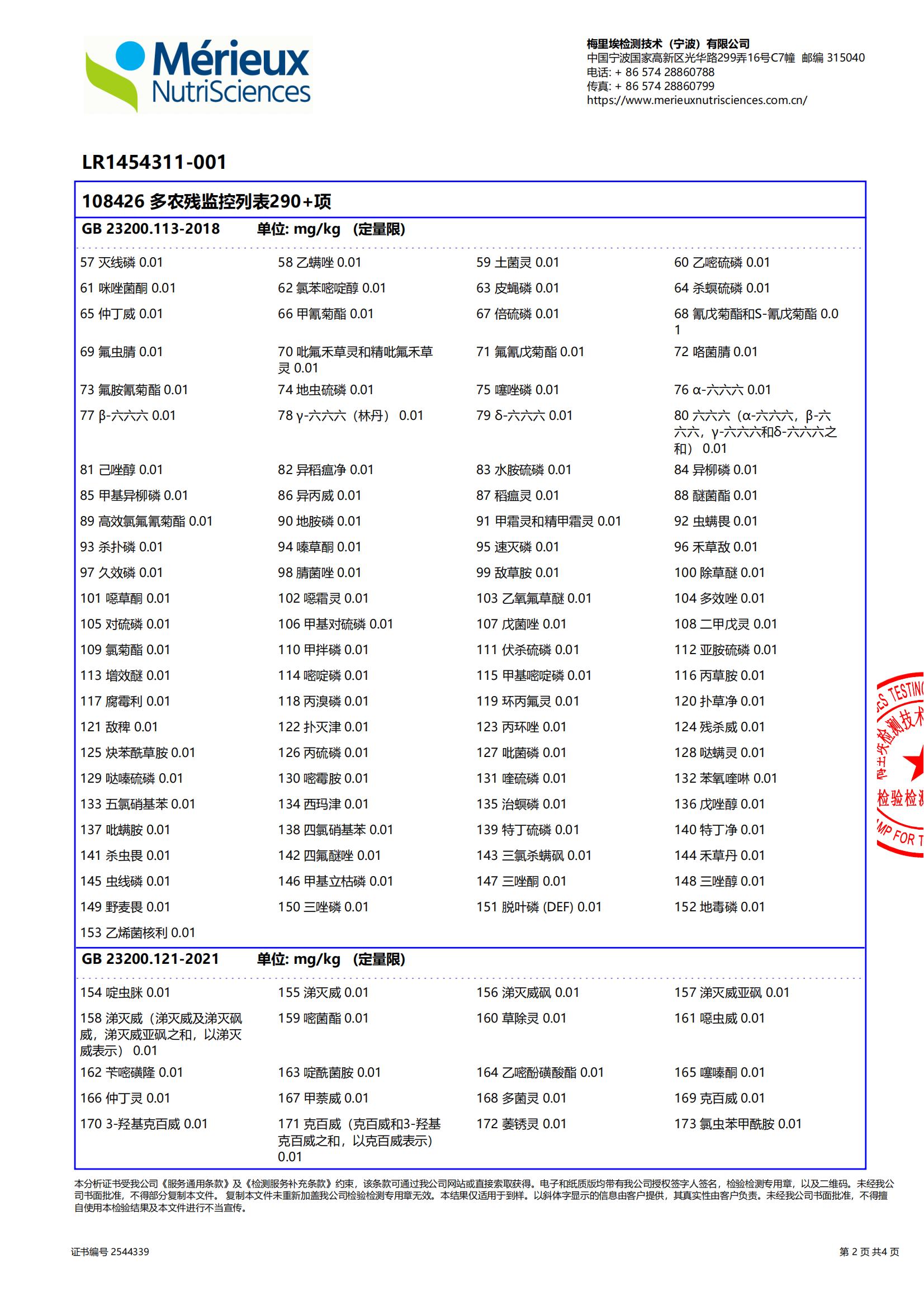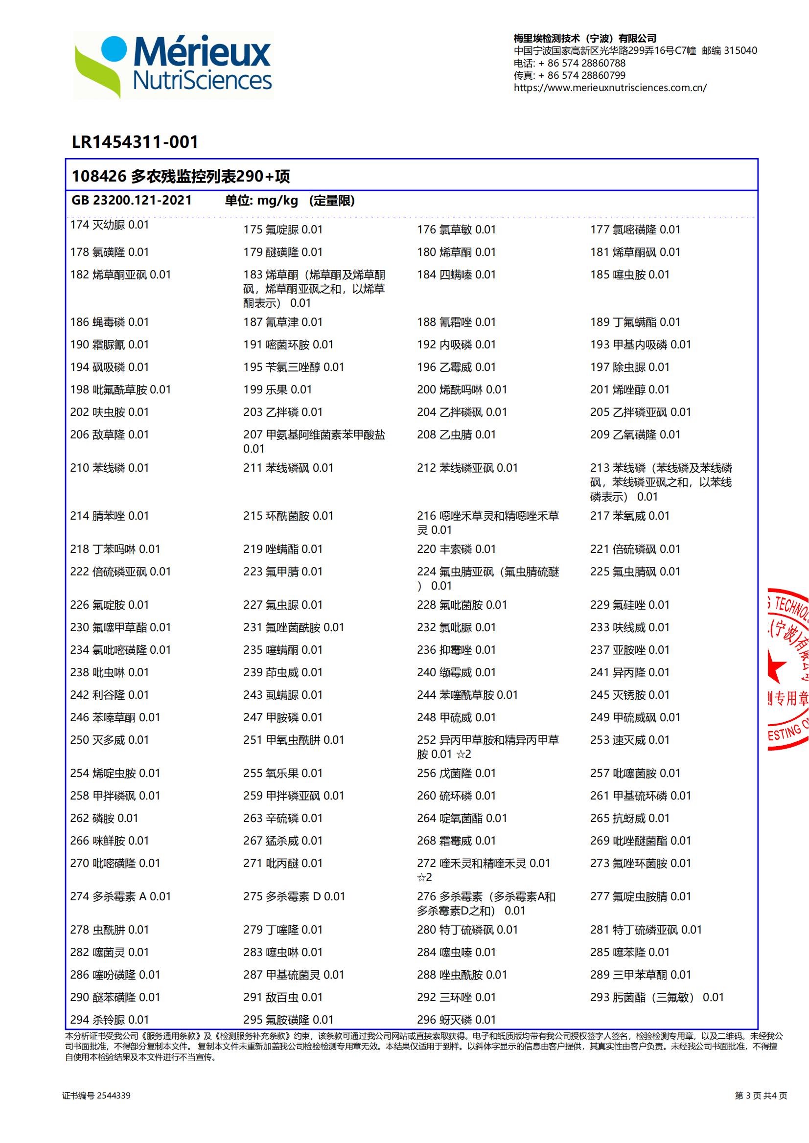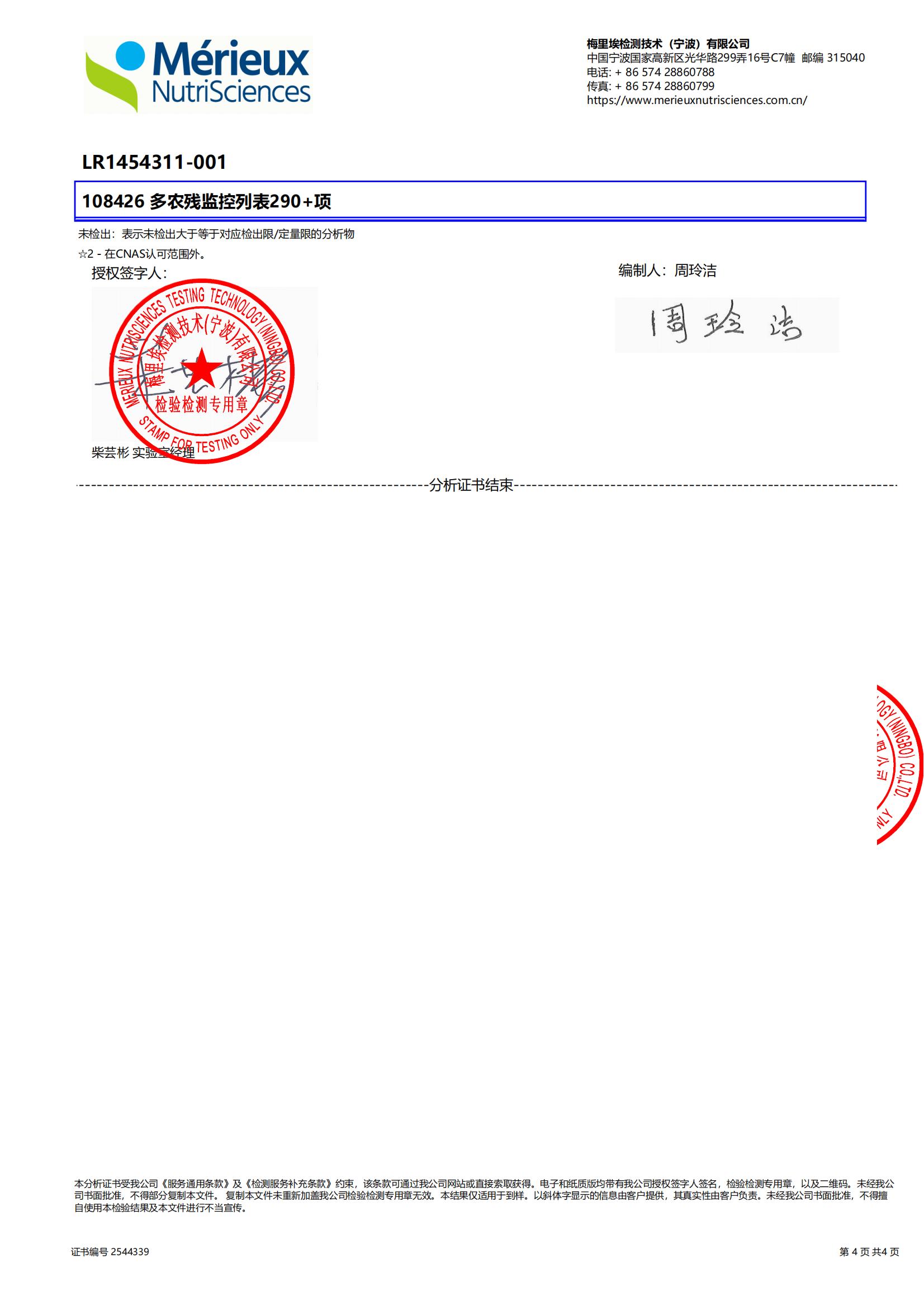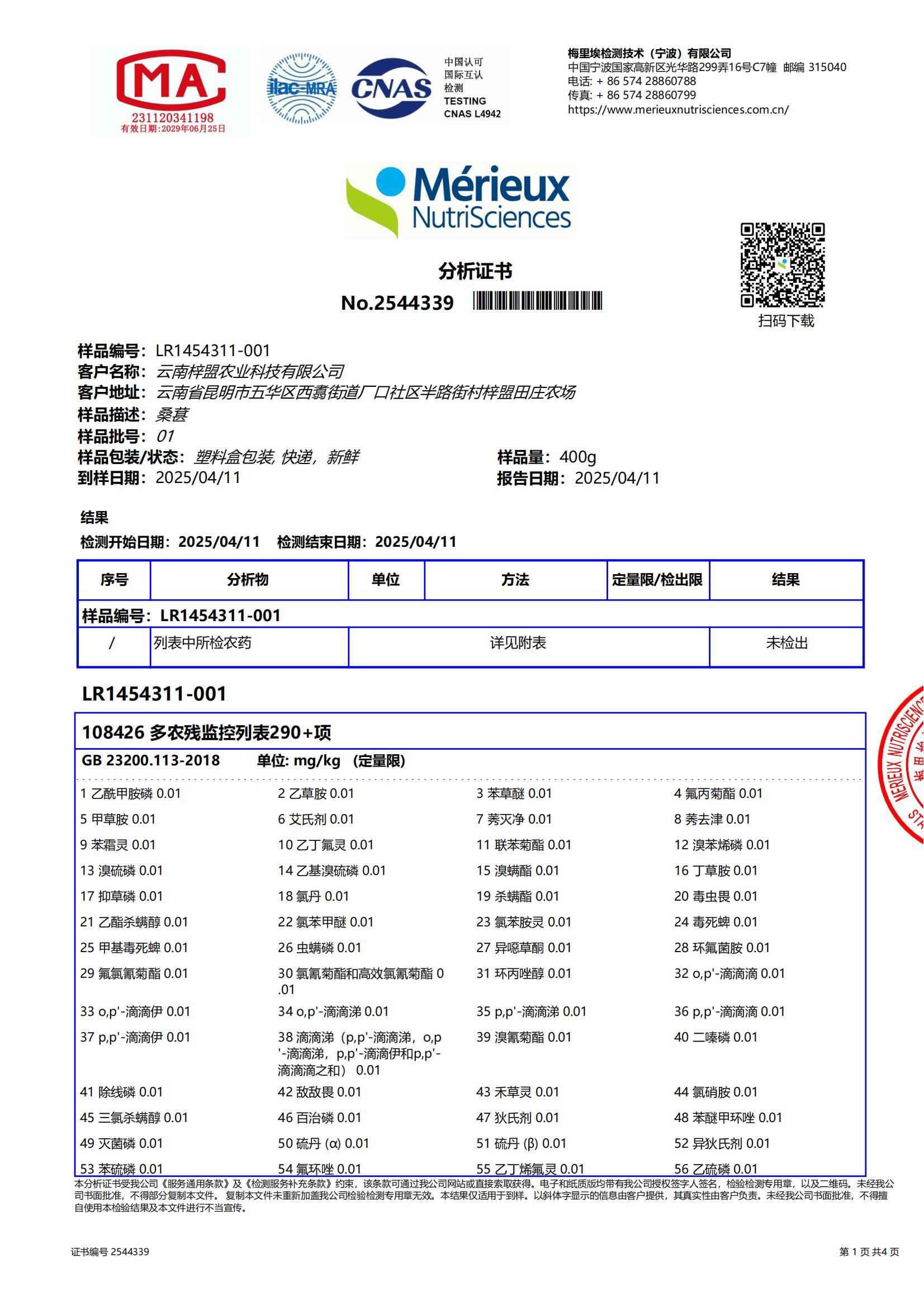 2025年5月桑葚原汁,做了290多项农残、激素、除草剂的检测,全部零检出。