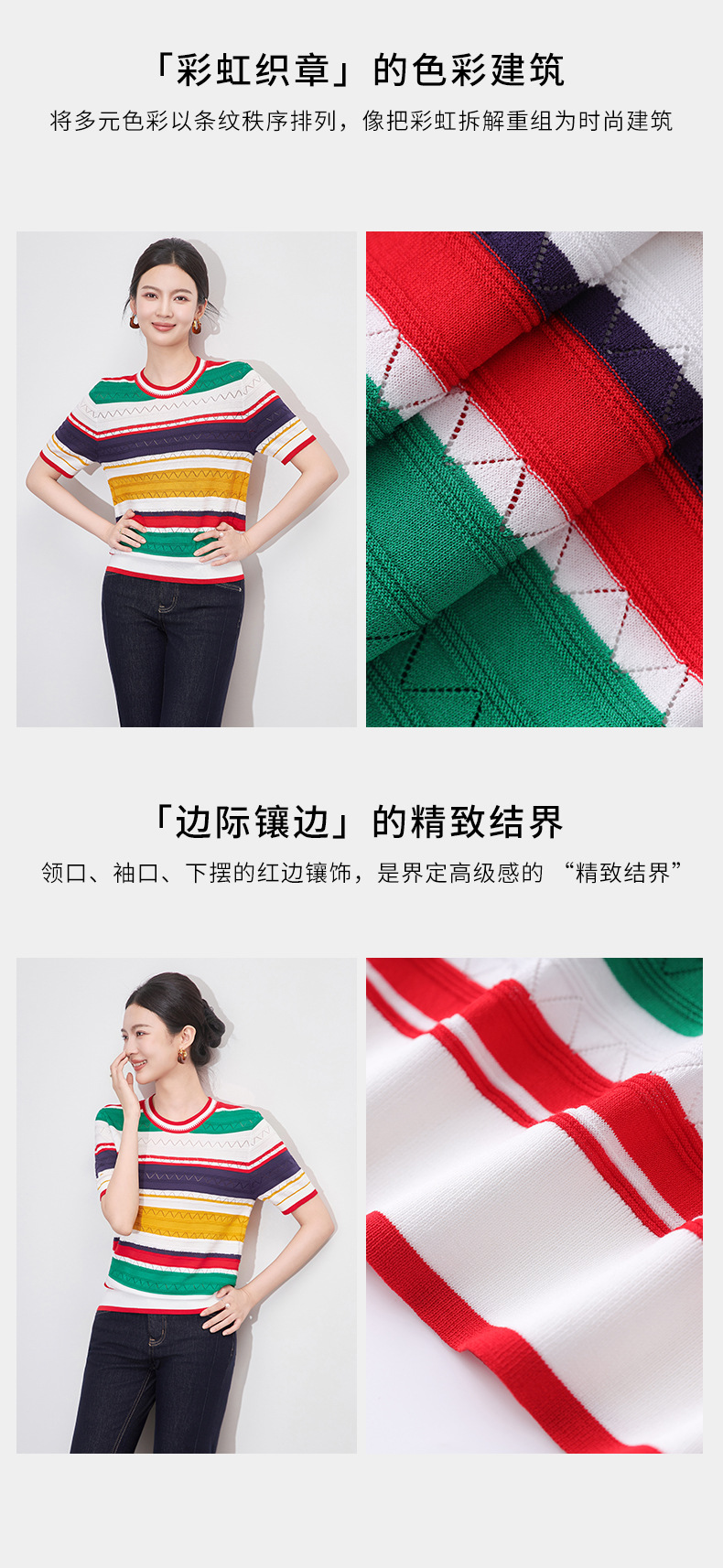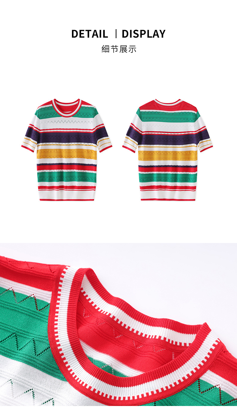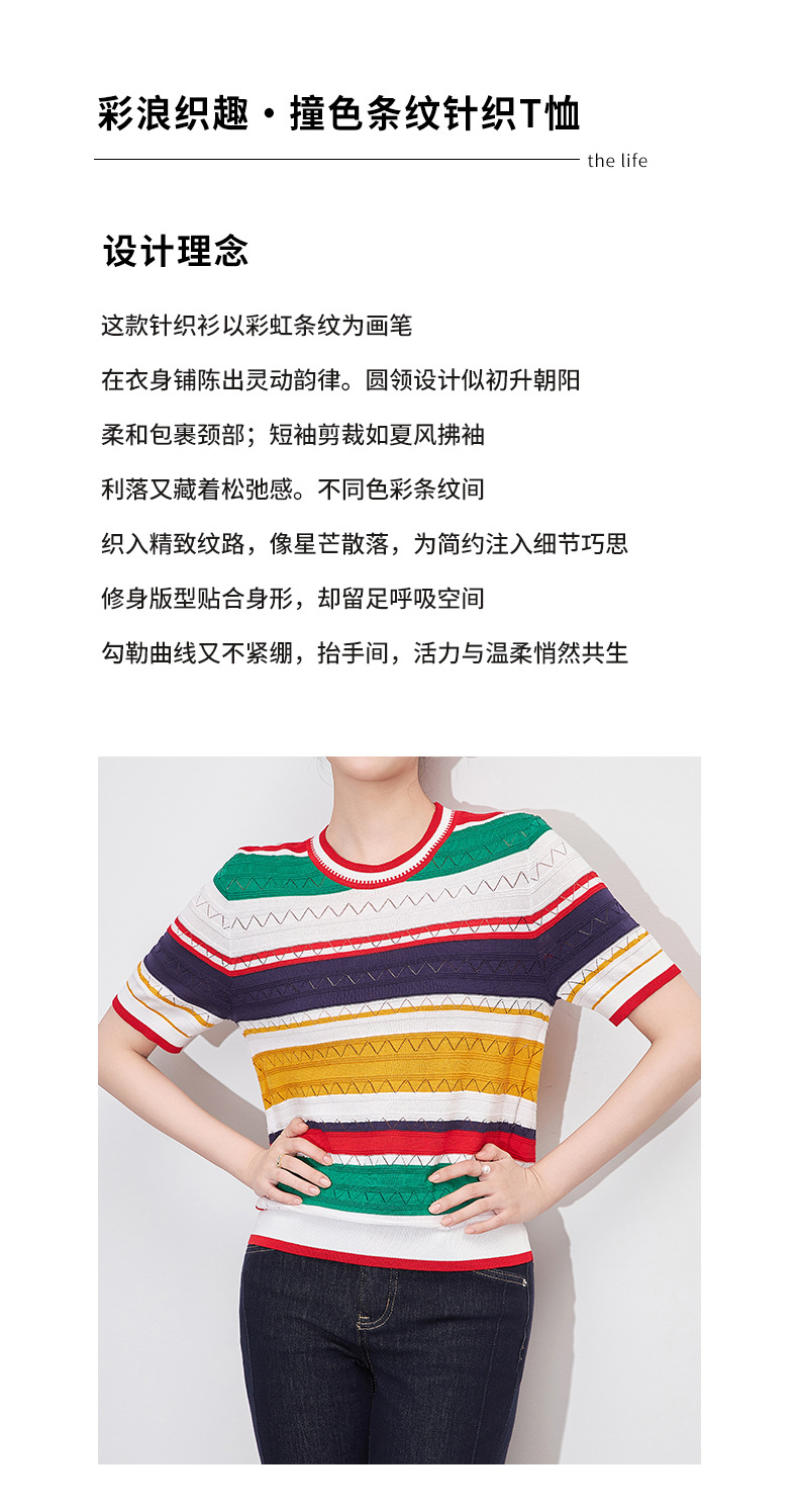 「高货wl」全新升级【铂金会员220/天猫299/差价79】(05204)洛诗琳撞色条纹T恤2025夏季立体波浪纹超细兰精天丝上衣