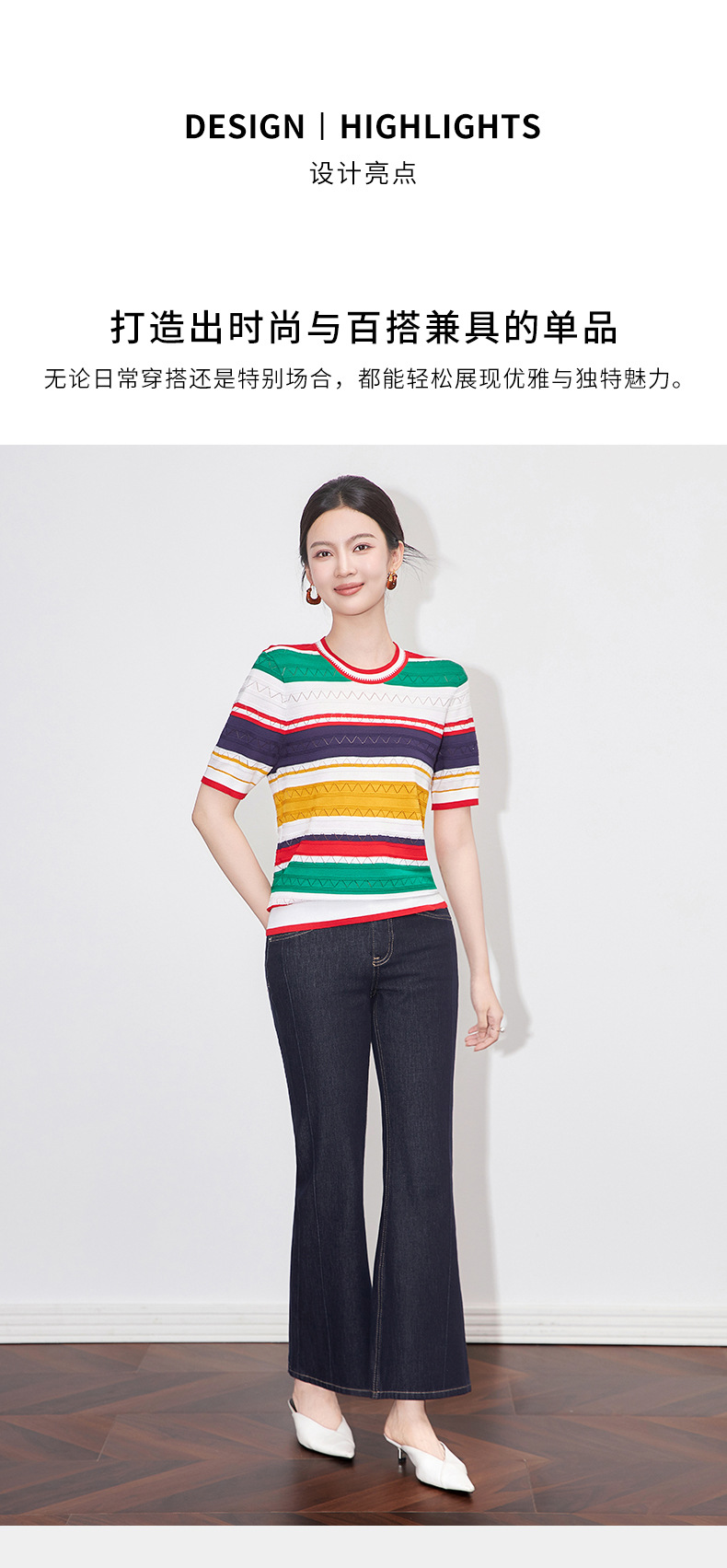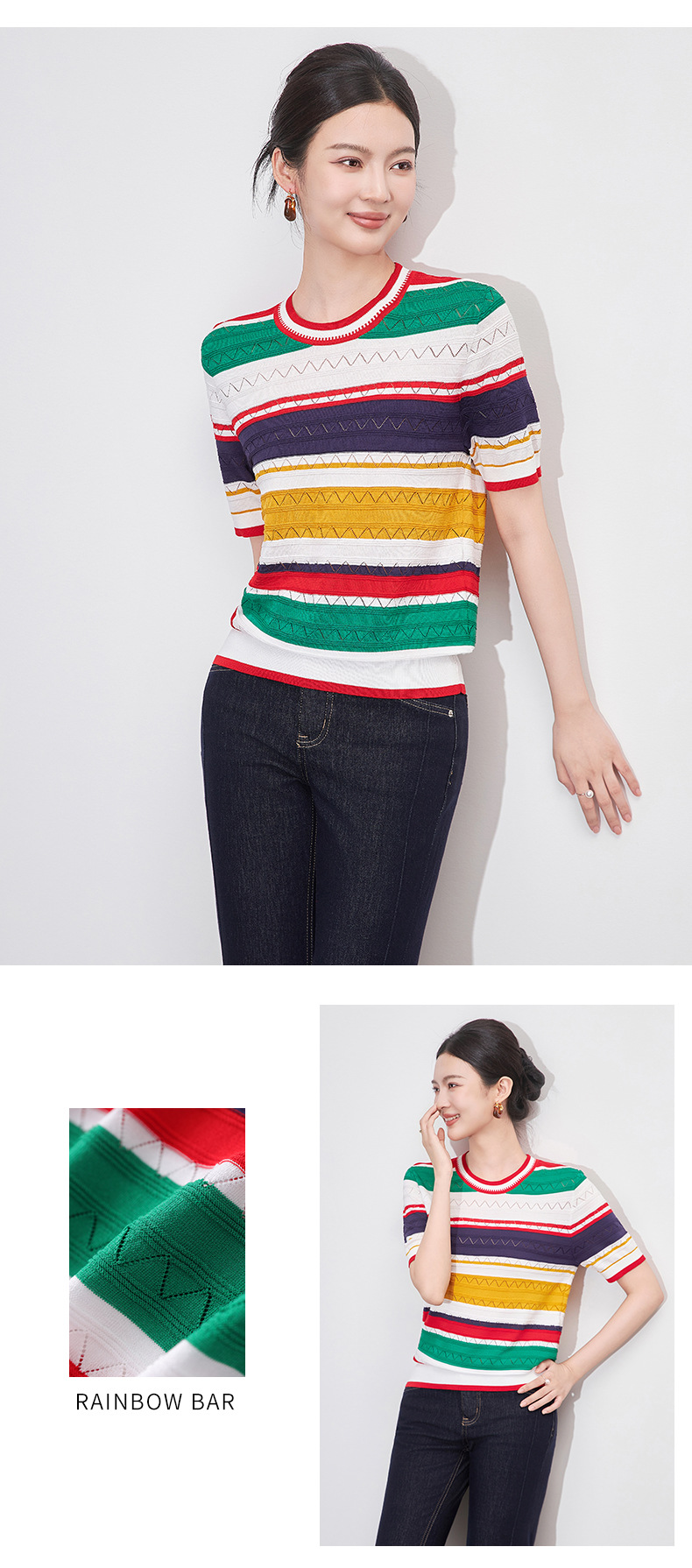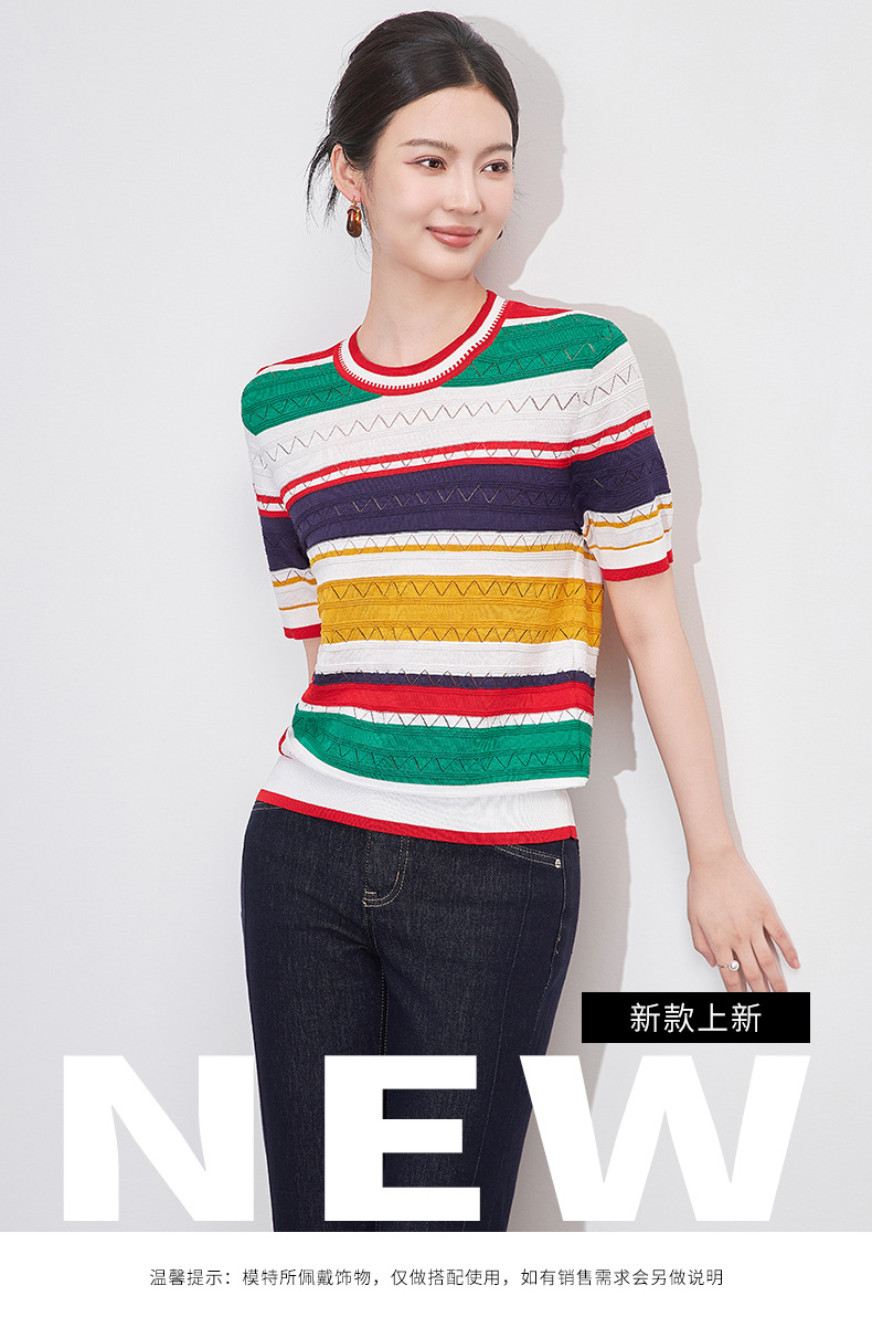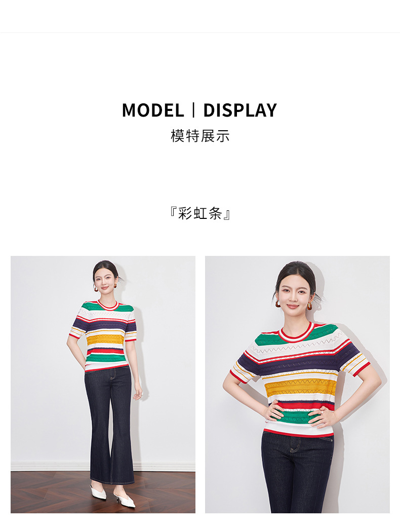 「高货wl」全新升级【铂金会员220/天猫299/差价79】(05204)洛诗琳撞色条纹T恤2025夏季立体波浪纹超细兰精天丝上衣