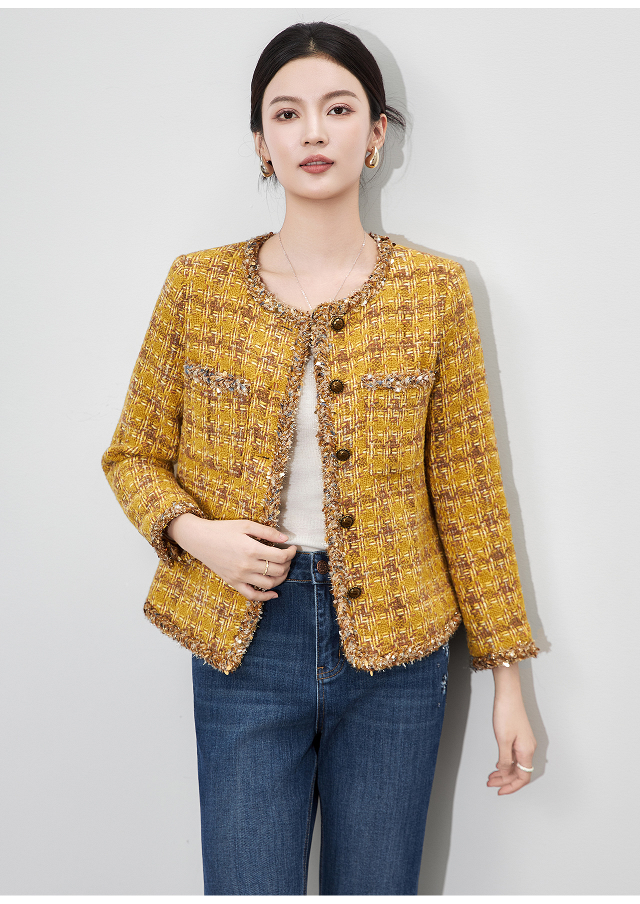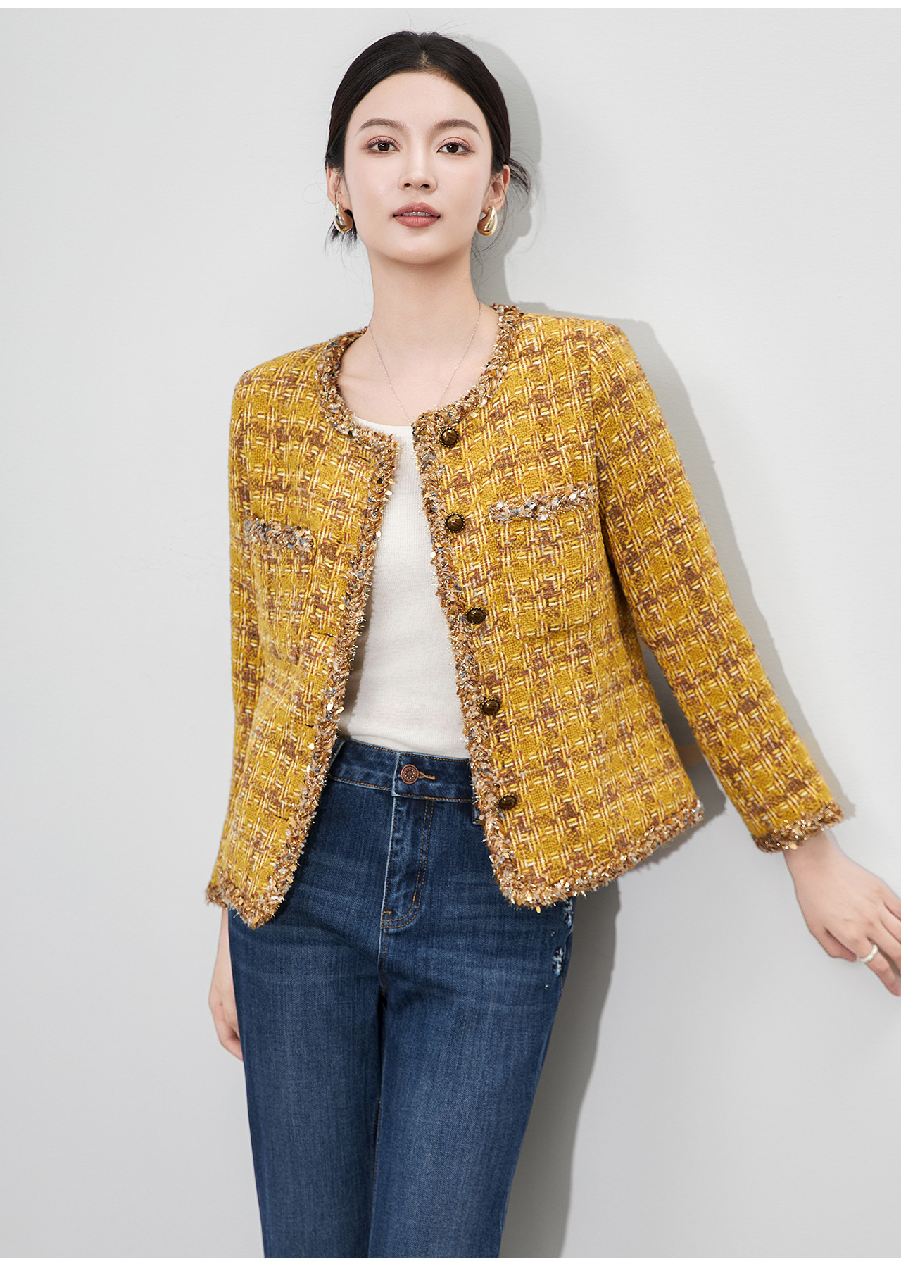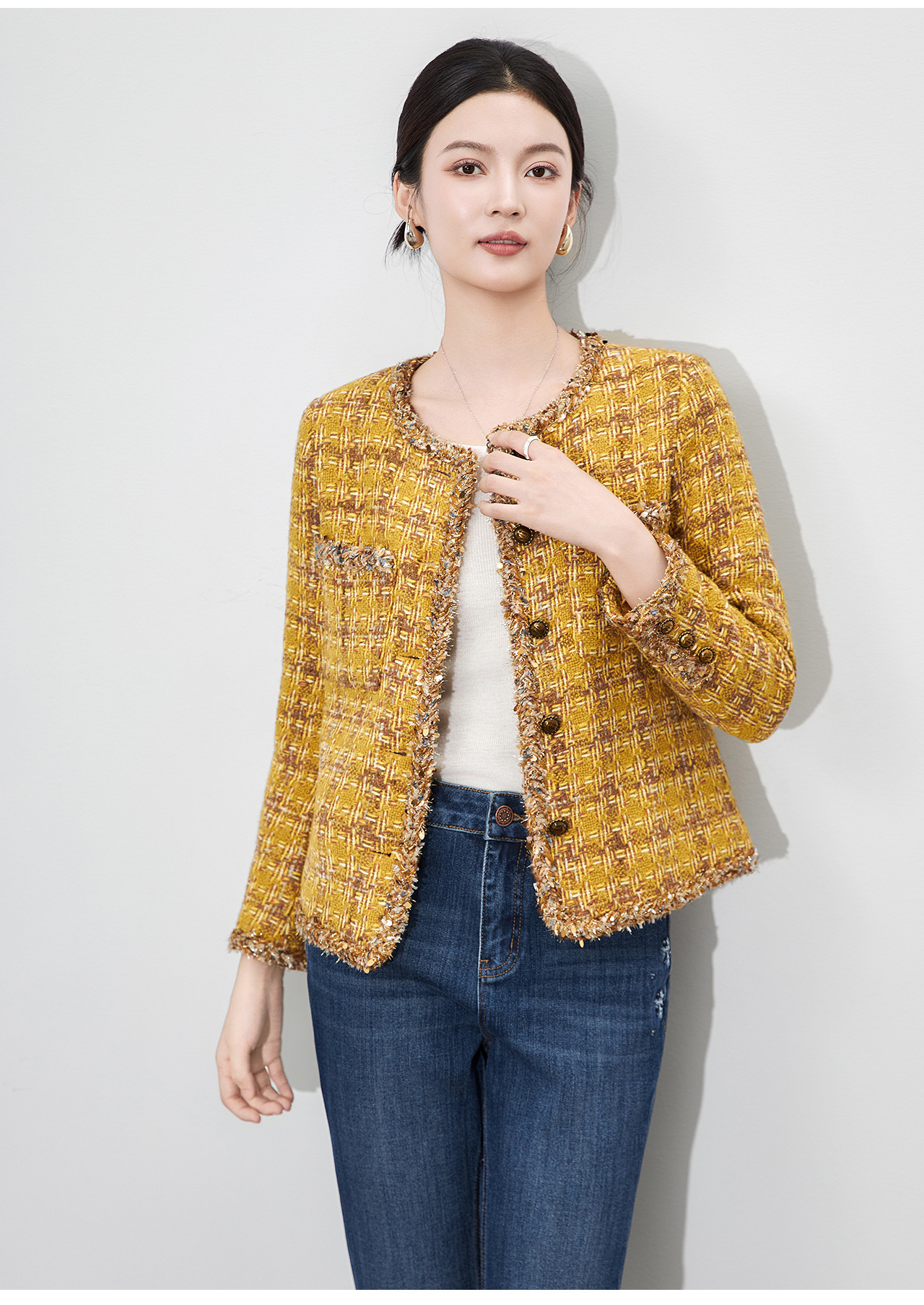 「高货wl」全新升级【铂金会员395/天猫529/差价134】(93422)洛诗琳轻奢小香风编织外套2025秋季气质粗花呢短款外套女