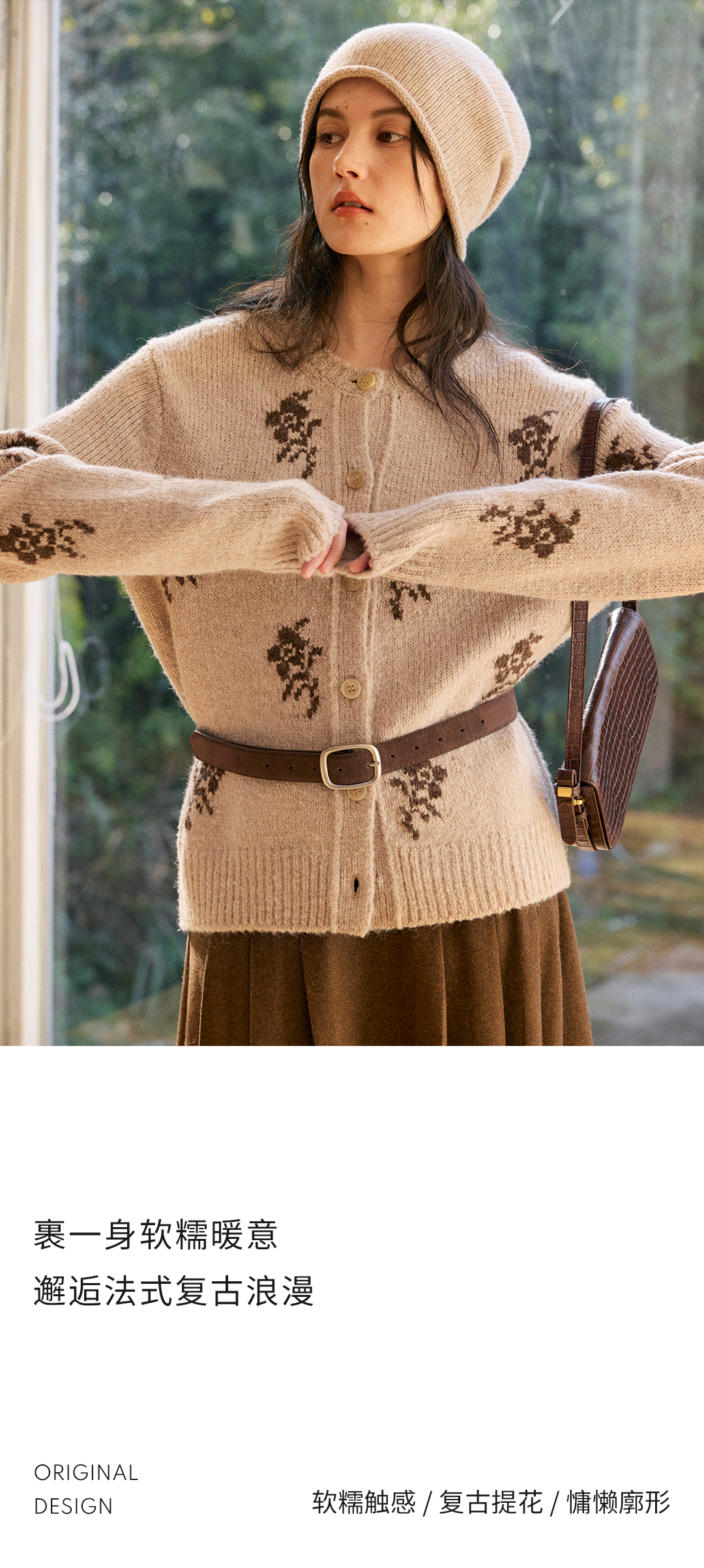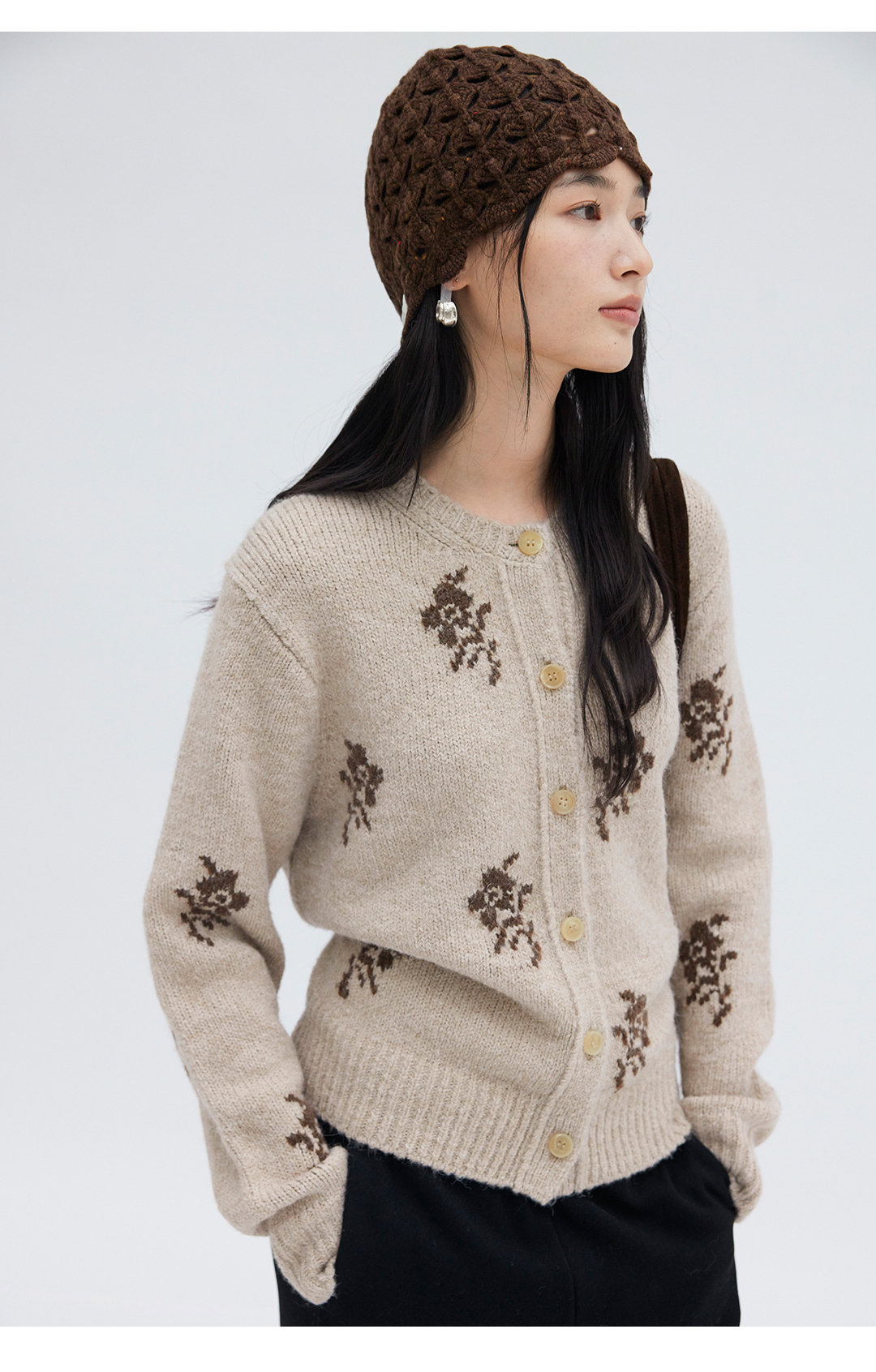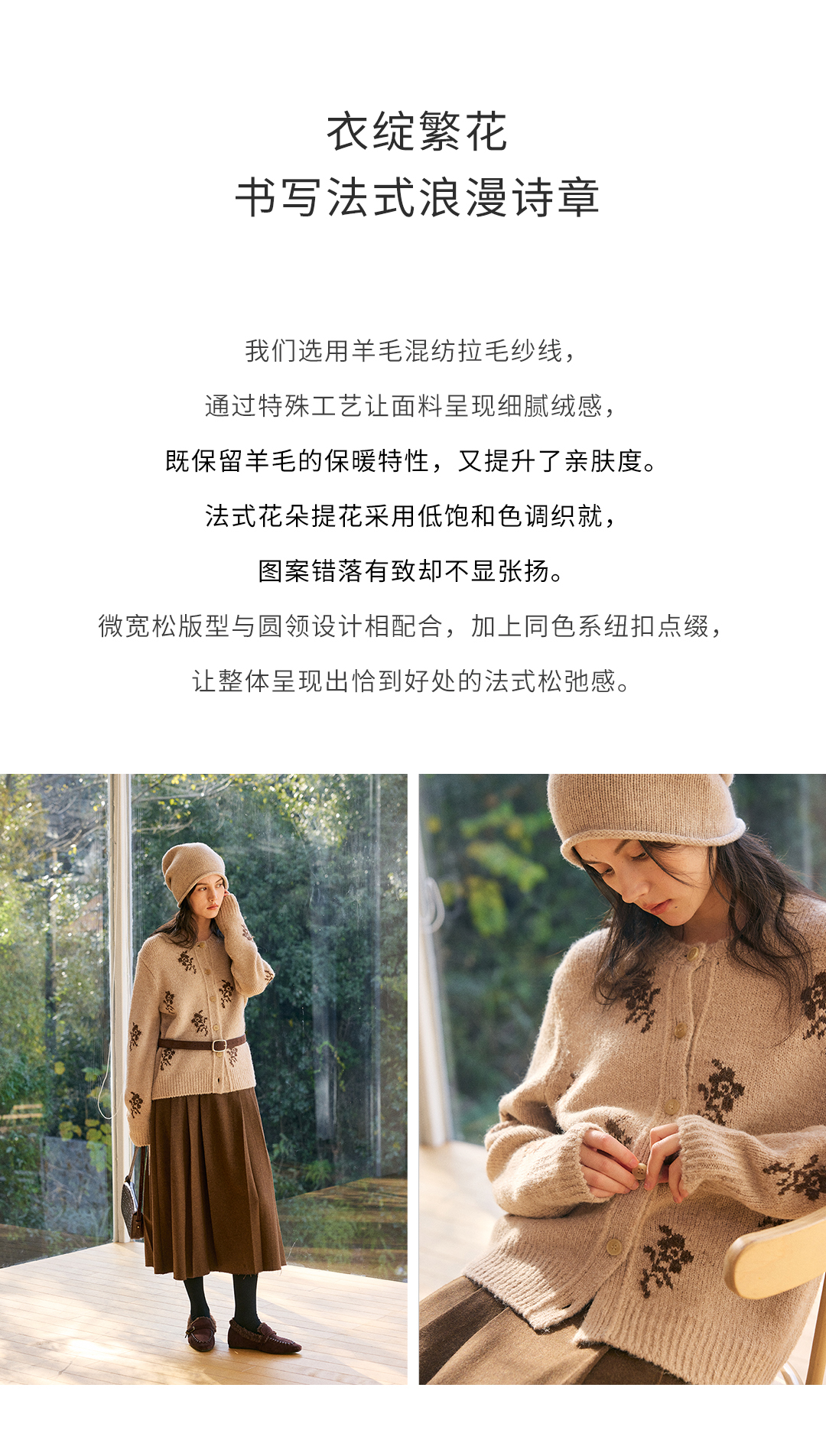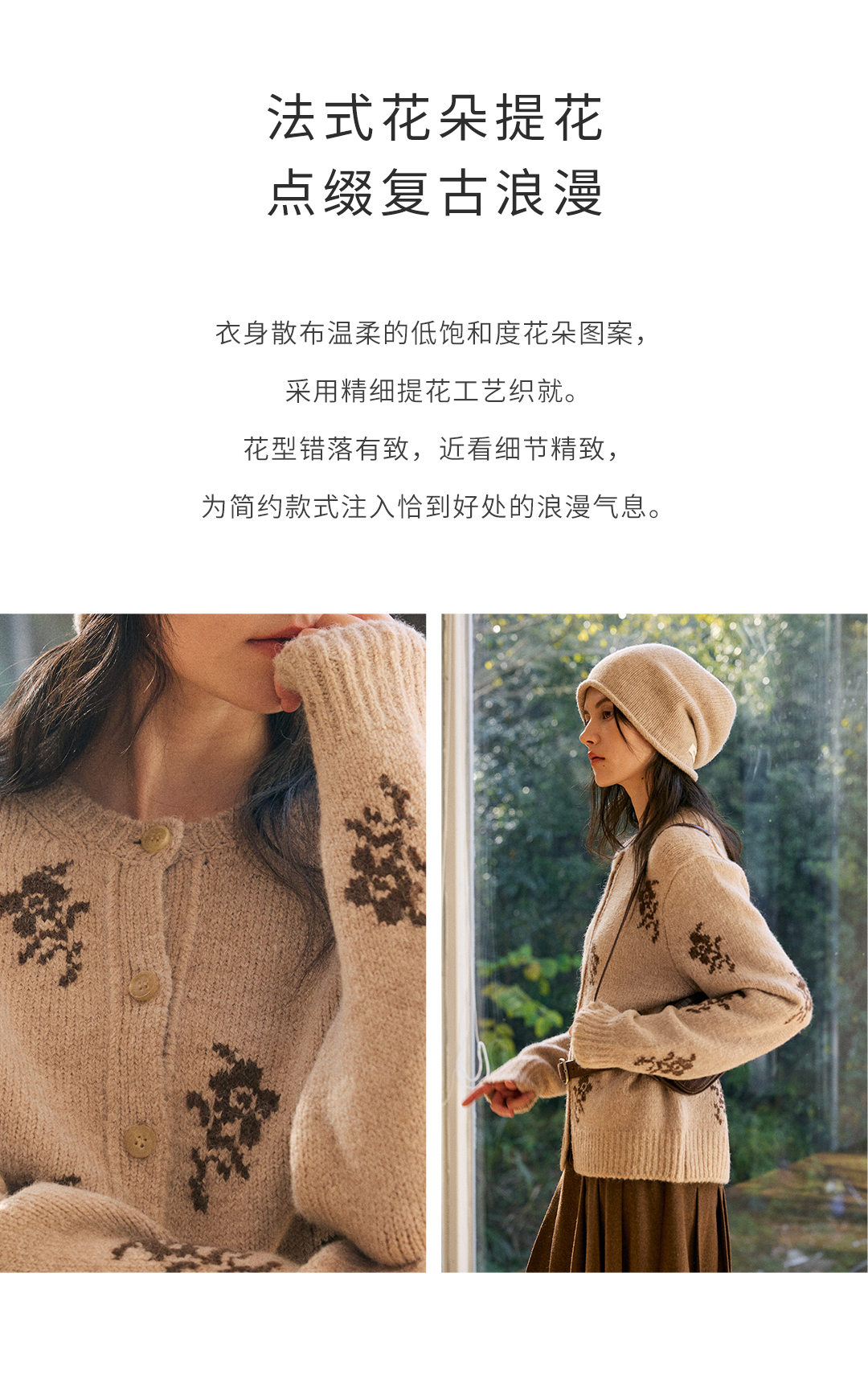 HeyDress花朵提花法式针织开衫