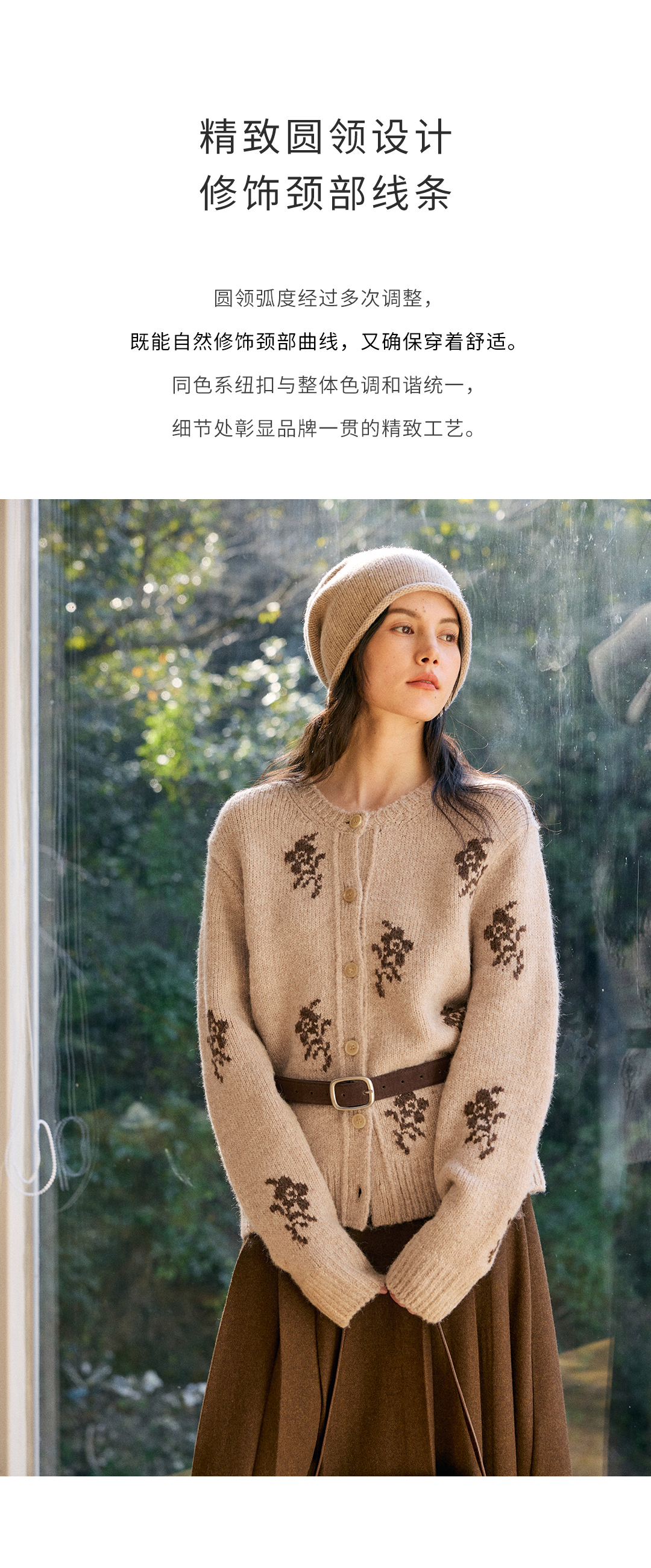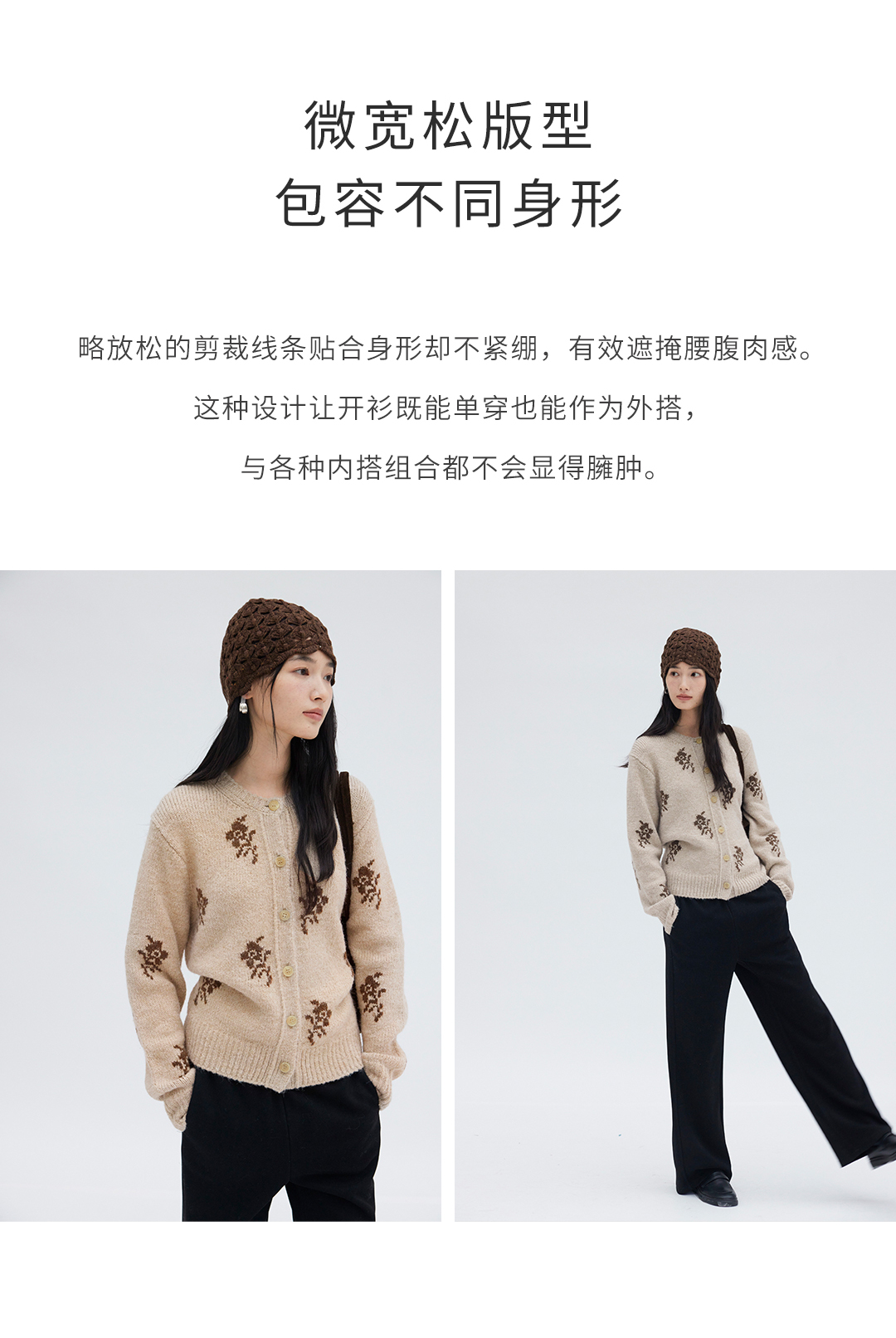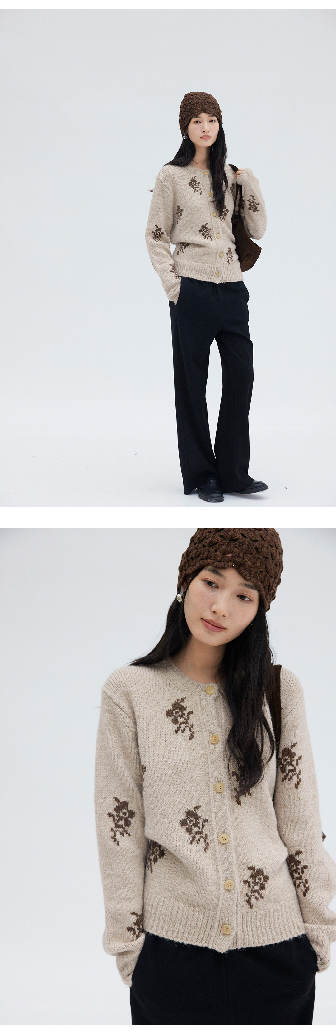 HeyDress花朵提花法式针织开衫