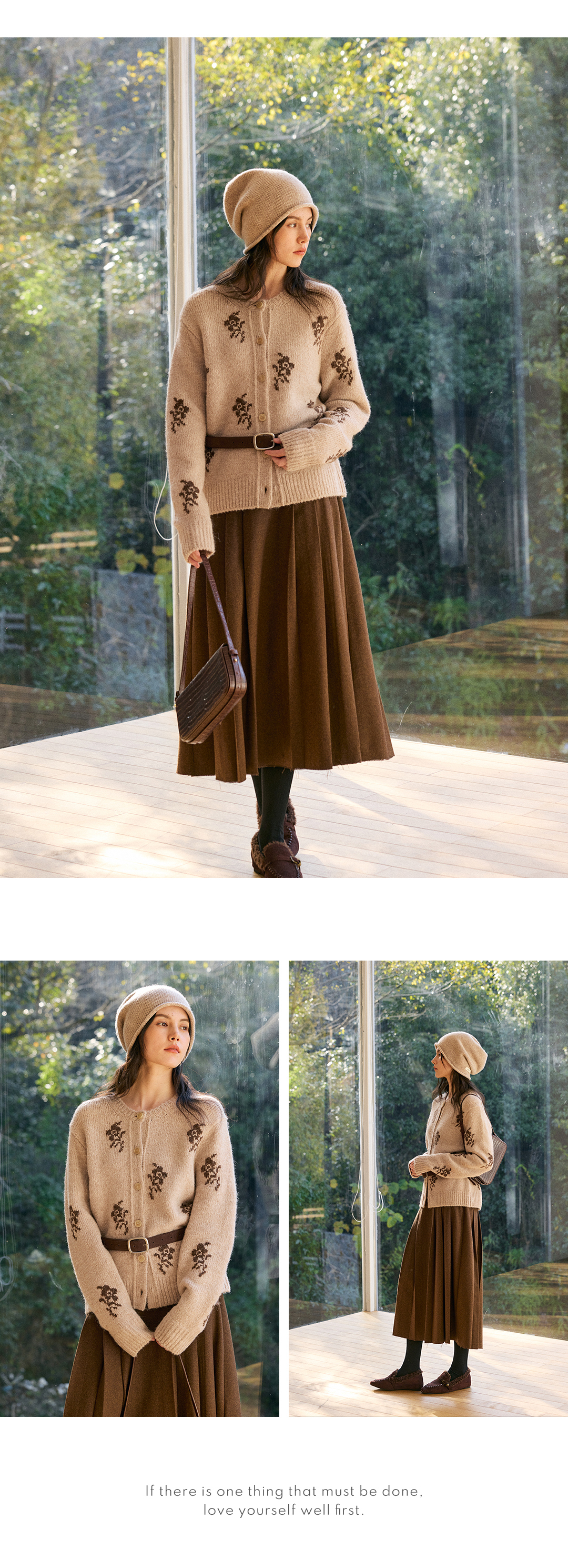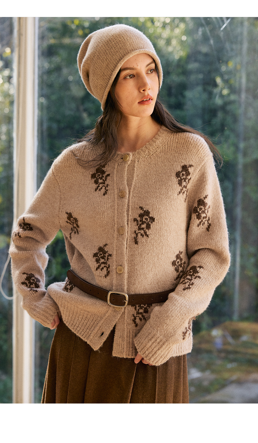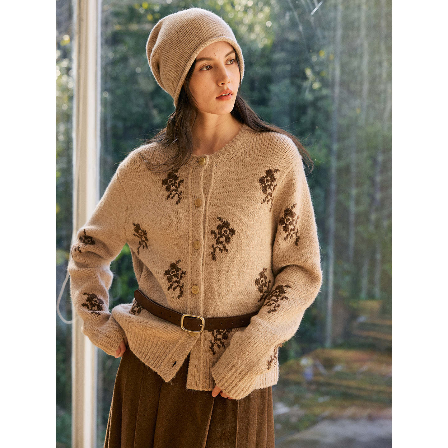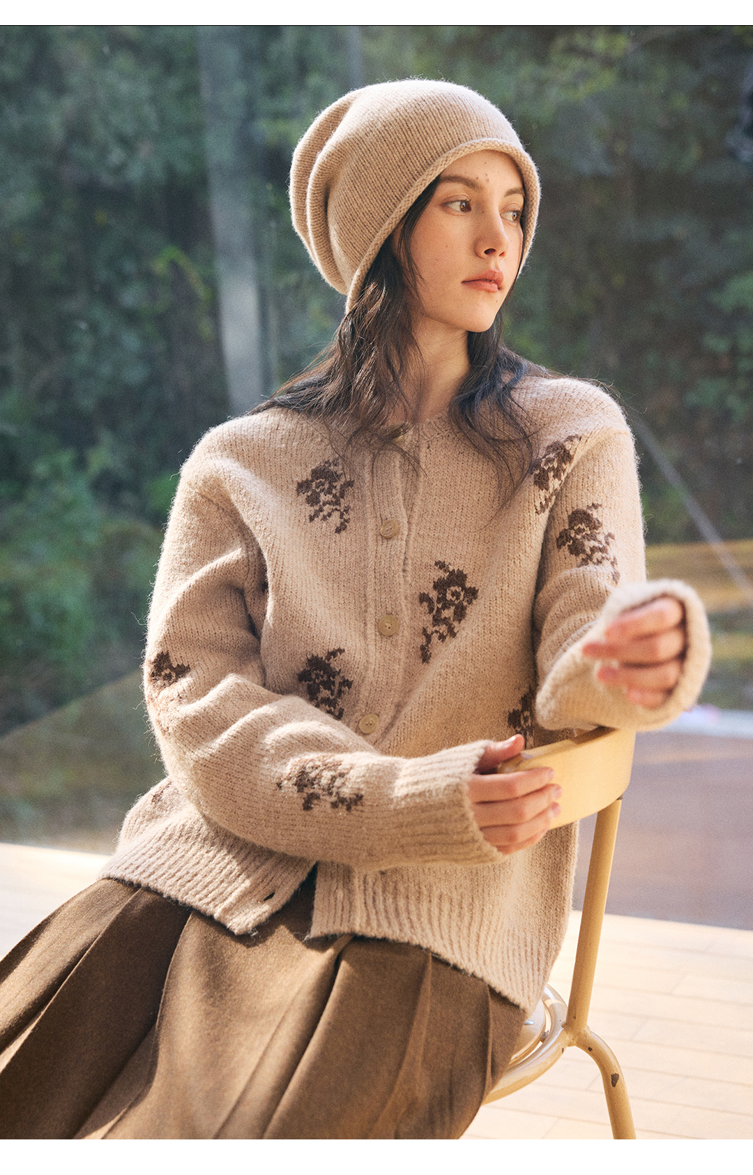HeyDress花朵提花法式针织开衫