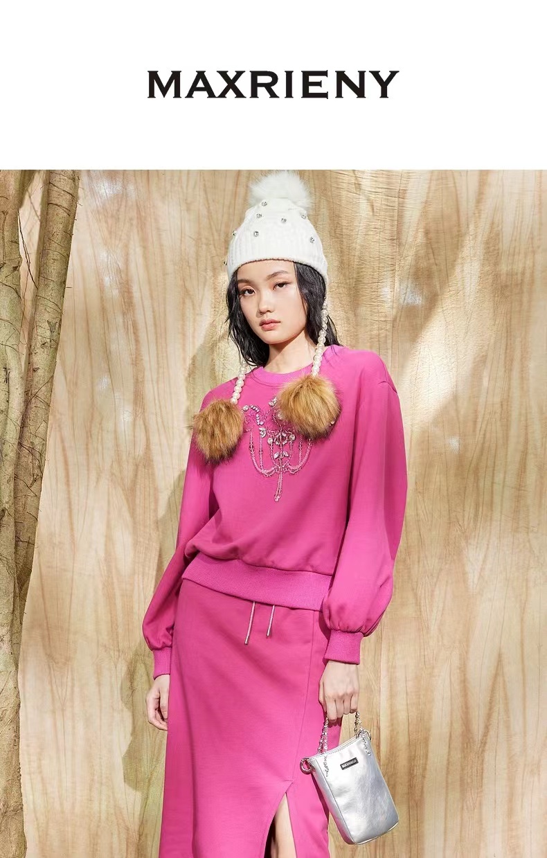MAXRIENY休闲运动感半裙抽绳开叉裙修身针织半身裙棉MC87SK763L60