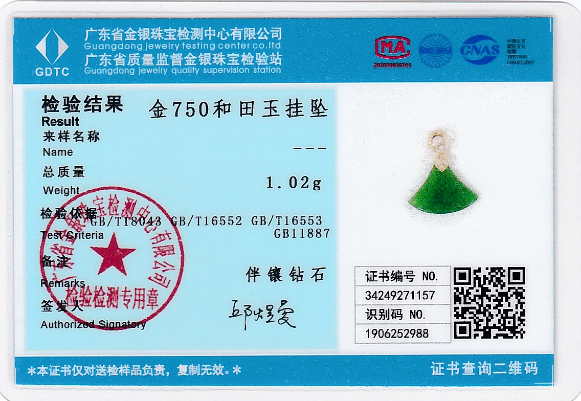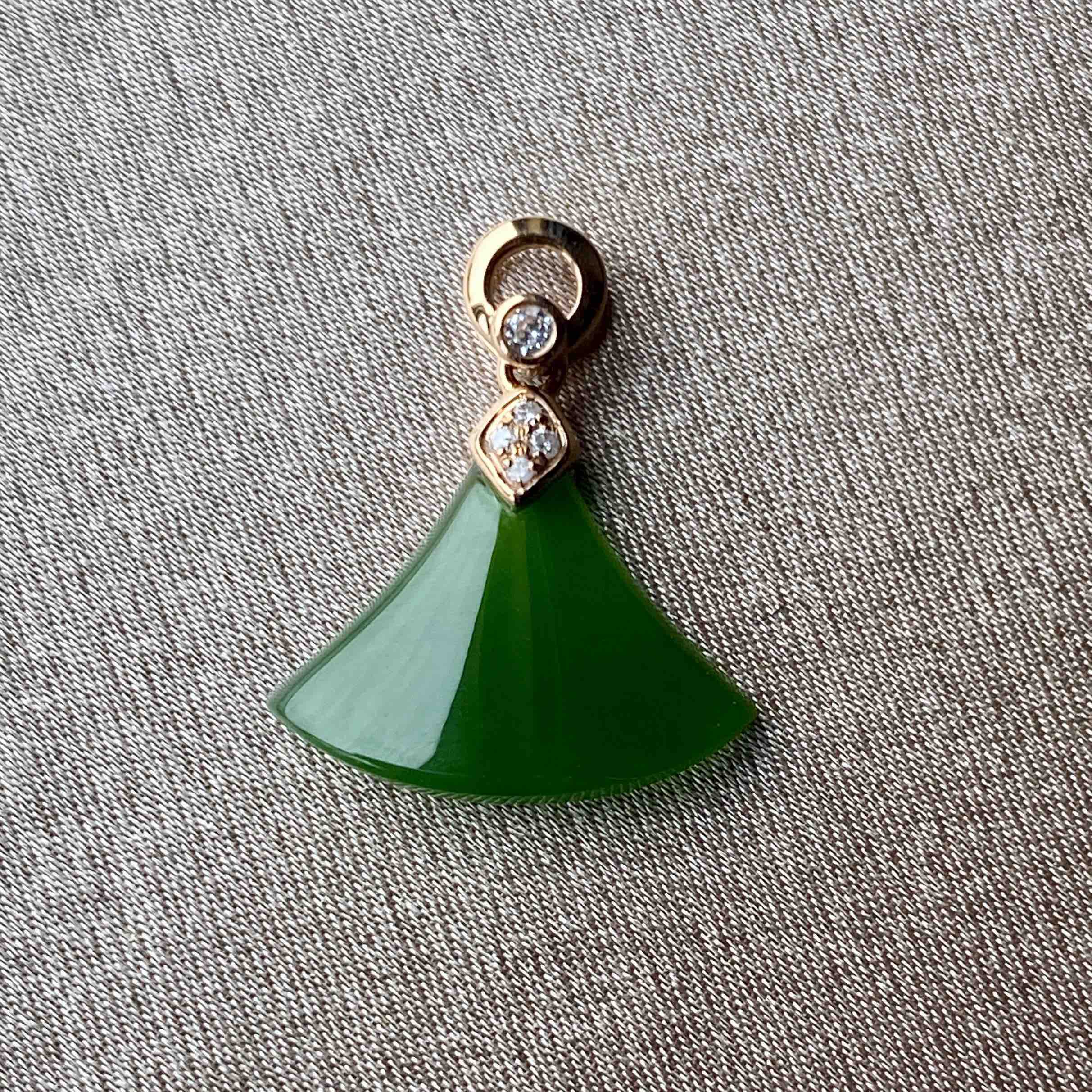 18K玫瑰金和田玉(碧玉)吊坠