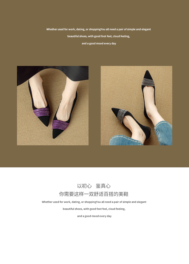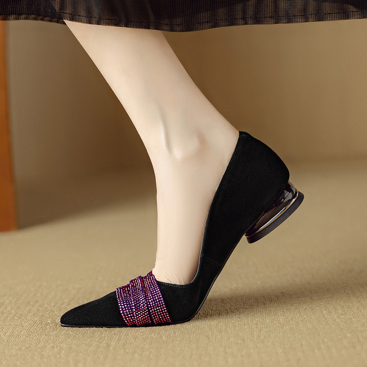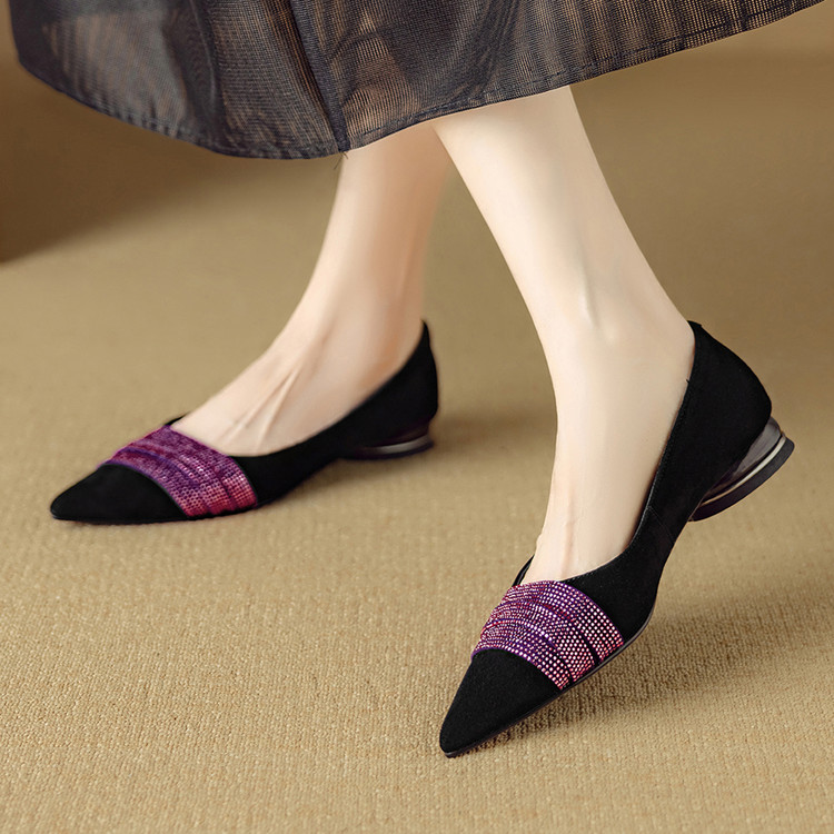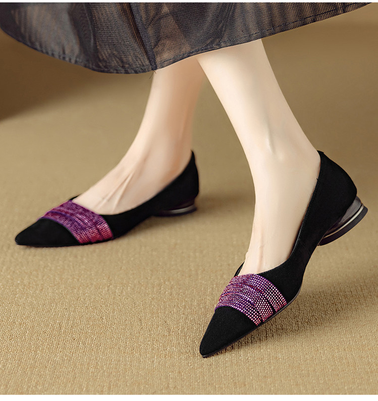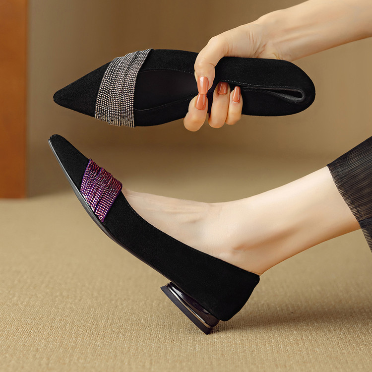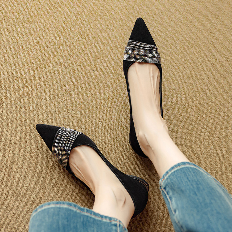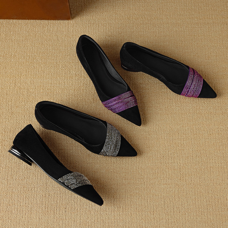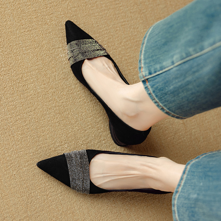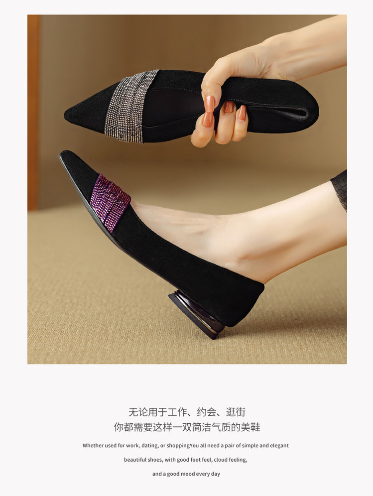 【预售5天】法式水钻气质尖头低跟单鞋女秋季新款百搭爆款软底女鞋DB&M6559