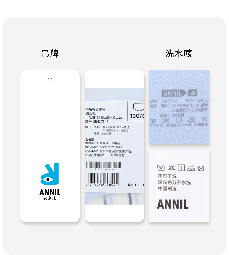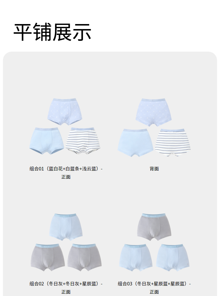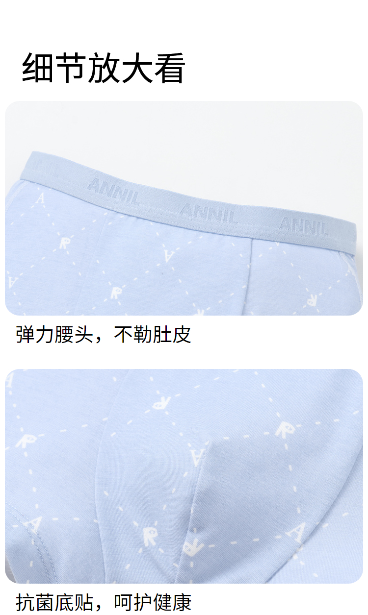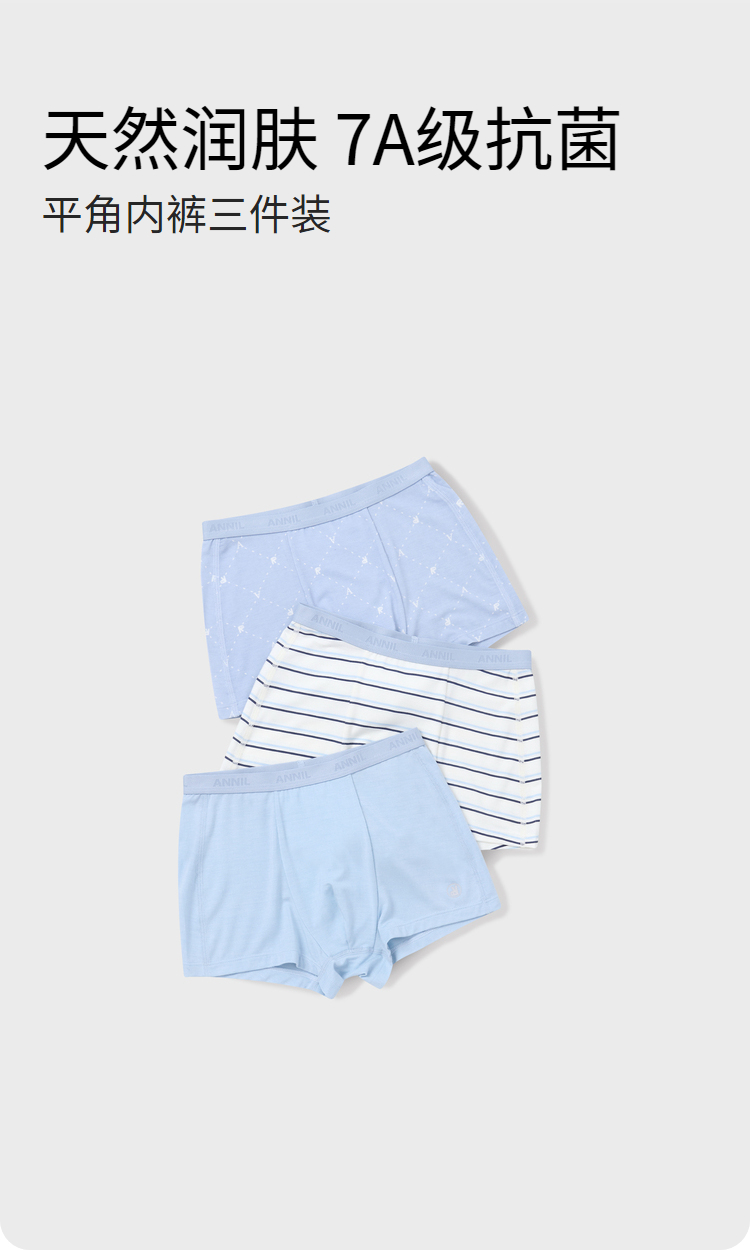 【7A抗菌家居】【天然润肤】男童平角内裤三件装新款安奈儿童装实体店同款JB437546