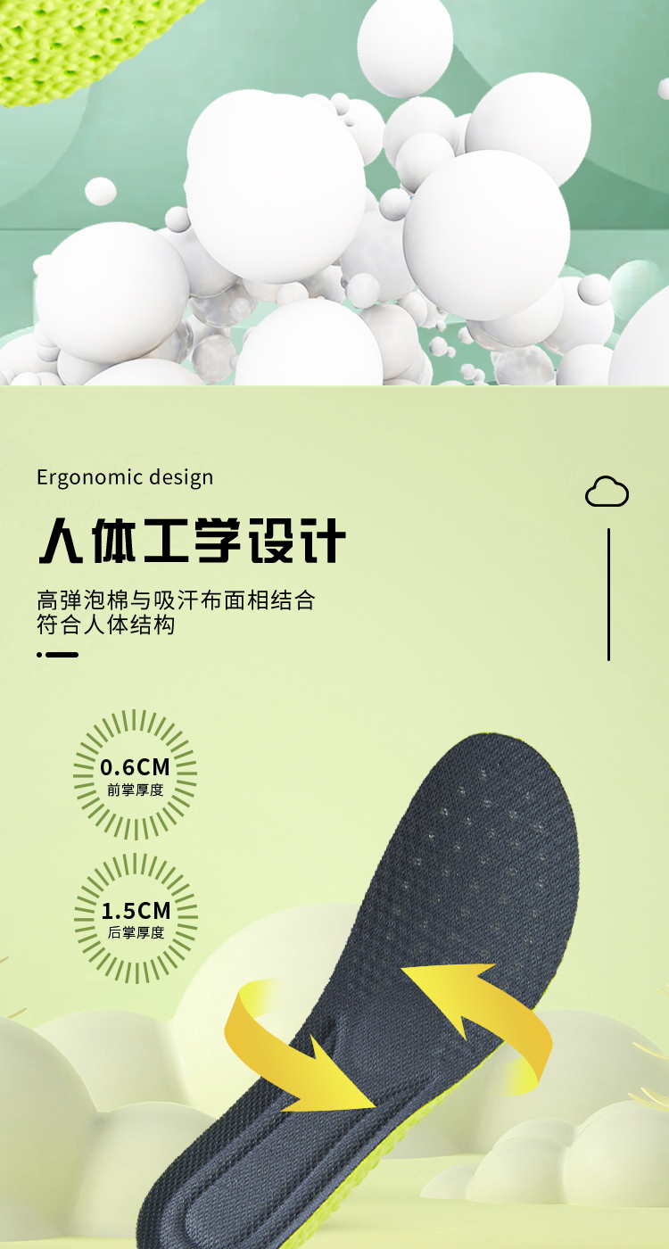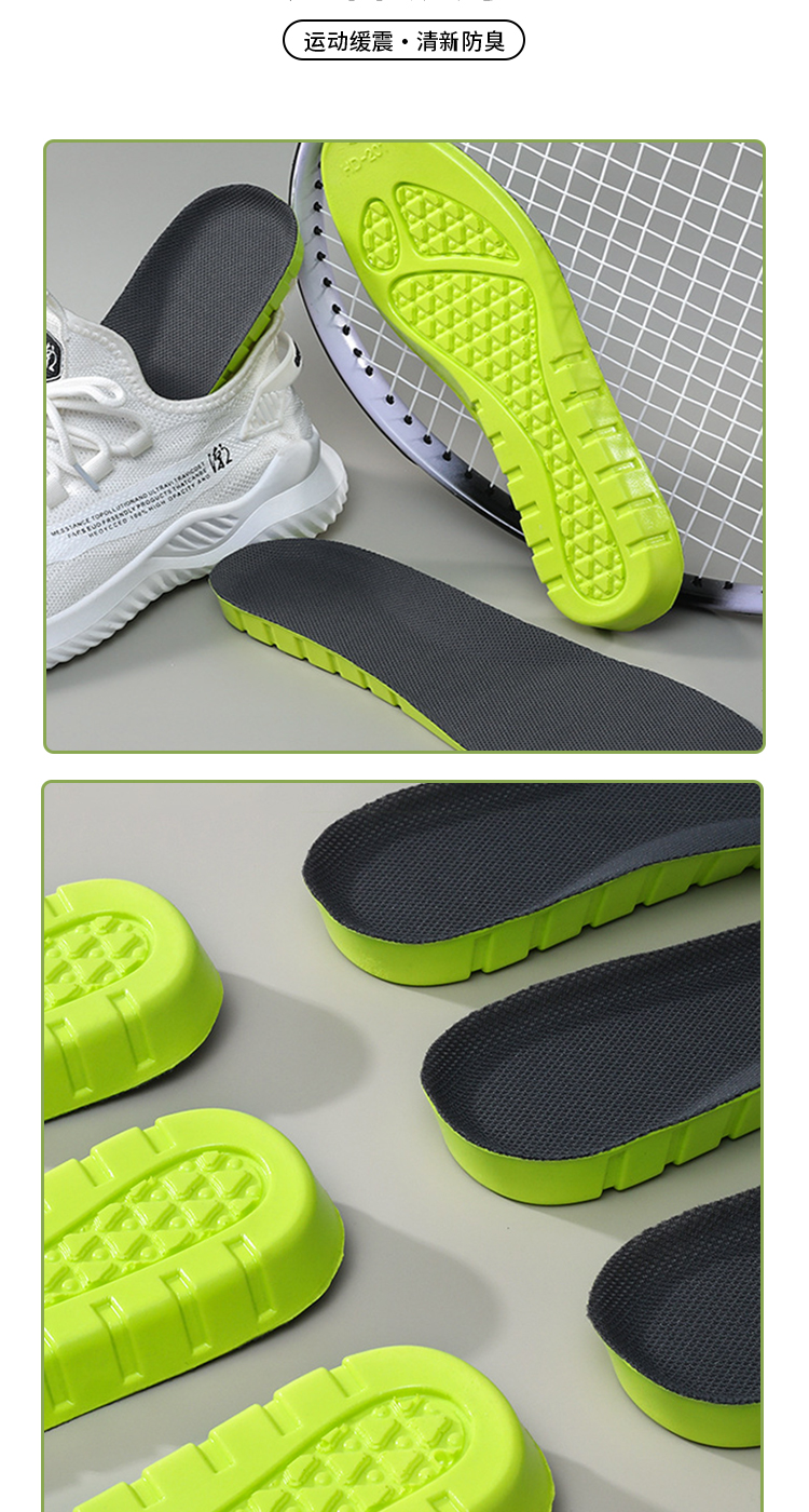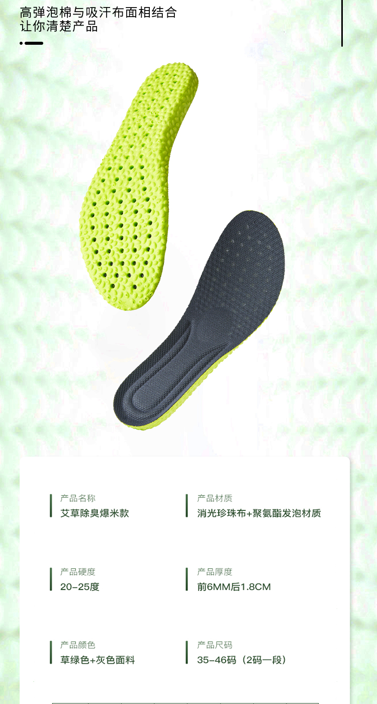 米莫印品高弹运动鞋垫/恒温鞋垫 艾草除臭睬屎感舒适减震 透气网眼清爽不闷脚 吸汗透气男女同款鞋垫