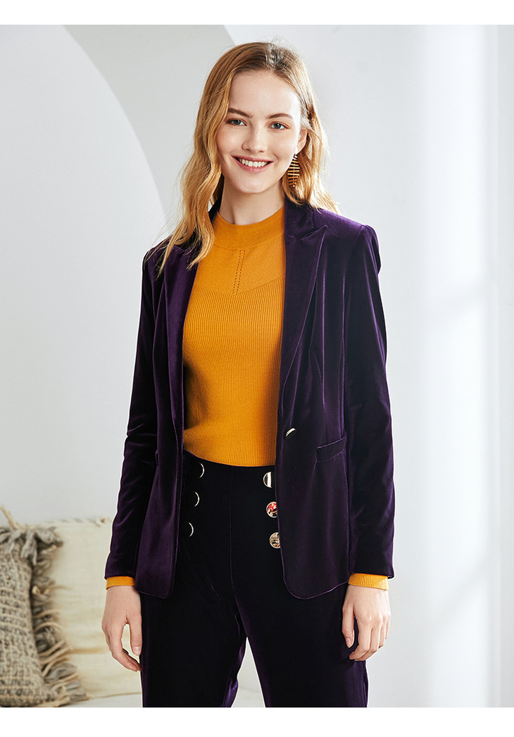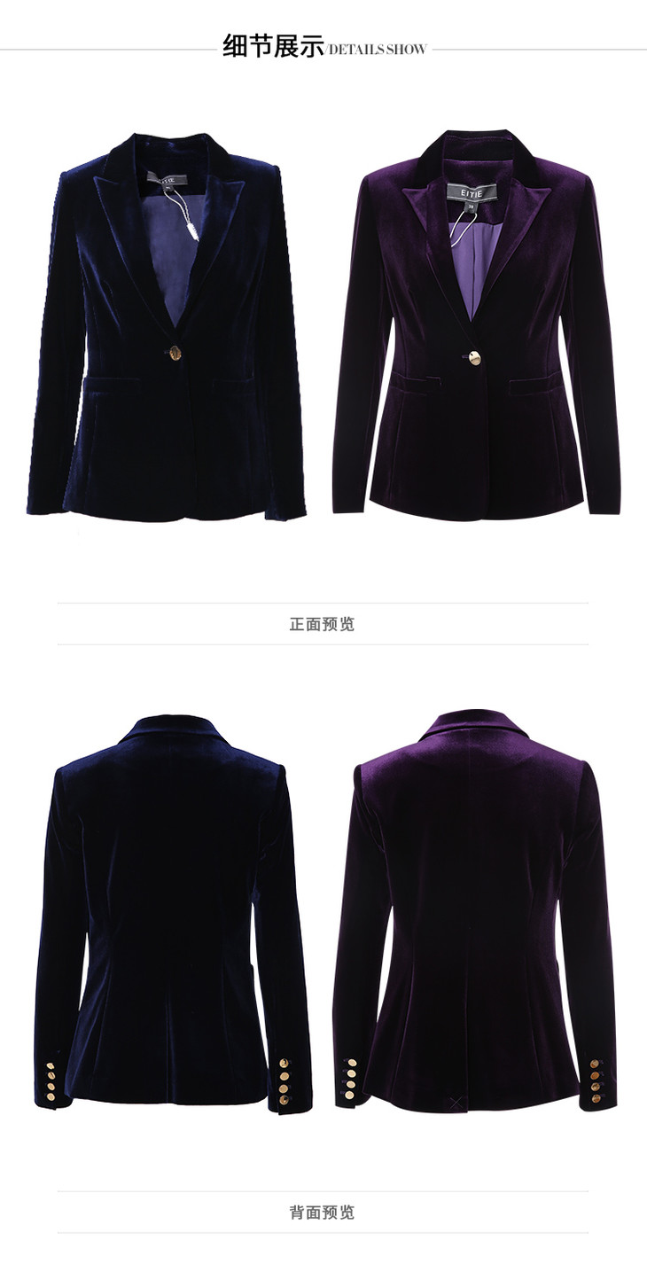 EITIE爱特爱秋季新款洋气复古职业显瘦帅气灯芯绒西装外套女6003711