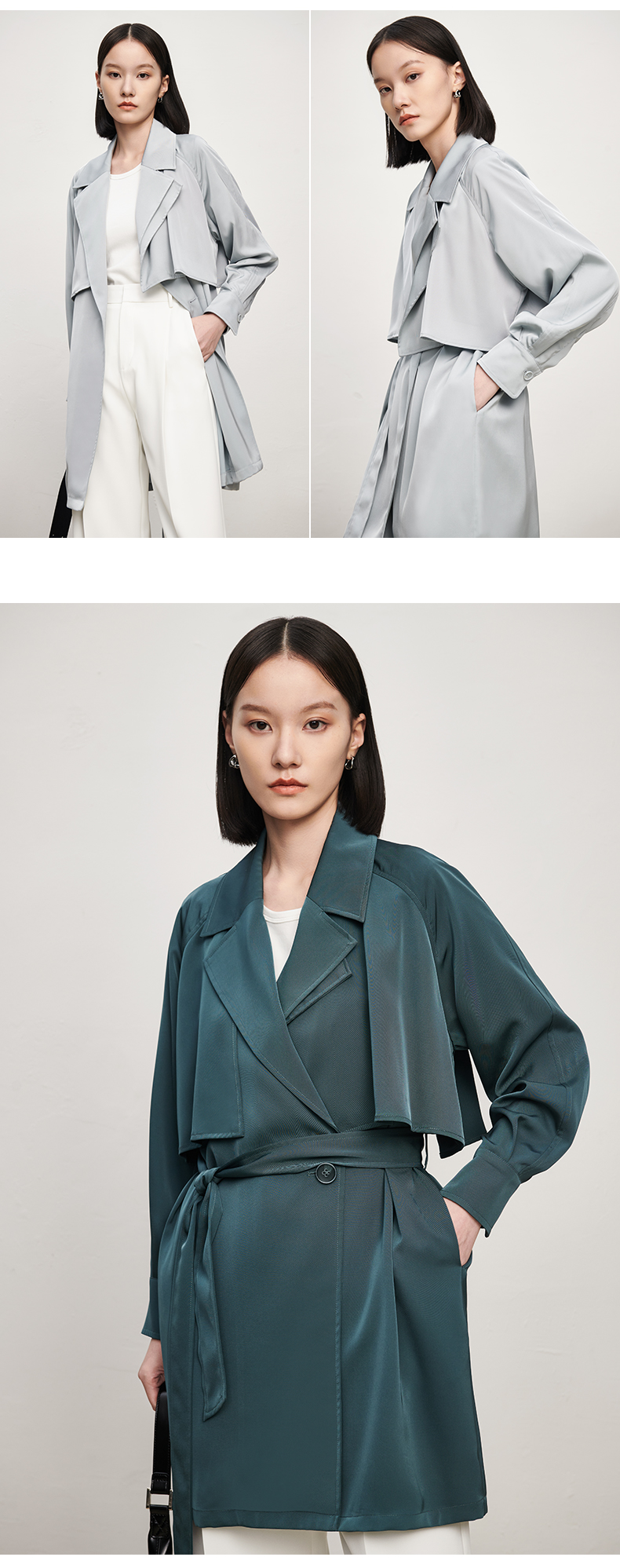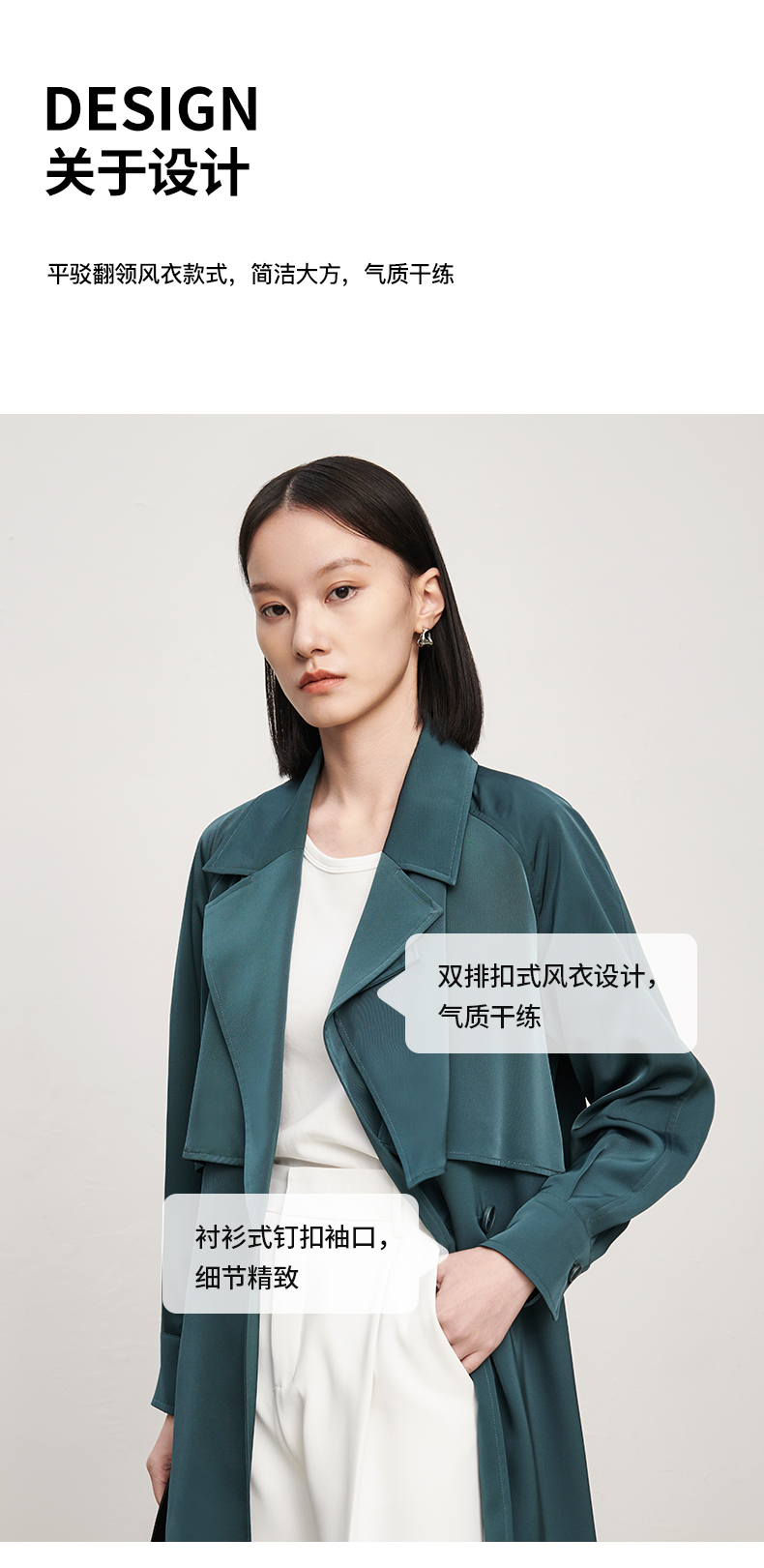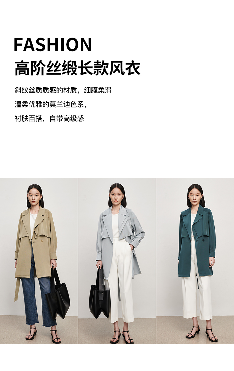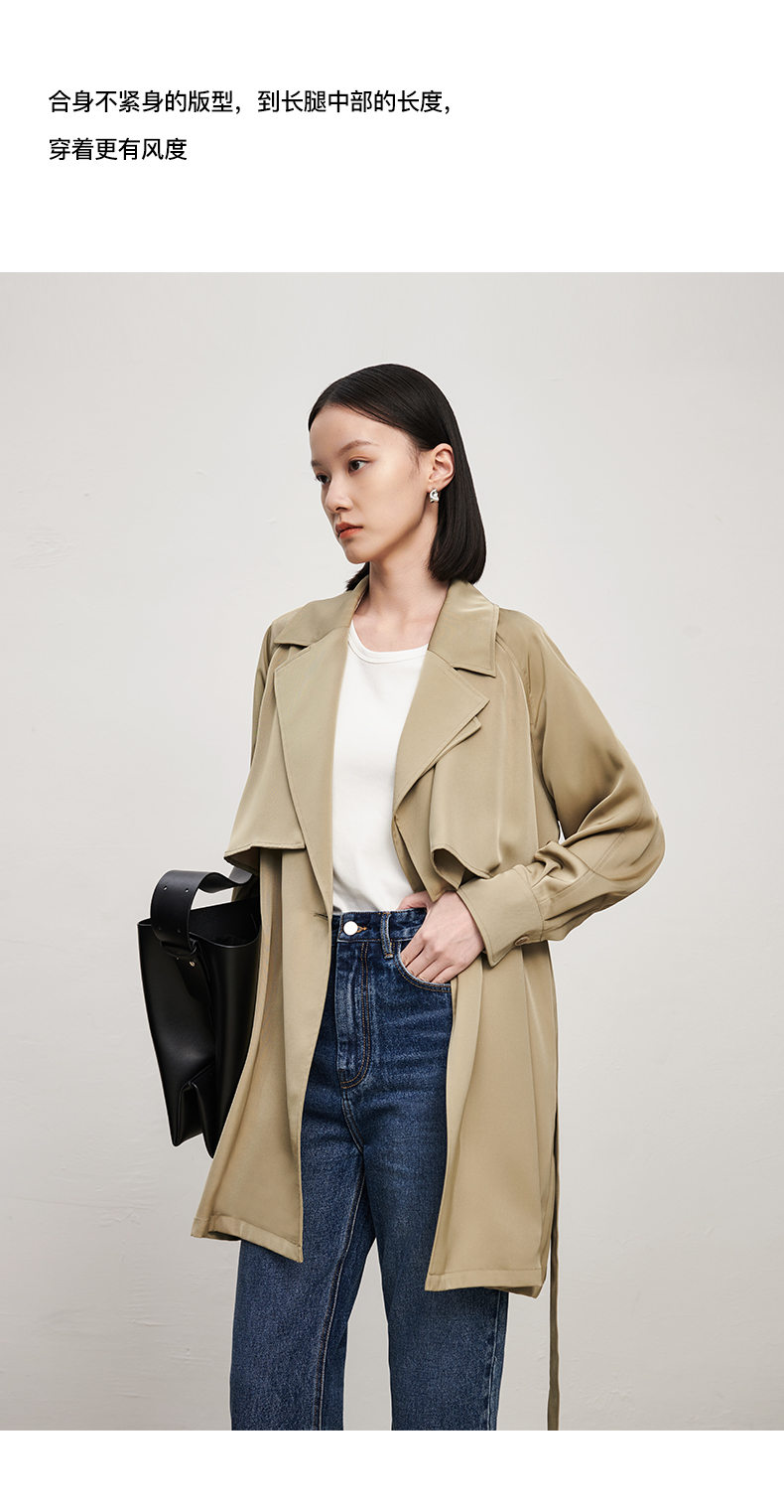 IN AND ON新款高阶丝缎气质长款风衣 斜纹高级感百搭外套21449