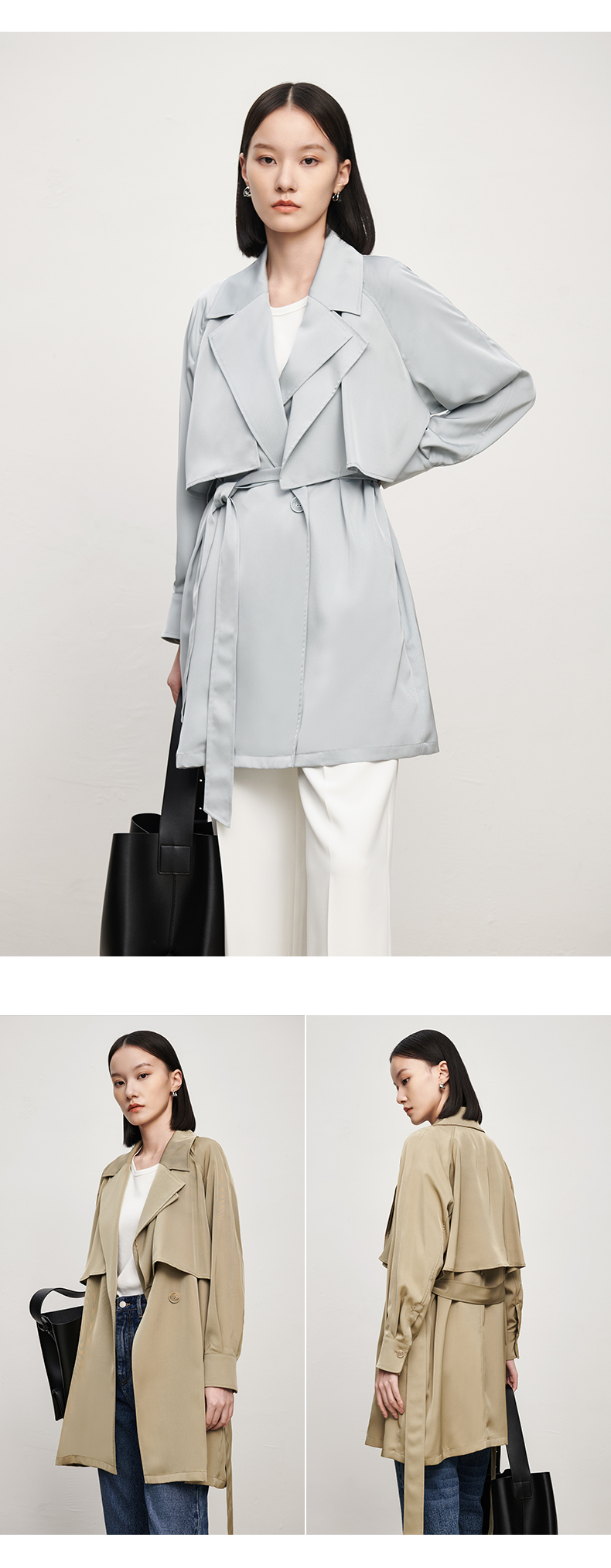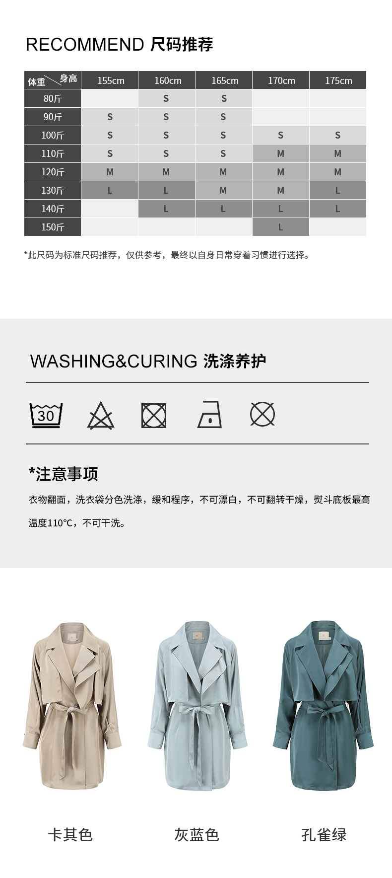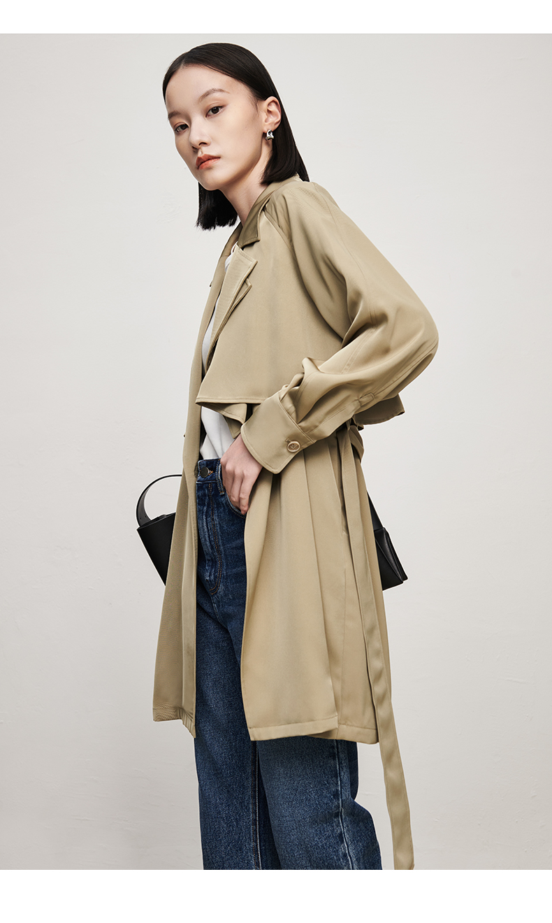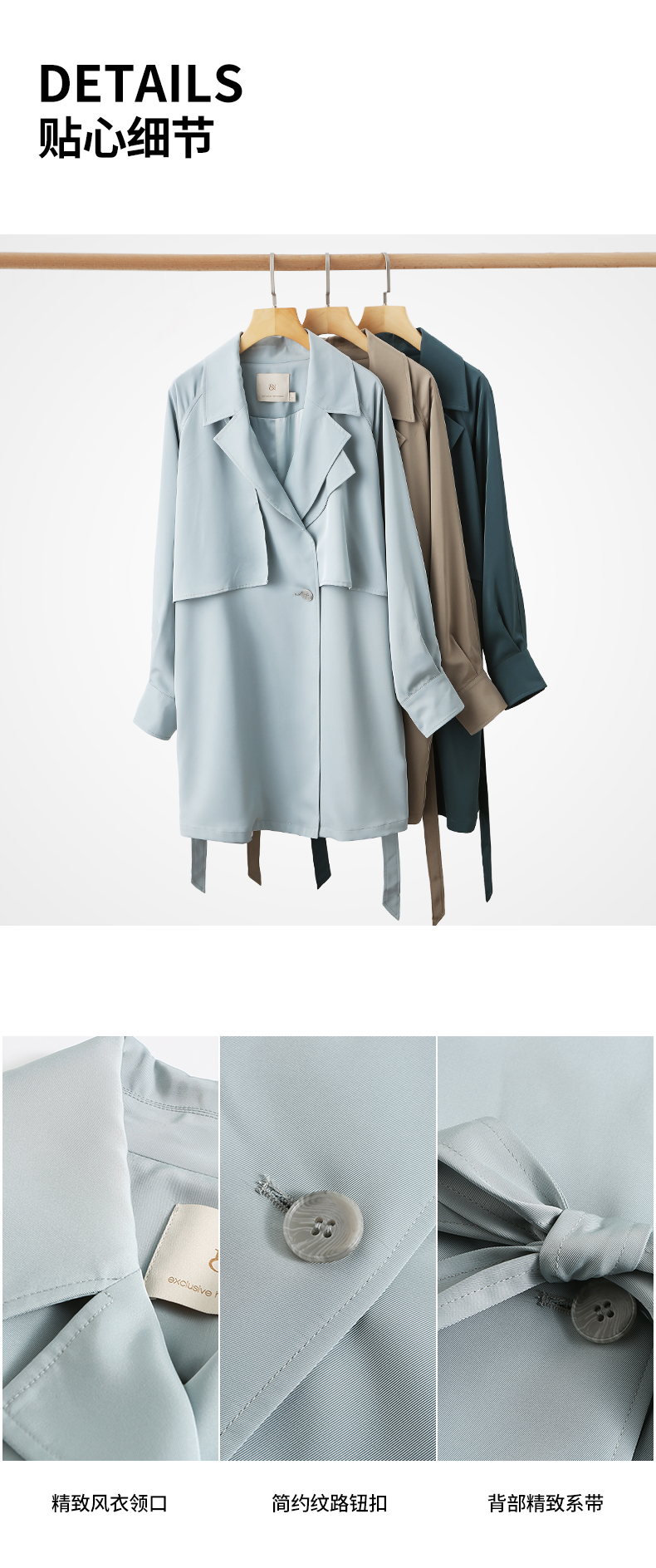IN AND ON新款高阶丝缎气质长款风衣 斜纹高级感百搭外套21449